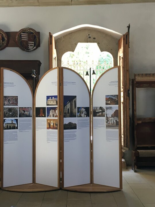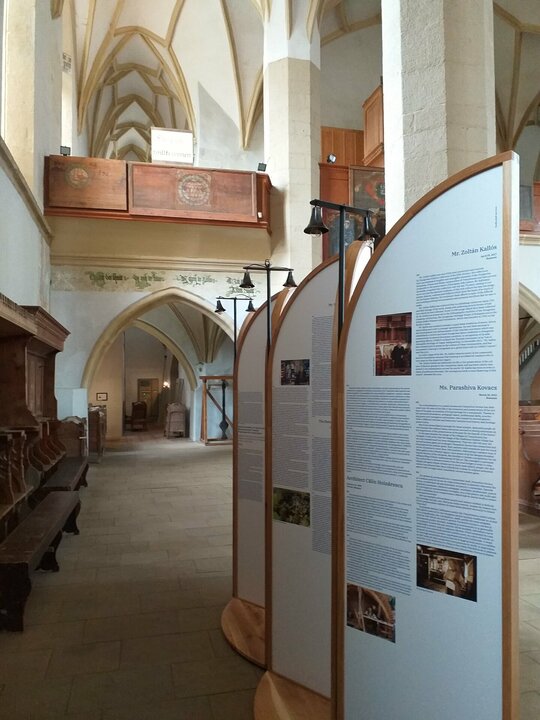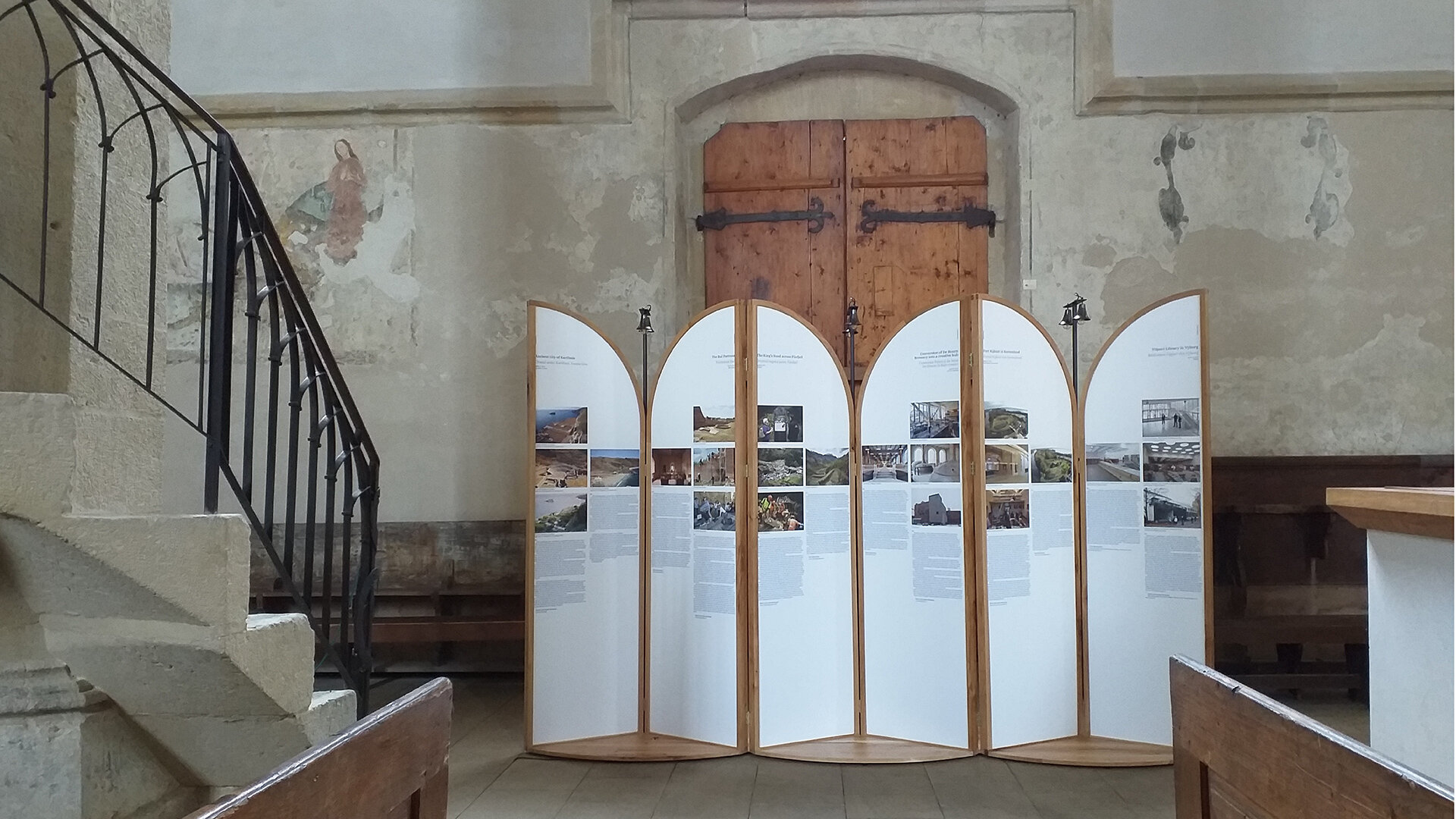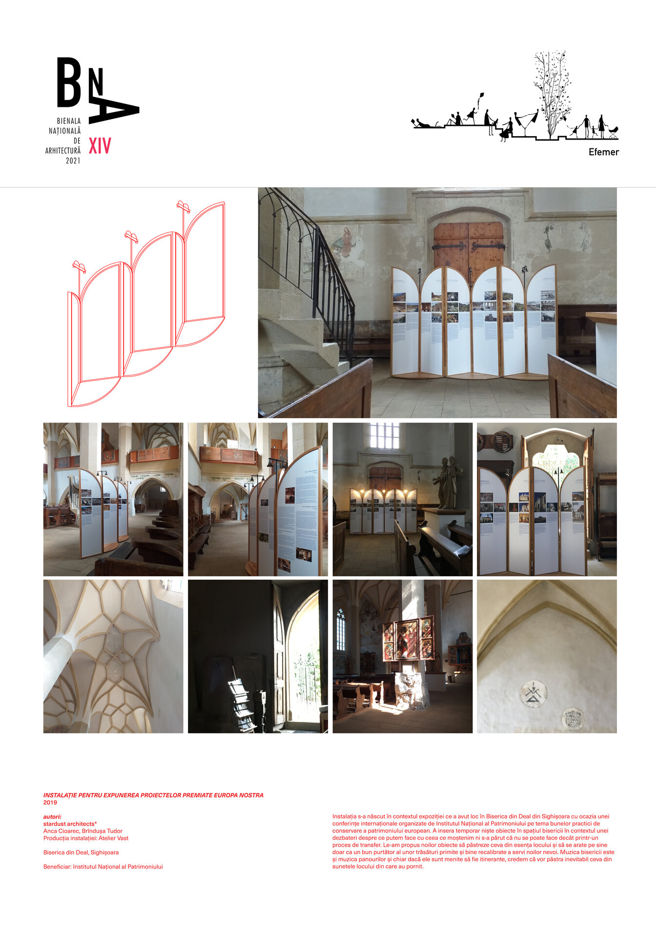 Instalația s-a născut în contextul expoziției ce a avut loc în Biserica din Deal din Sighișoara cu ocazia unei conferințe internaționale organizate de Institutul Național al Patrimoniului pe tema bunelor practici de conservare a patrimoniului european. A insera temporar niște obiecte în spațiul bisericii în contextul unei dezbateri despre ce putem face cu ceea ce moștenim ni s-a părut că nu se poate face decât printr-un proces de transfer. Le-am propus noilor obiecte să păstreze ceva din esența locului și să se arate pe sine doar ca un bun purtător al unor trăsături primite și bine recalibrate a servi noilor nevoi. Muzica bisericii este și muzica panourilor și chiar dacă ele sunt menite să fie itinerante, credem că vor păstra inevitabil ceva din sunetele locului din care au pornit.