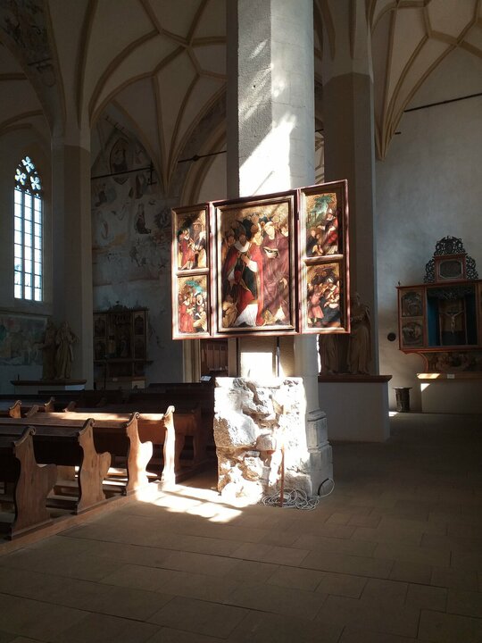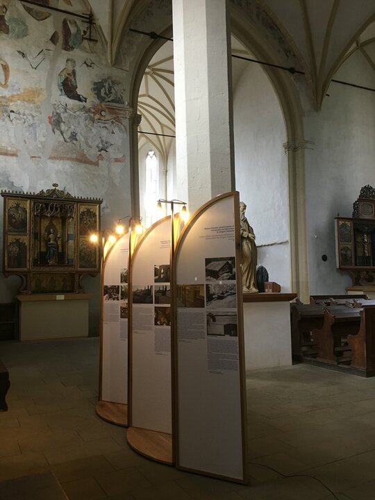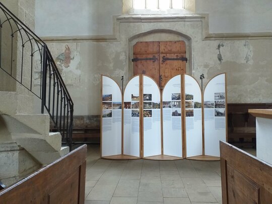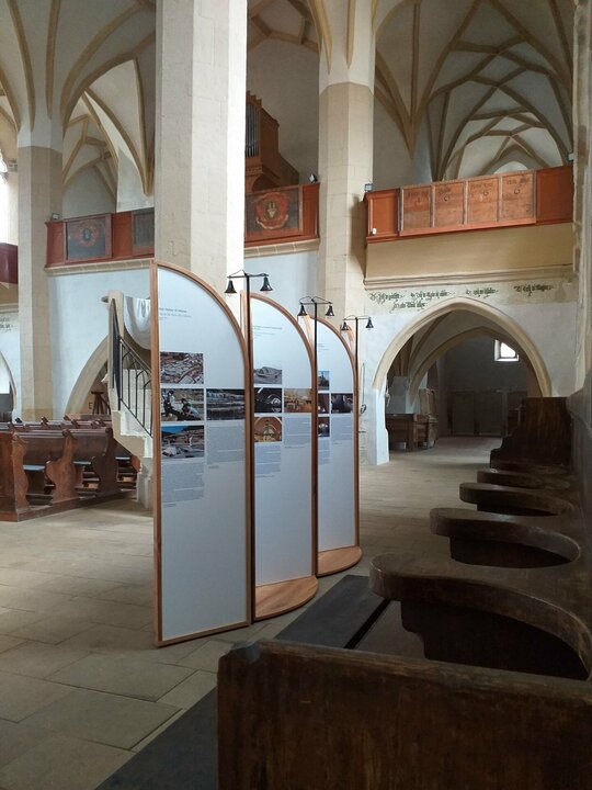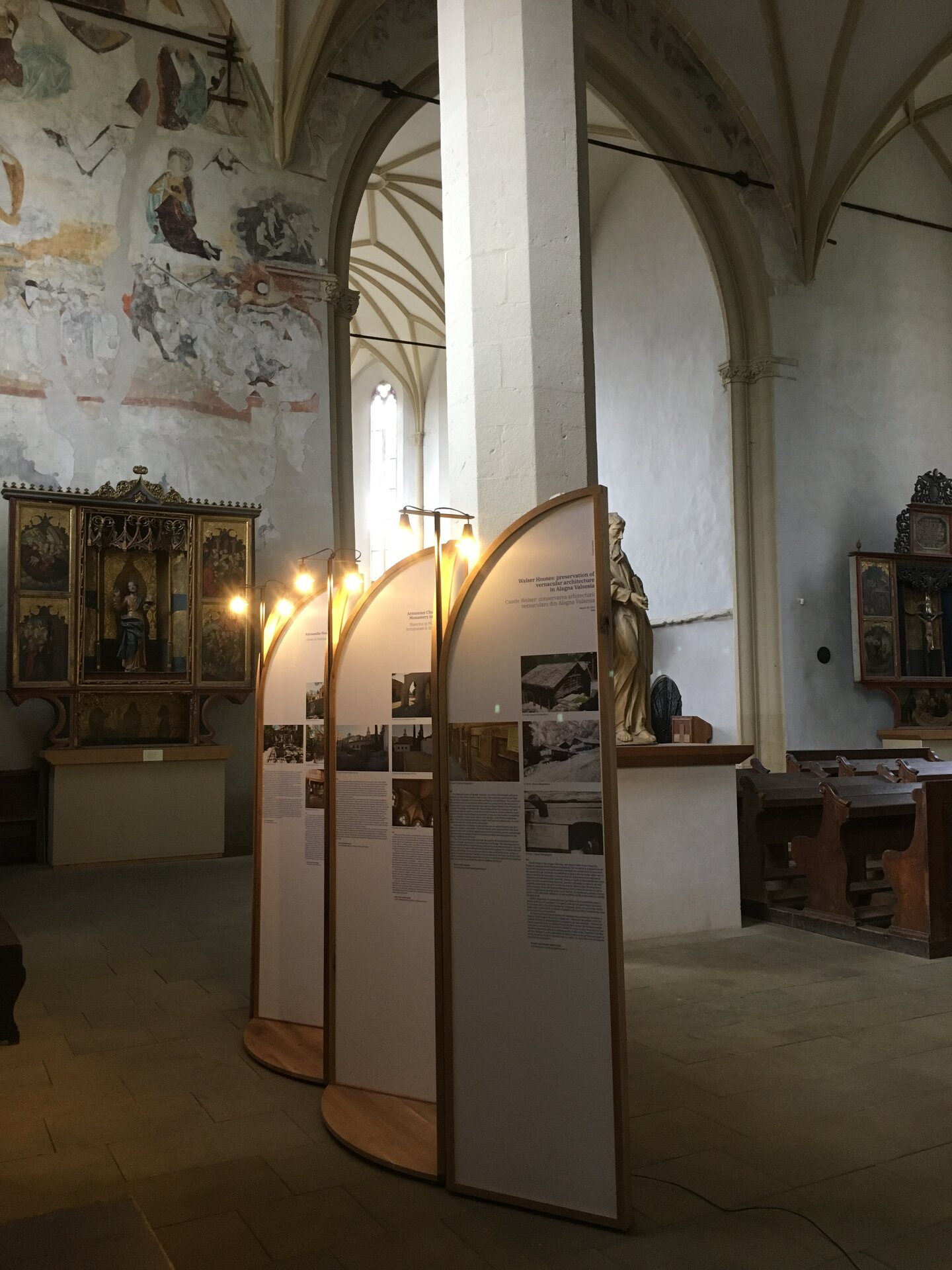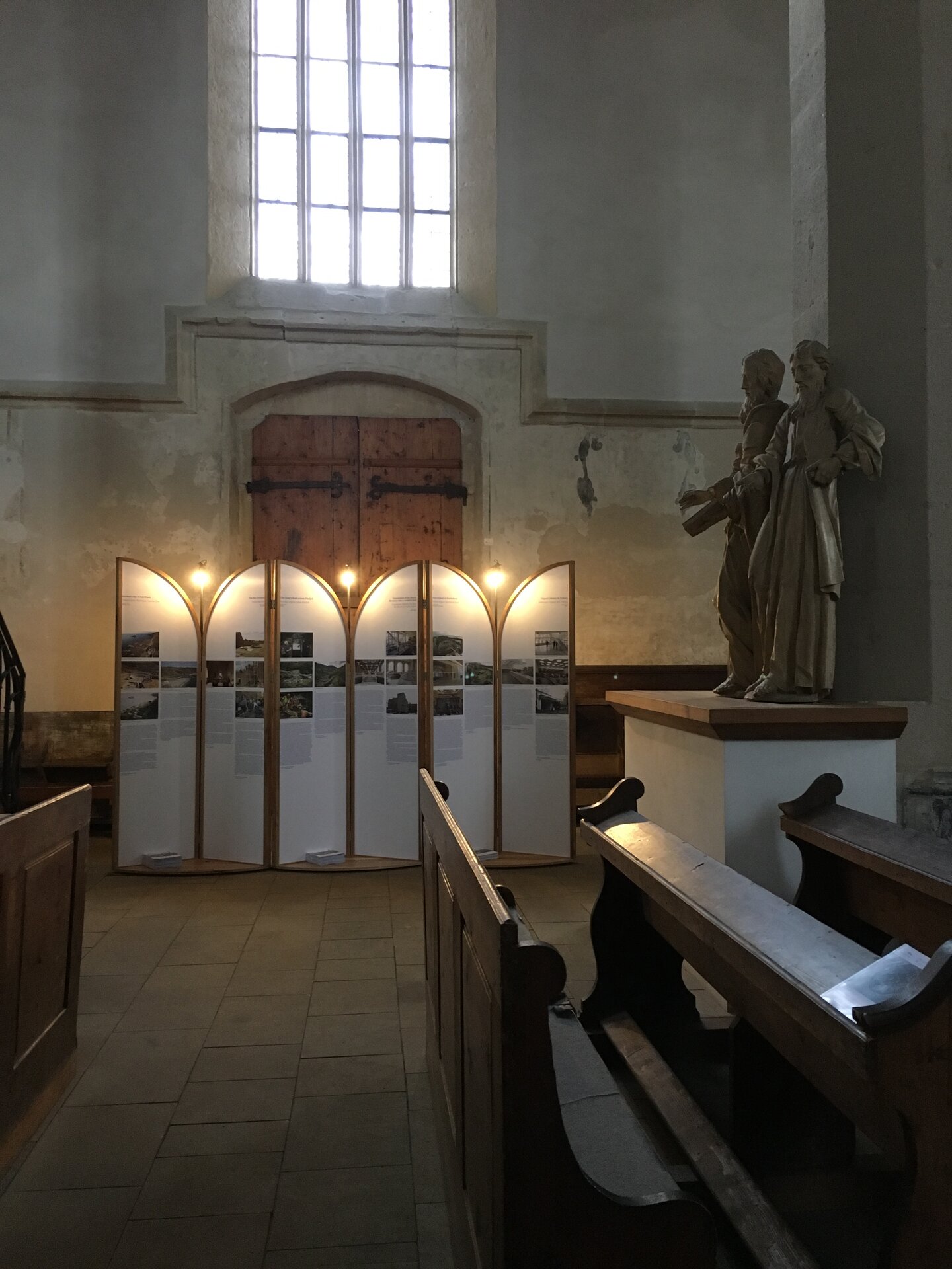 Instalația s-a născut în contextul expoziției ce a avut loc în Biserica din Deal din Sighișoara cu ocazia unei conferințe internaționale organizate de Institutul Național al Patrimoniului pe tema bunelor practici de conservare a patrimoniului european. A insera temporar niște obiecte în spațiul bisericii în contextul unei dezbateri despre ce putem face cu ceea ce moștenim ni s-a părut că nu se poate face decât printr-un proces de transfer. Le-am propus noilor obiecte să păstreze ceva din esența locului și să se arate pe sine doar ca un bun purtător al unor trăsături primite și bine recalibrate a servi noilor nevoi. Muzica bisericii este și muzica panourilor și chiar dacă ele sunt menite să fie itinerante, credem că vor păstra inevitabil ceva din sunetele locului din care au pornit.
