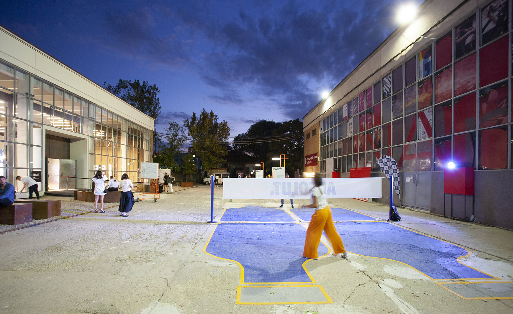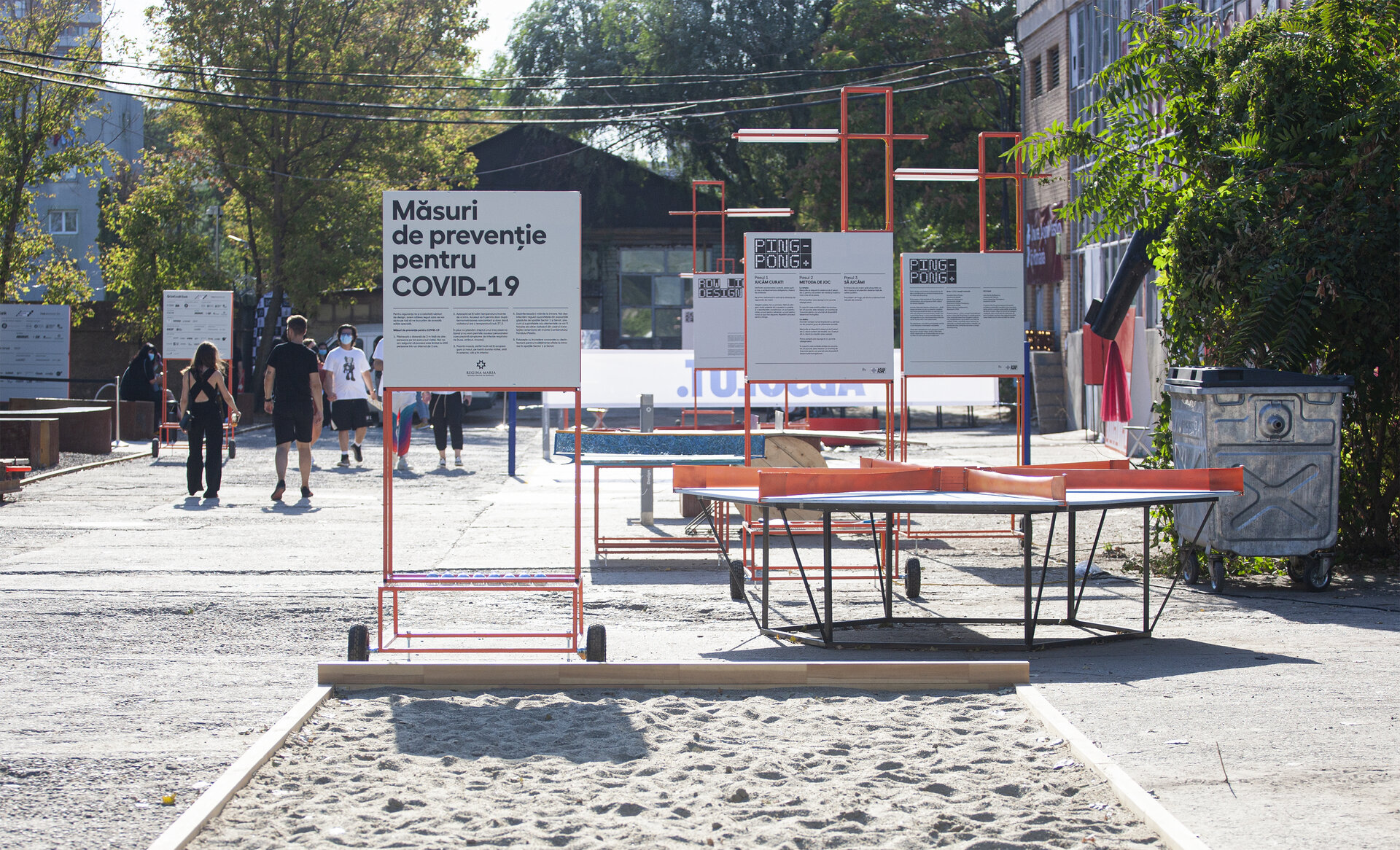 Crose, palete, bile, nisip și “macarale”. Banner de badminton și “U” cu cinci “cratere”. Toate stau împreună cu patru mese de ping-pong în același foaier urban din cadrul Combinatului Fondului Plastic.