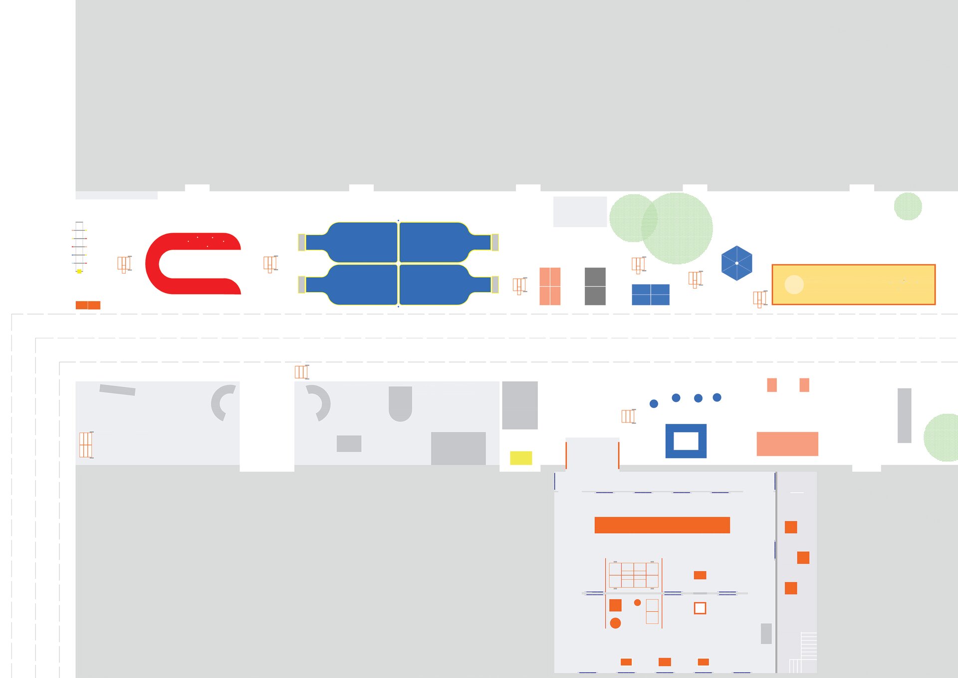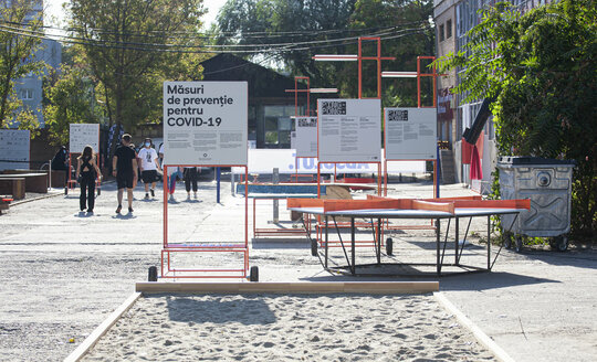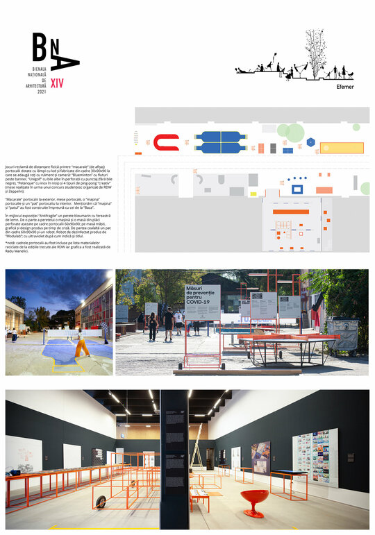 Jocuri-reclamă de distanțare fizică printre “macarale” (de afișaj) portocalii dotate cu lămpi cu led și fabricate din cadre 30x90x90 la care se adaugă roți cu rulment și cameră: “Blueminton” cu fluturi peste banner, “Unigolf” cu bile albe în perforații cu punctaj (fără bile negre), “Petanque” cu inox în nisip și 4 tipuri de ping-pong “creativ” (mese realizate în urma unui concurs studențesc organizat de RDW și Zeppelin).