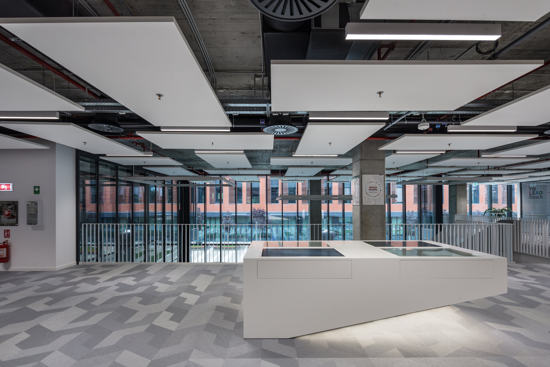 După dezvoltarea mai multor parcuri industriale grupul german Bosch a decis sa vină în oraș pentru un nou centru de cercetare și dezvoltare în tehnologie. Această decizie a avut un efect benefic pentru zona în care o fostă fabrică socialistă a fost transformată prin păstrare parțială și înlocuire. Fosta incintă industrială a primit astfel rolul unui pol de vecinătate centrat pe un nou spațiu public. Clădirea, care va fi ulterior însoțită de o a doua etapă, de care se va conecta cu o pasarelă, este o combinație de ingrediente combinate. Este sobră și rațională pe de o parte și în același timp surprinzătoare și îndrăzneață, pe de alta. Este severă dar are tente ludice în spațiile interioare. Pare o formă simplă, dar este de fapt o compoziție de prisme cu retrageri subtile menite să amplifice volumul fără să sufoce spațiul public pe care îl delimitează. Combină maniera identitară a arhitecturii grupului Bosch cu particularități proprii, locale, venite din interacțiunea din proiect cu elementele contextului. Interioarele au fost dezvoltate după filosofia proprie grupului, cea de Inspiring Working Conditions, prin care se combină spații tipice muncii de birou cu zone stimulative pentru interacțiune și muncă în echipă sau comunicare individuală și de grup. S-a obținut astfel o colecție de spații care sunt în același timp atractive și recompensante pentru utilizatori. Terasele exterioare ale nivelurilor superioare oferă și ele spații pentru detentă în ambianțe de grădini suspendate. Accesul principal este marcat discret dar suficient de clar printr-o retragere a fațadei. La interior, holul de acces care face legătura dintre mai multe categorii de spații și formulează chintesențial ambianța întregului centru, este dezvoltat parțial pe două niveluri. Diferite teme și combinații de materiale pe care le-am folosit la construcțiile industriale pentru același grup, în alte amplasamente, au fost adaptate la spațiile acestui centru de cercetare pentru a întări identitatea arhitecturală a grupului, în România.