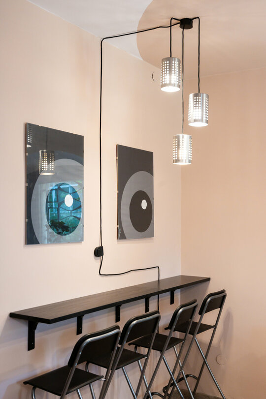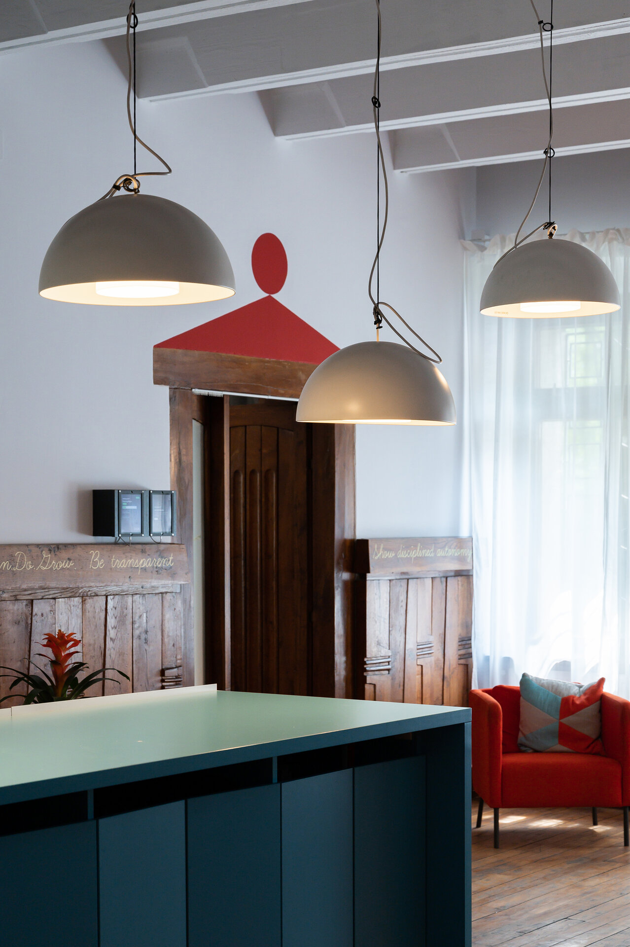 Ingeniozitatea a fost cheia proiectului. Pentru că cea mai importantă intervenție în spațiu a fost zugrăvirea pereților, am căutat să obținem maximul de efect din gesturi simple și asumate, dar „curajoase” și ludice - more is better. Mobilierul a fost păstrat integral și refolosit. Corpurile de iluminat, unice pentru fiecare cameră, sunt și ele păstrate. Achizițiile noi de mobilier și corpuri de iluminat au fost minimale.