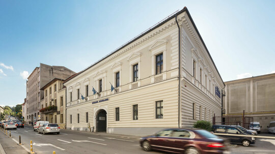 Clădirea situată aproape de limita vestică a fostei incinte medievale care definește centrul centrului Clujului are o istorie seculară relansată prin recenta transformare în spital specializat pe intervenții cardiace cu tehnologii speciale.E o casă care a văzut multe.Parcela amputată de inserarea interbelică a Casei de cultură a studenților Dumitru Fărcaș a dat prilejul unei fațadizări a calcanului nordic, transformând-o într-o clădire de colț.
