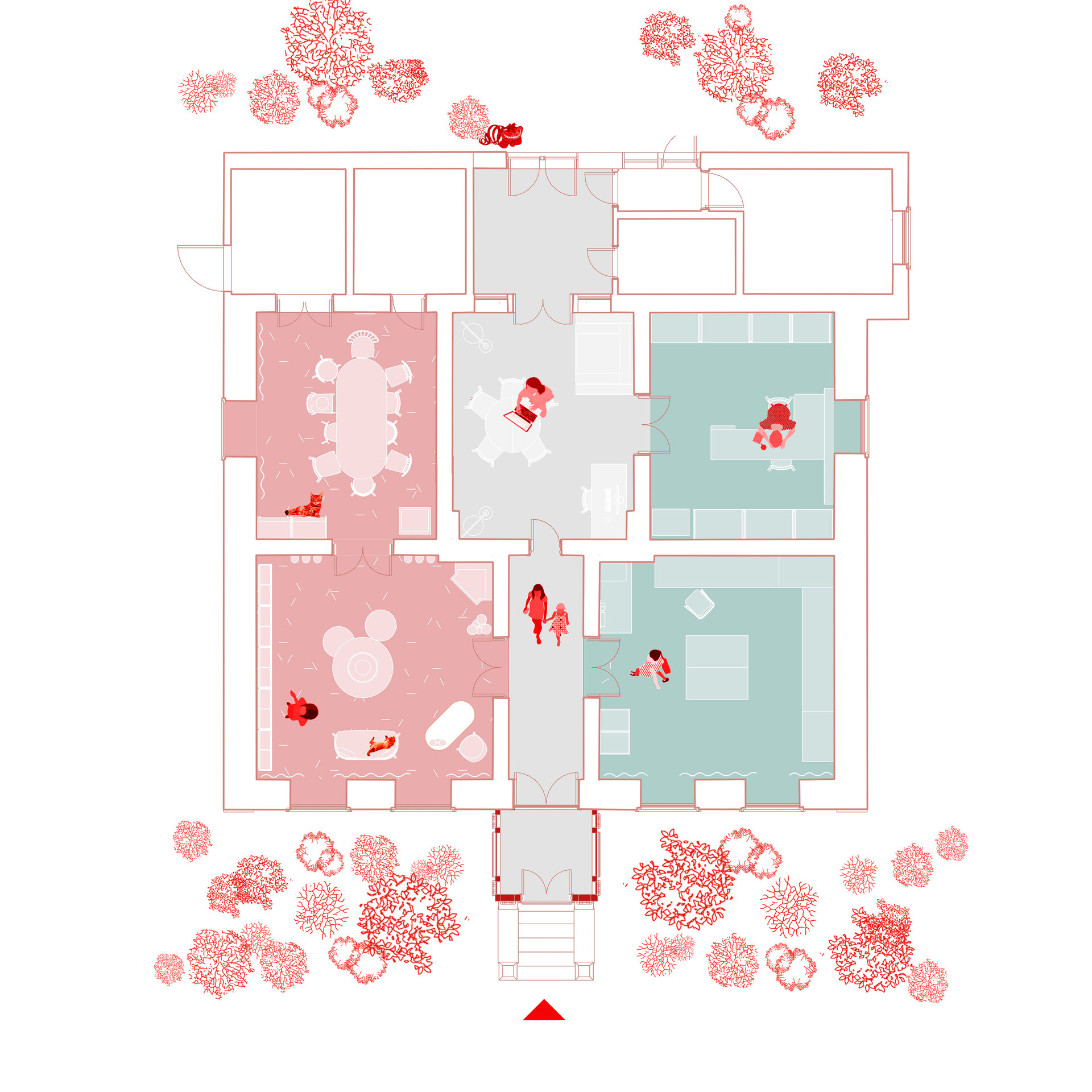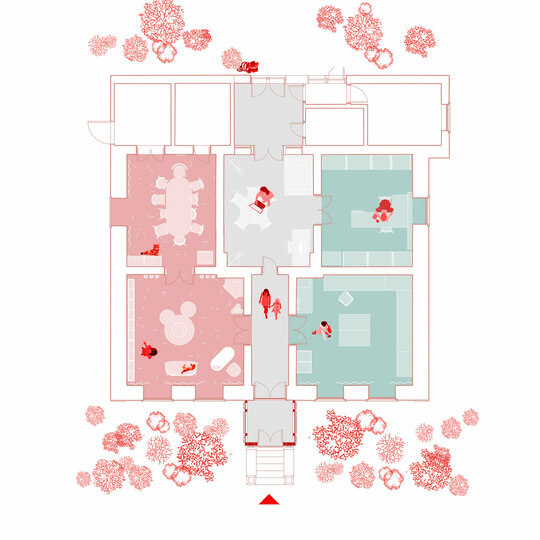 Casa-monument a oferit un spațiu de joacă cu potențial, dar a forțat ca intervențiile să rămână minimale (nu avem voie să intervenim cu modificări, compartimentări, finisaje exterioare sau tâmplărie).