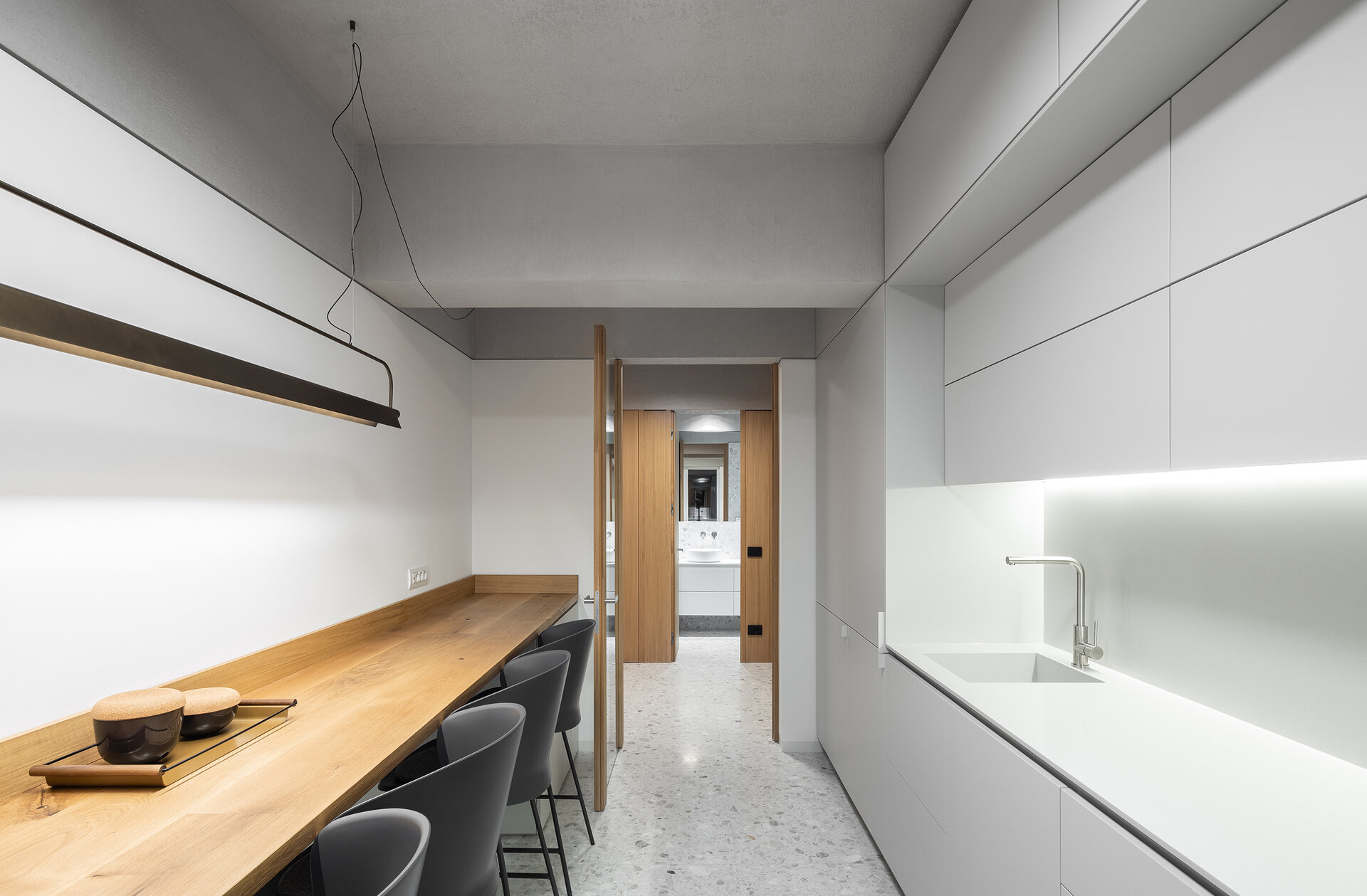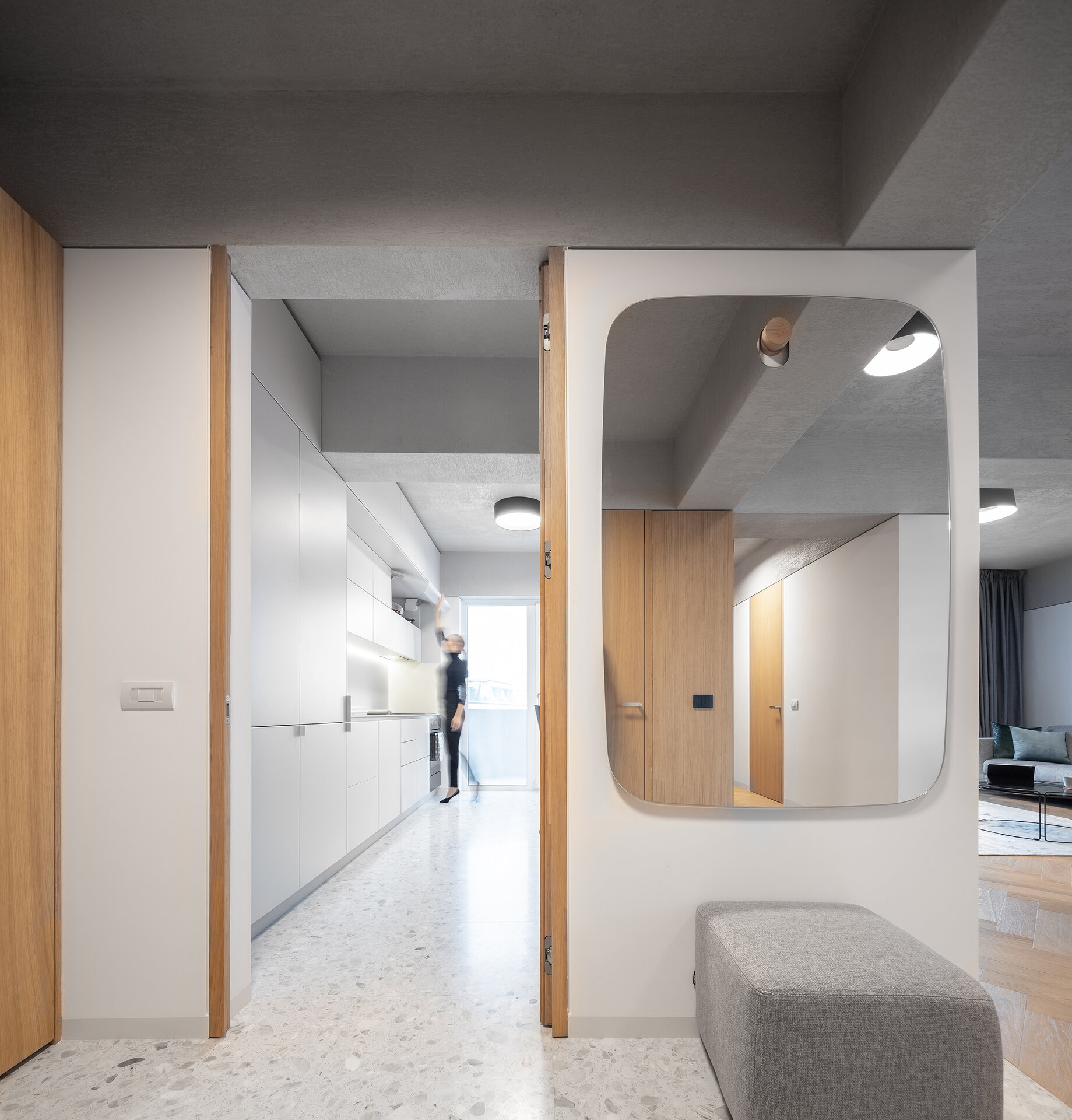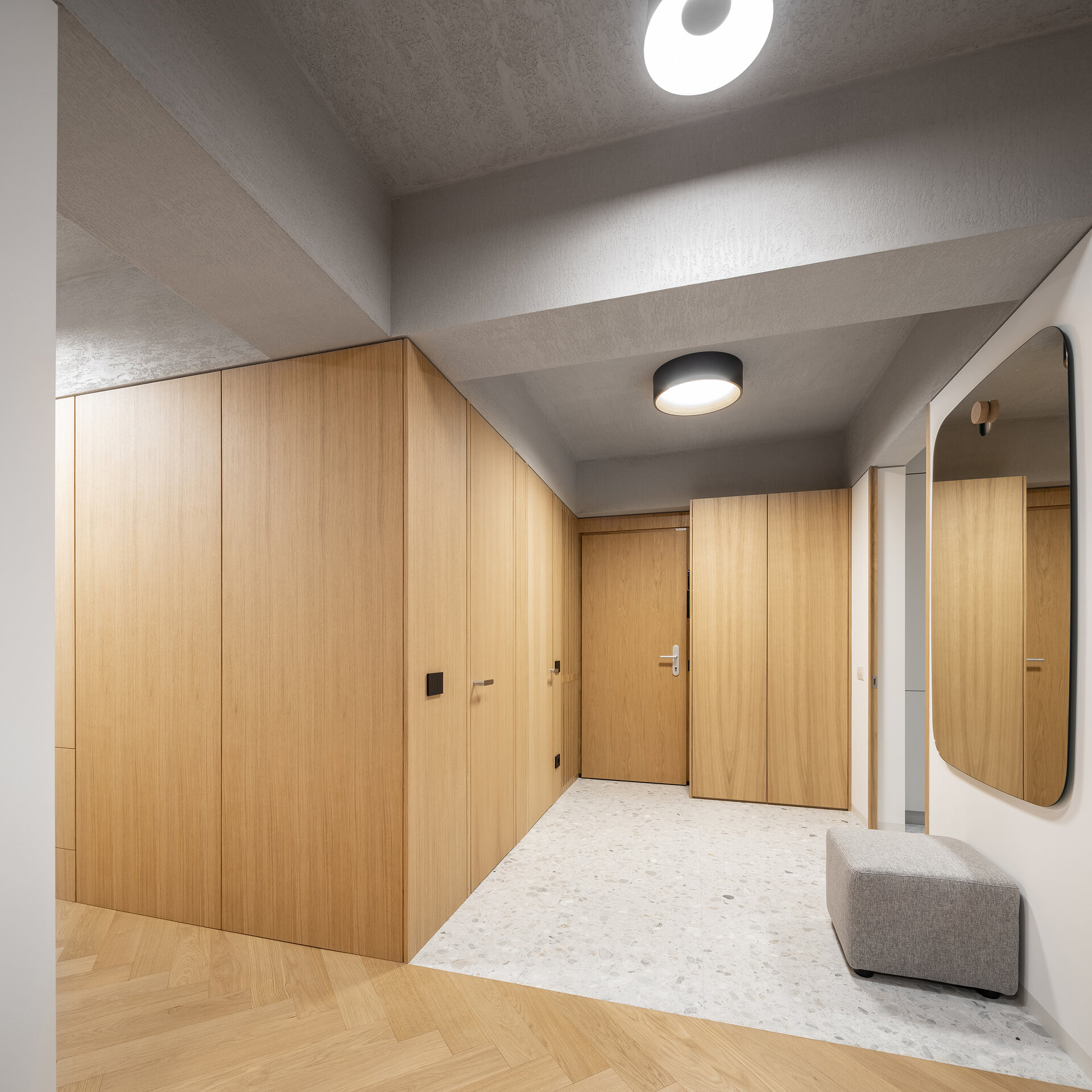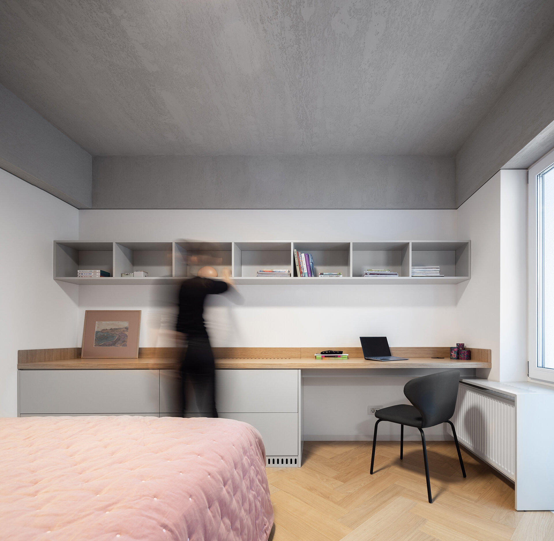 Spațiul de 150 mp a rezultat din unirea a două apartamente mai mici, și avea să răspundă unui cumul de funcțiuni necesare locuirii contemporane, a cărei versatiltate s-a anunțat odată cu lucrul de la distanță.