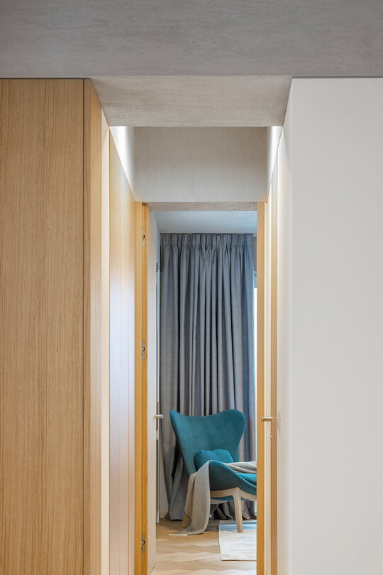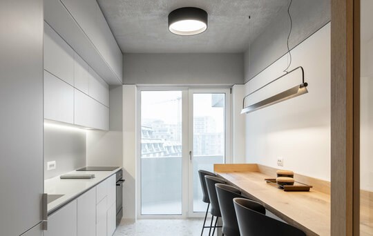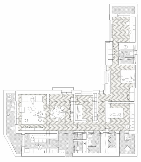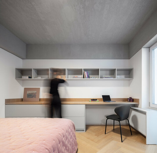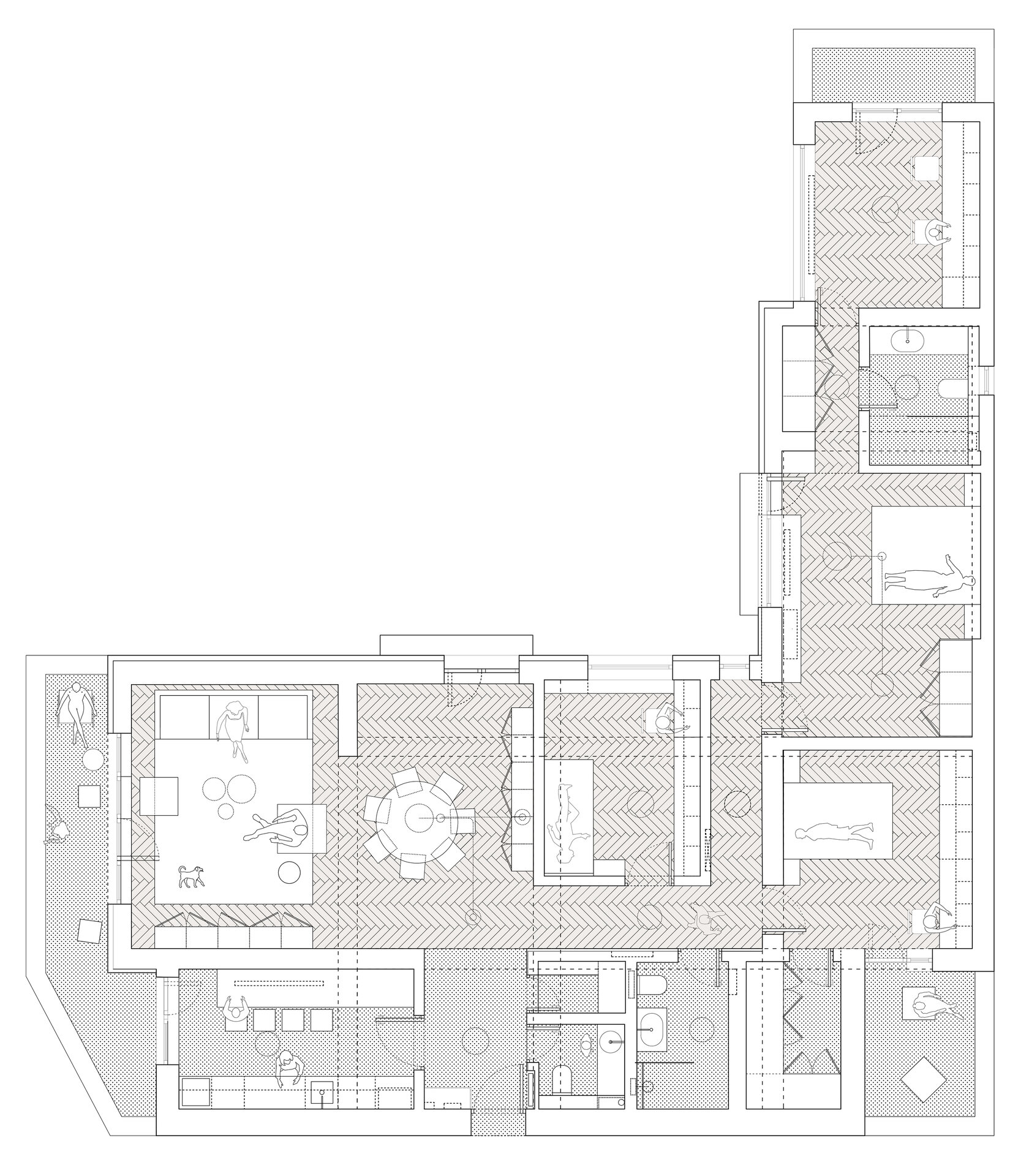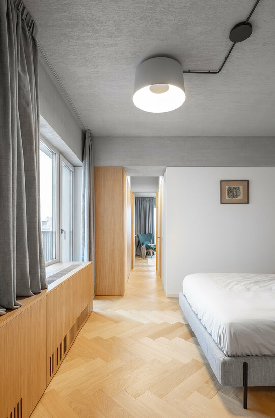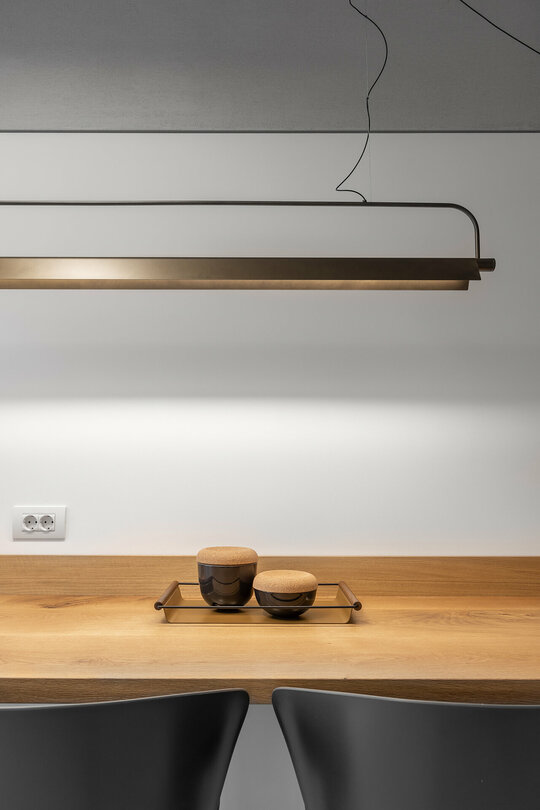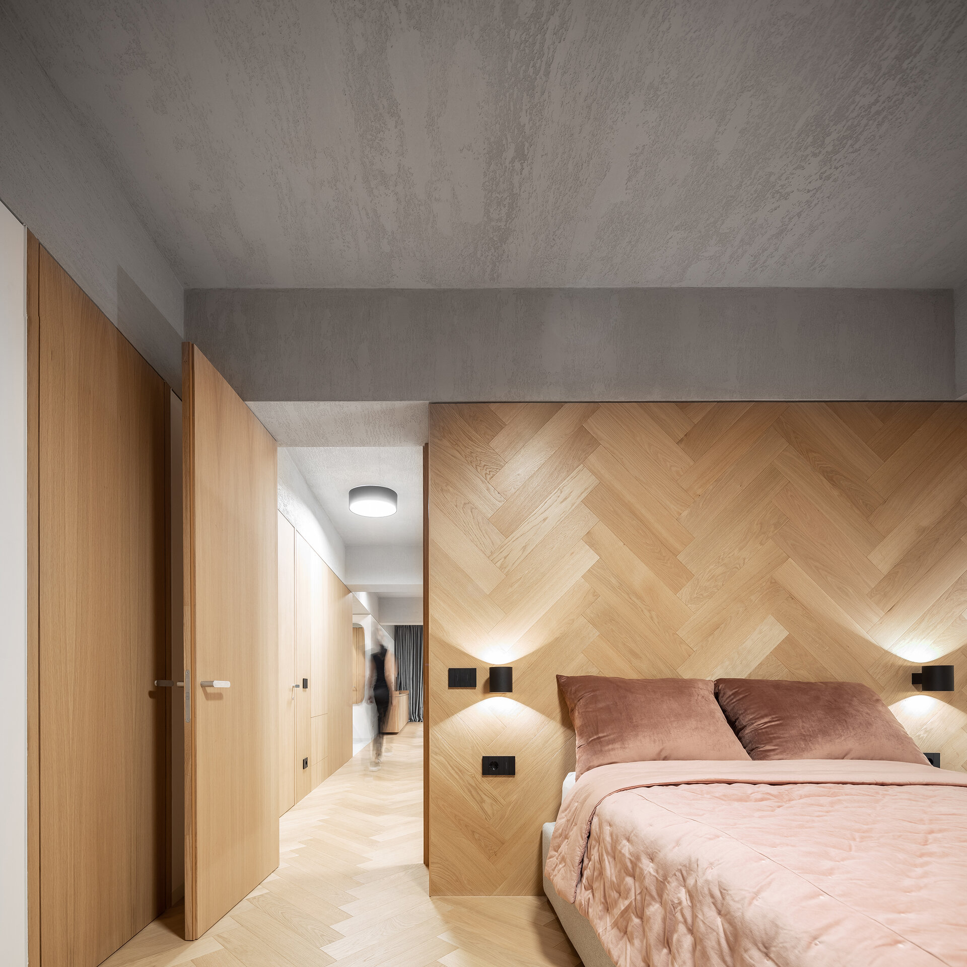 Spațiul de 150 mp a rezultat din unirea a două apartamente mai mici, și avea să răspundă unui cumul de funcțiuni necesare locuirii contemporane, a cărei versatiltate s-a anunțat odată cu lucrul de la distanță.