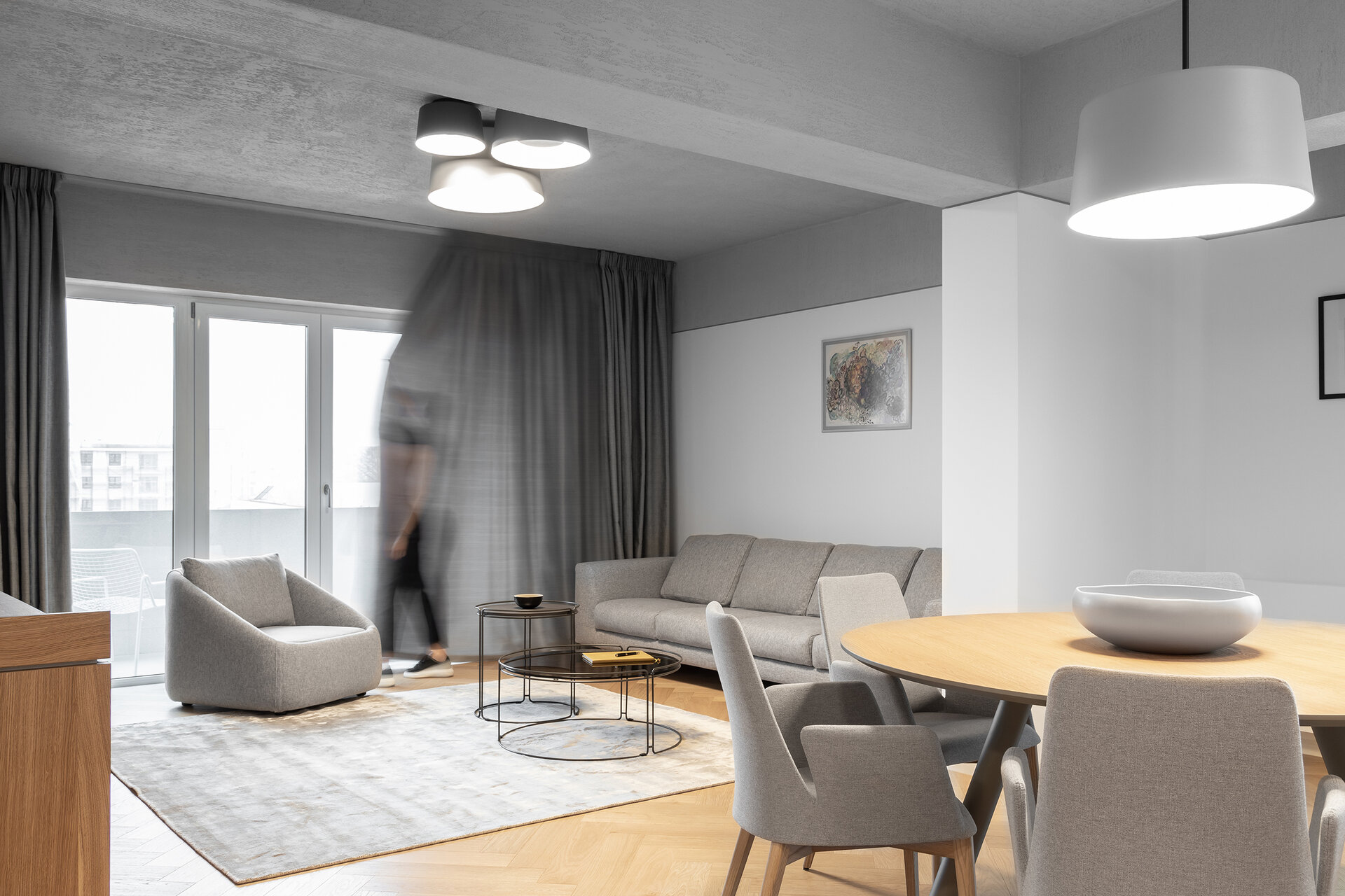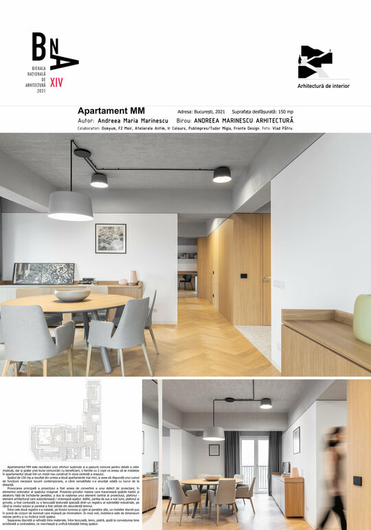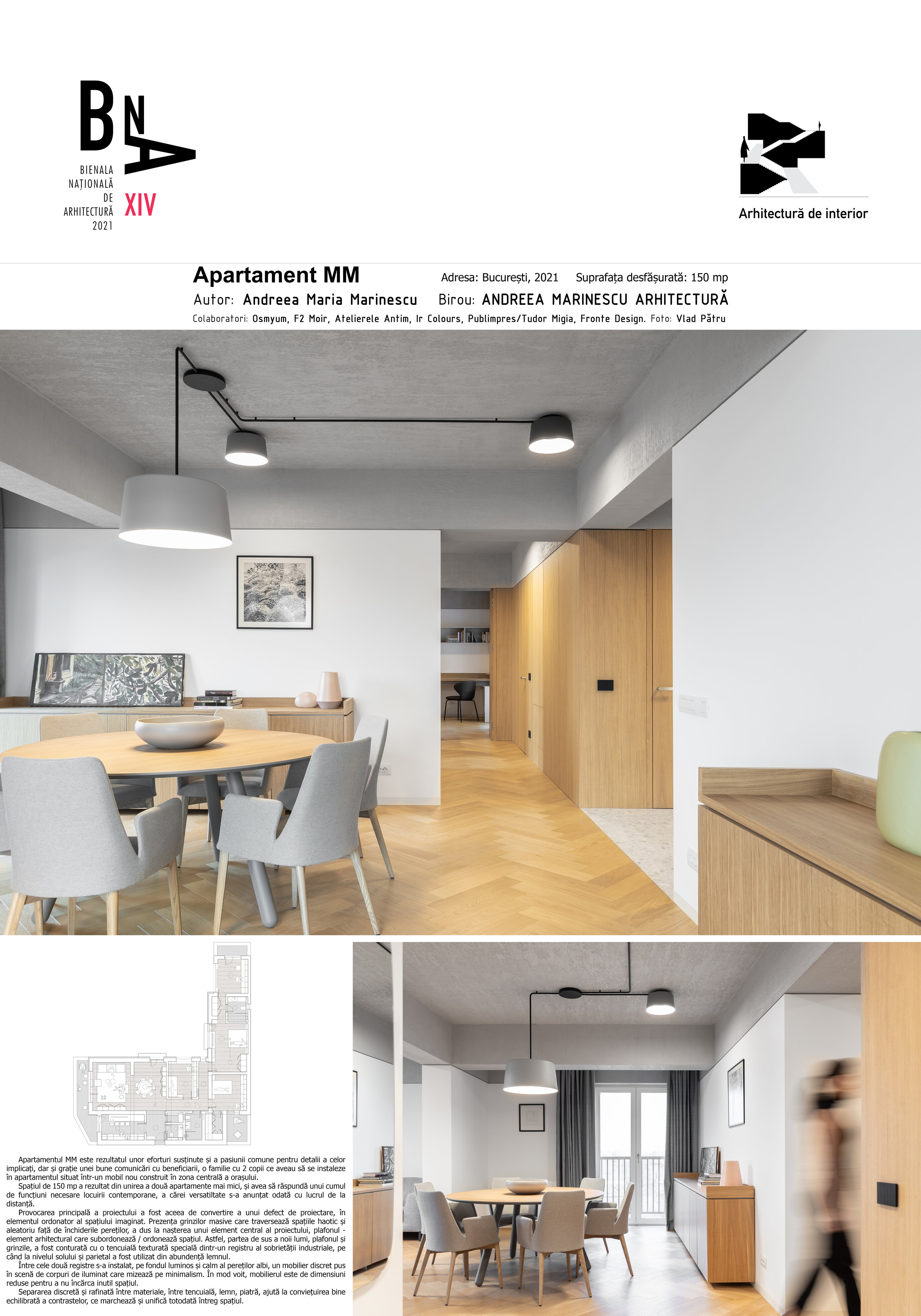 Apartamentul MM este rezultatul unor eforturi susținute și a pasiunii comune pentru detalii a celor implicați, dar și grație unei bune comunicări cu beneficiarii, o familie cu doi copii ce aveau să se instaleze în apartamentul situat într-un mobil nou construit în zona centrală a orașului.