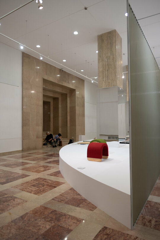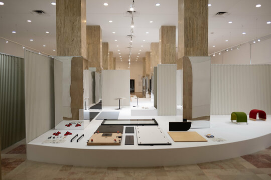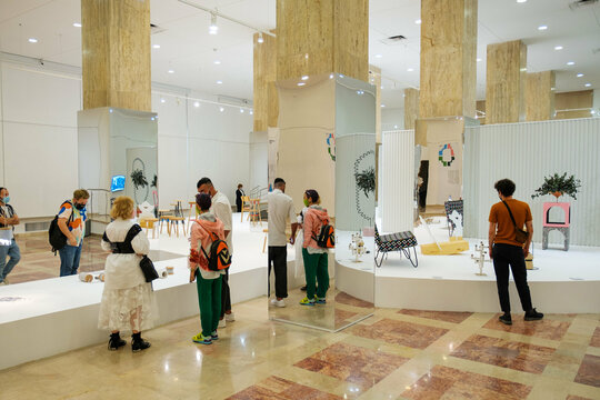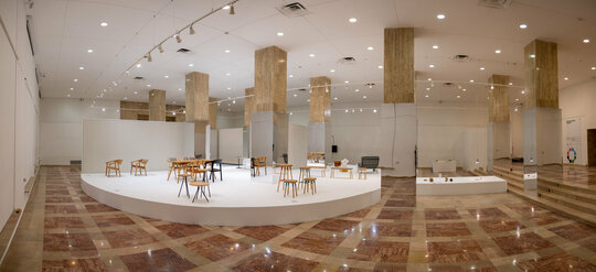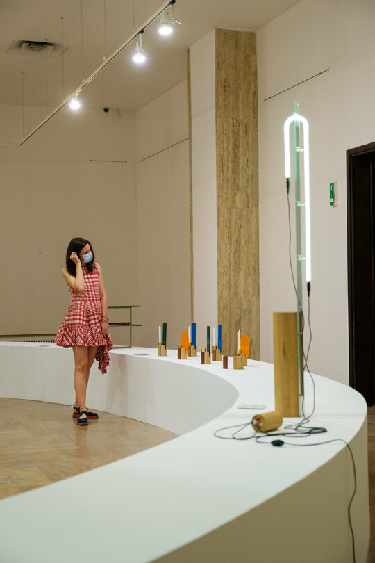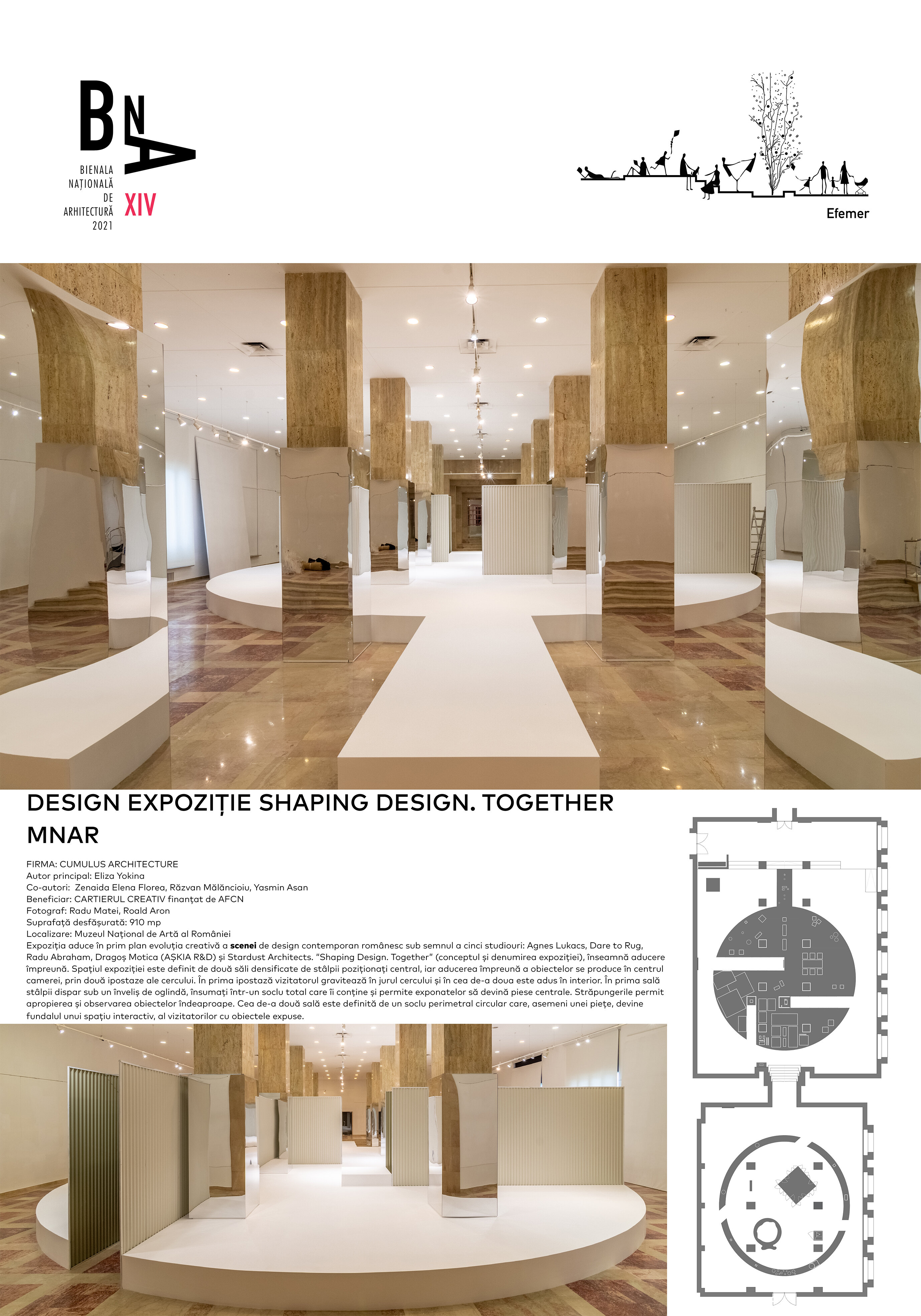 Expoziția aduce în prim plan evoluția creativă a scenei de design contemporan românesc sub semnul a cinci studiouri: Agnes Lukacs, Dare to Rug, Radu Abraham, Dragoș Motica (AȘKIA R&D) și Stardust Architects. “Shaping Design. Together” (conceptul și denumirea expoziției), înseamnă aducere împreună. Spațiul expoziției este definit de două săli densificate de stâlpii poziționați central, iar aducerea împreună a obiectelor se produce în centrul camerei, prin două ipostaze ale cercului. În prima ipostază vizitatorul gravitează în jurul cercului și în cea de-a doua este adus în interior. În prima sală stâlpii dispar sub un înveliș de oglindă, însumați într-un soclu total care îi conține și permite exponatelor să devină piese centrale. Străpungerile permit apropierea și observarea obiectelor îndeaproape. Cea de-a două sală este definită de un soclu perimetral circular care, asemeni unei piețe, devine fundalul unui spațiu interactiv, al vizitatorilor cu obiectele expuse.