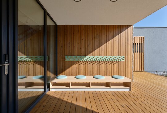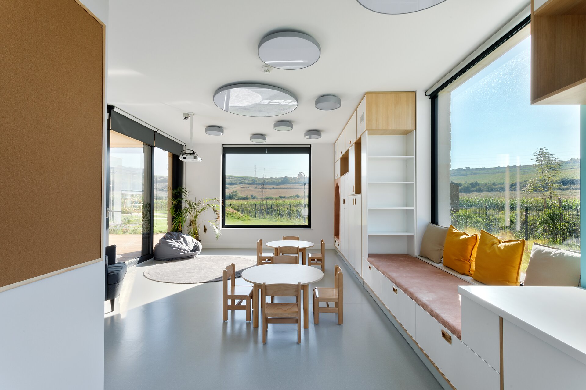 Inspirați de penarele chinezești care ne-au marcat primii ani de școală, am căutat nișele și pereții care să ne permită crearea unor obiecte de mobilier multifuncționale, cu uși ce au modalități de deschidere variate, ce asigură toată depozitarea pătuțurilor și așternuturilor, locuri de lectură, biblioteci, biroul profesorului, spațiile individuale de depozitare a materialelor didactice ale elevilor, grilele de ventilație, care integrează ferestrele și coboară parapetul la nivelul copiilor. Astfel, integrând în pereți depozitarea, spațiul clasei rămâne ordonat (sau, măcar, ordonabil).