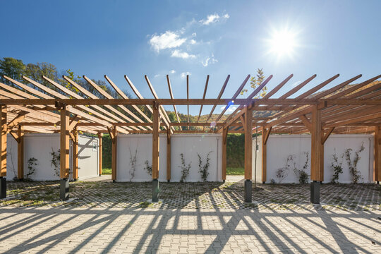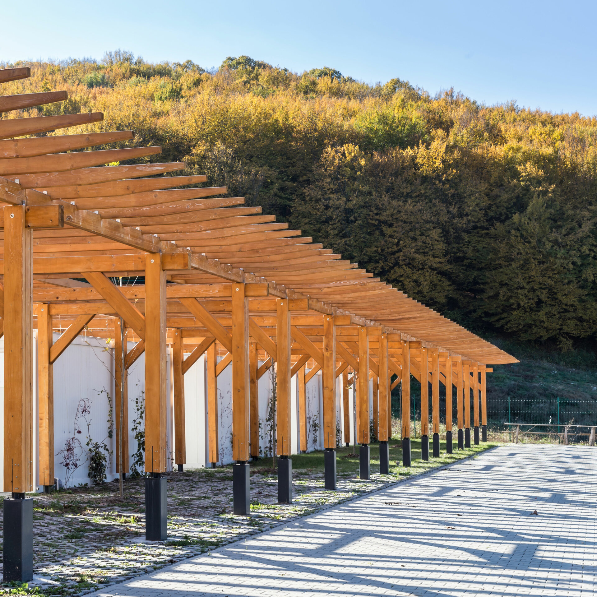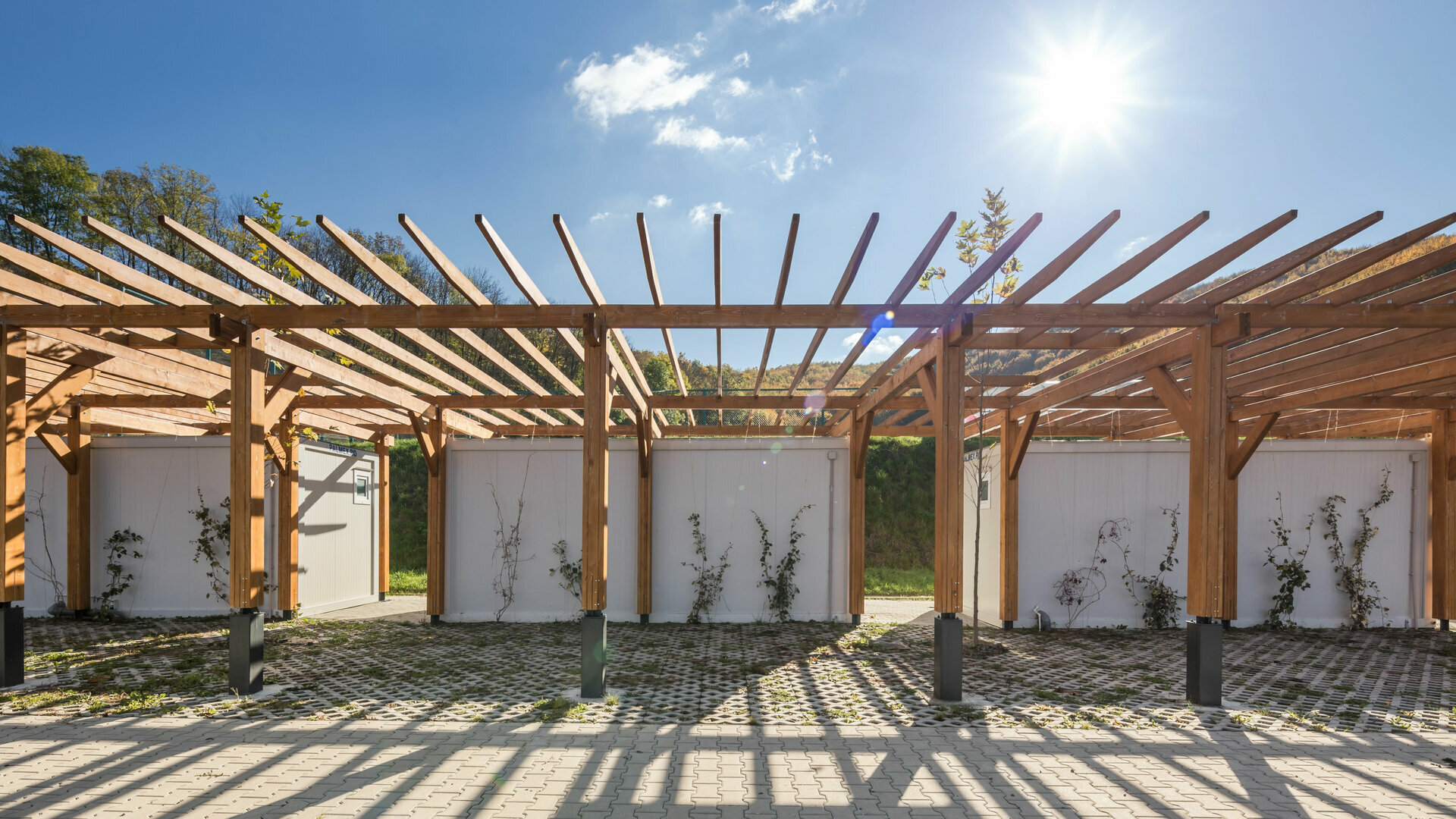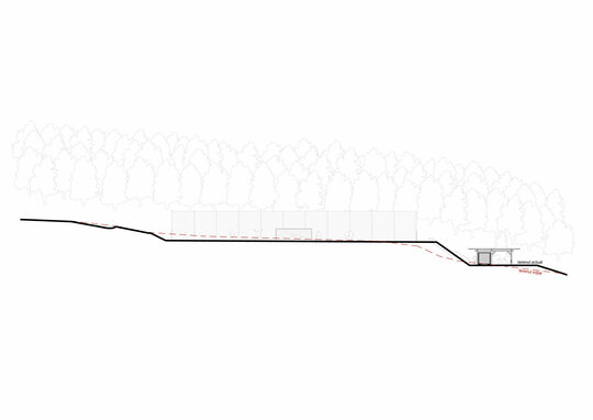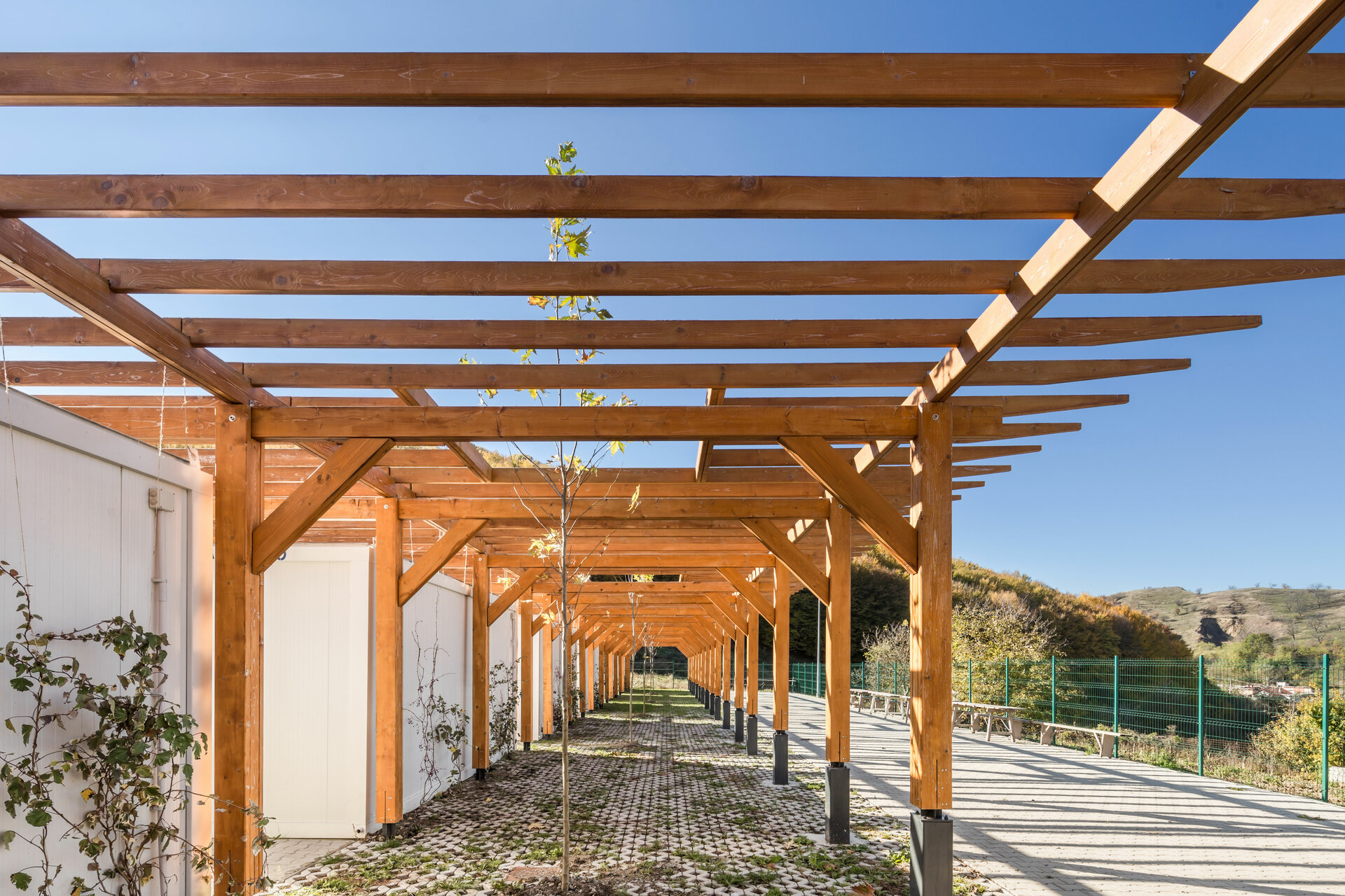Miza proiectului a constat în realizarea unei inserții discrete într-un peisaj unic. Terenul de sport este înconjurat pe 3 laturi de pădure, iar spre nord perspectiva se deschide peste sat, la nivelul ochiului rămânând turnul bisericii. Astfel, toate dotările s-au realizat in containere prefabricate, care, împreună cu parcările necesare, sunt acoperite de o pergolă, peste care se vor întinde, în timp, plante cățărătoare.