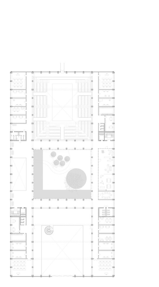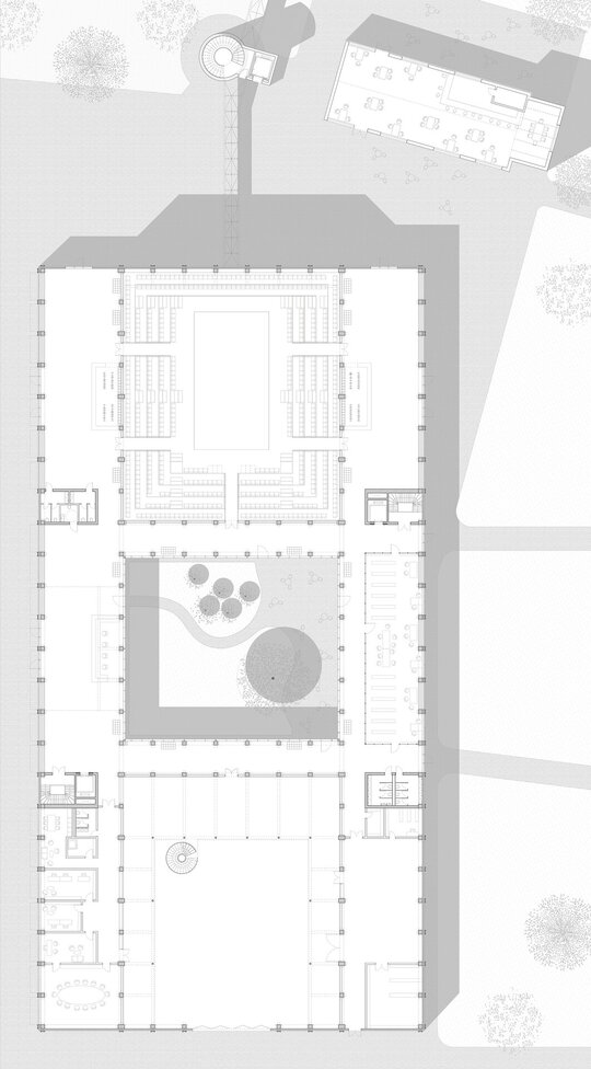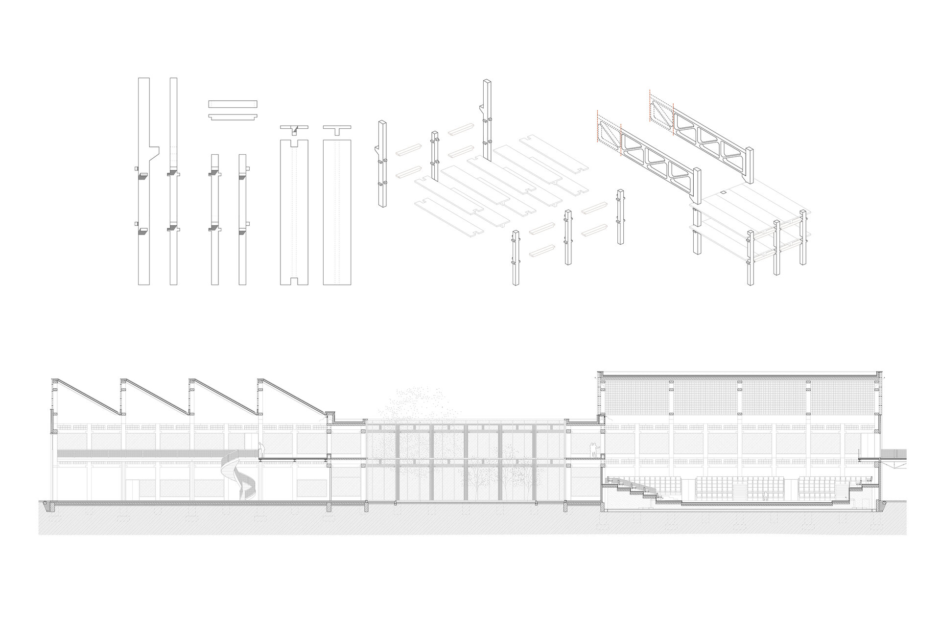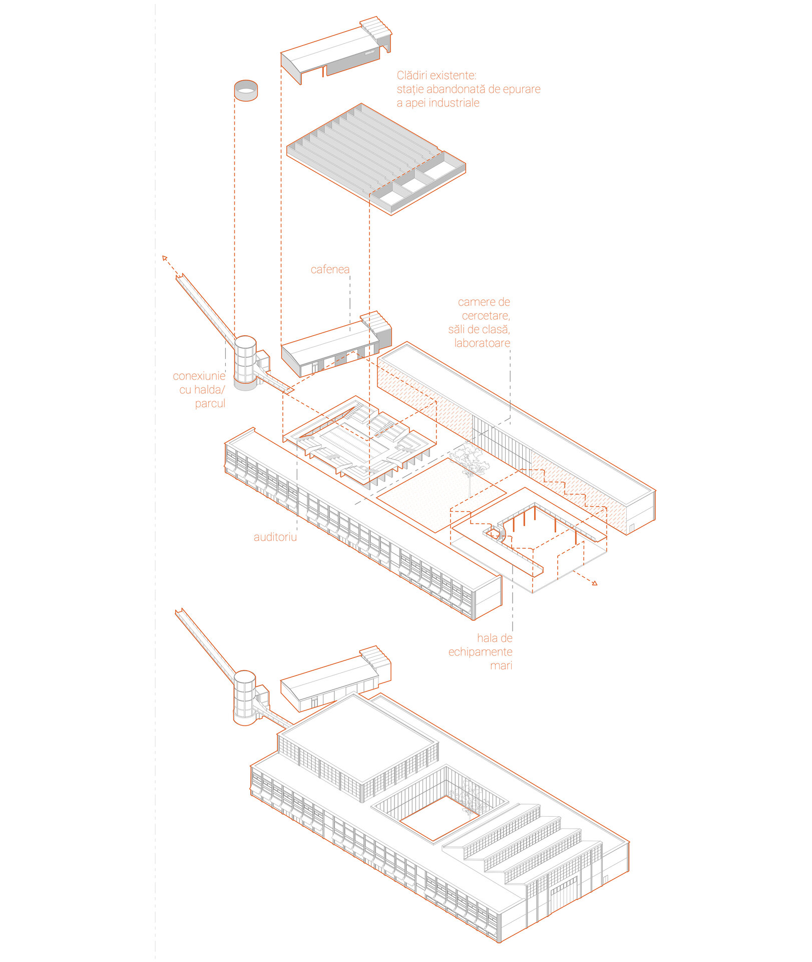 Proiectul ia în considerare conversia structurilor necesare valorificării odată cu finalizarea extracției reziduului: deschiderile largi necesare prefabricării elementelor constructive preiau ulterior rolul de săli acoperite de sport în cadrul unei baze sportive ce va deservi populația noului cartier dar și campusul universitar.