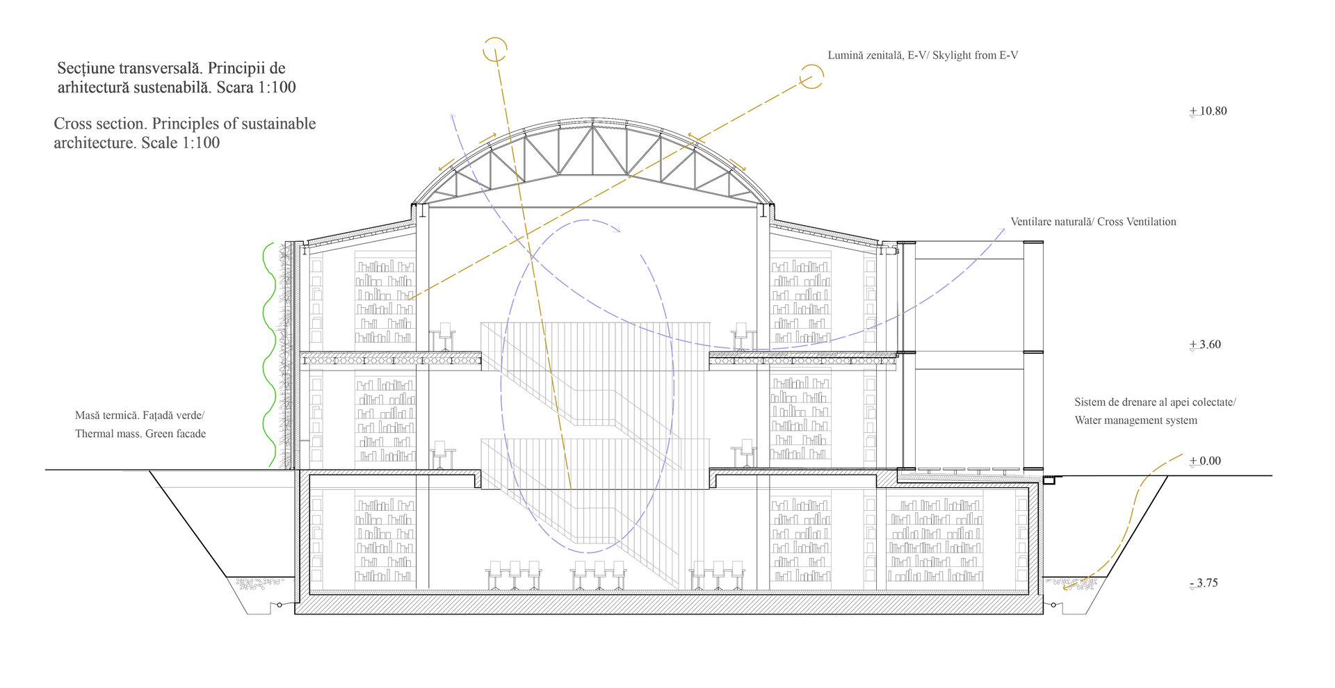 Astfel, se propune extinderea clădirii existente, reorganizarea expoziției permanente și introducerea de noi funcțiuni complementare cu cea muzeală: spații culturale publice și semi-publice, expoziții temporare, spațiii de co-working, săli de conferință, comerț și cafenea.