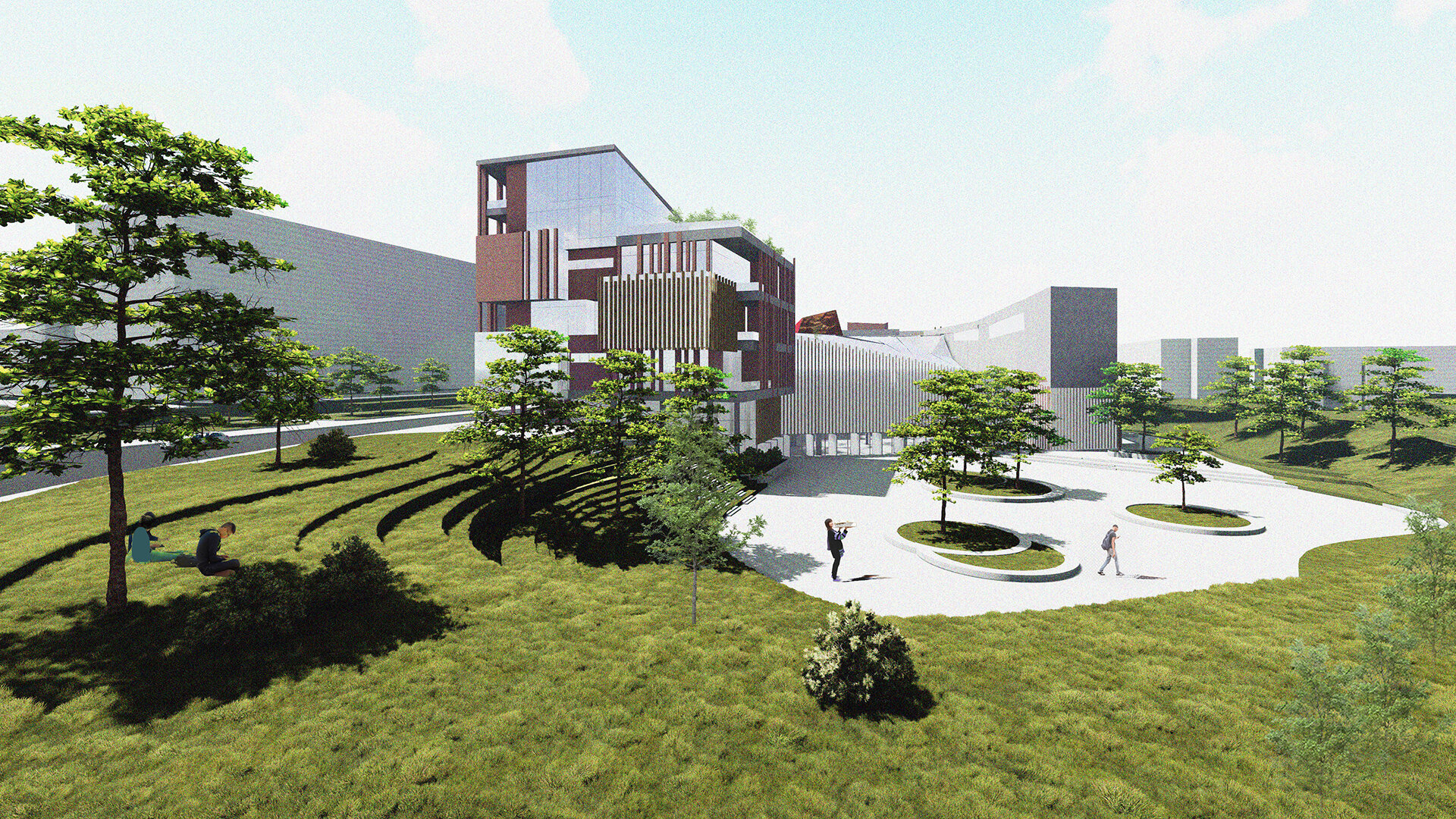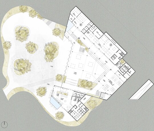 Suprafața totală construită a ansamblului este una redusă în comparație cu dimensiunea sitului pentru a conserva cât mai mult din cadrul natural existent, astfel fiind creat un microclimat pentru studenți predominat de vegetație.