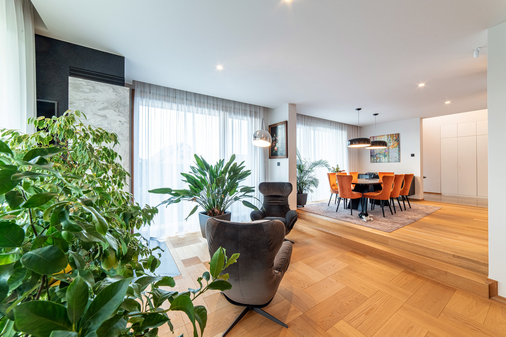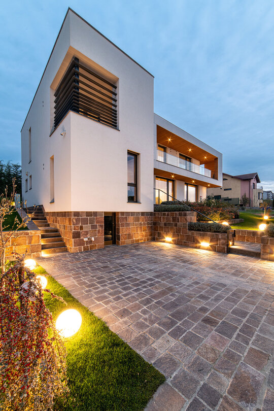 Imobilul locuință individuală se adaptează pantei terenului și se conformează astfel încât să respecte dorința clienților de intimitate, dar profită în același timp de perspectivele asupra orașului.