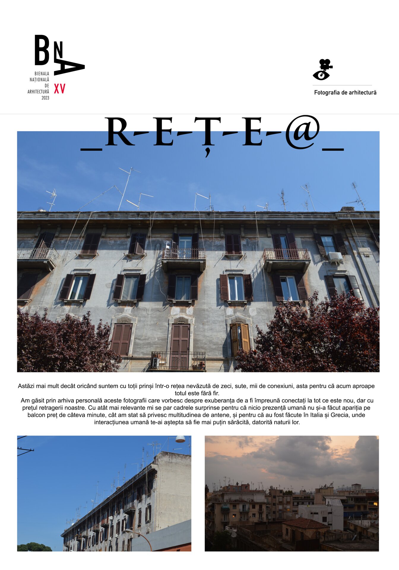 Am găsit prin arhiva personală aceste fotografii care vorbesc despre exuberanța de a fi împreună conectați la tot ce este nou, dar cu prețul retragerii noastre. Cu atât mai relevante mi se par cadrele surprinse pentru că nicio prezență umană nu și-a făcut apariția pe balcon preț de câteva minute, cât am stat să privesc multitudinea de antene, și pentru că au fost făcute în Italia și Grecia, unde interacțiunea umană te-ai aștepta să fie mai puțin sărăcită, datorită naturii lor.