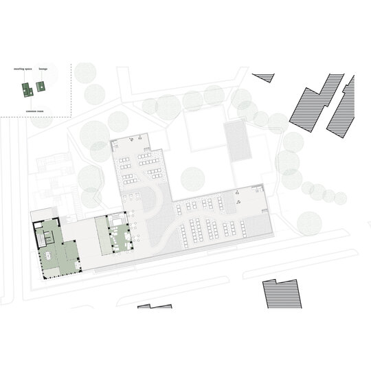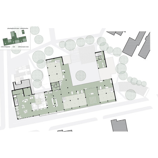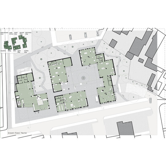 Oferta funcțională variată și atmosfera vecinătății vor constitui atractori pentru utilizatorii cartierului, locuitori sau trecători, conținând spații de tip atelier, multifuncțional, de întălnire, documentare sau relaxare.