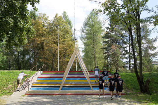 Piața centrală a orașului este locația principală de proiecție a festivalului și punctul unde se coagulează diverse evenimente de-a lungul anului pentru a aduna comunitatea locală. Centrul pieței este marcat de un element vertical ce funcționează ca suport al diferitor instalații în timpul acestor evenimente, astfel încât a fost și tema principală a primului pavilion.