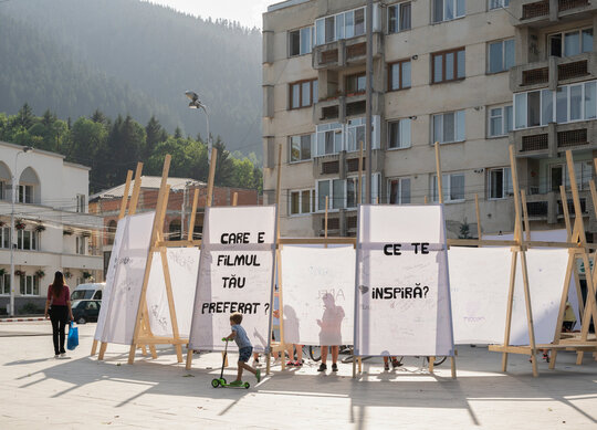Pentru început am ales mai multe spații de posibilă reprezentare, studiind totodată și oportunități de valorificare spațială sau activarea anumitor puncte de importanță locală. Astfel, plecând de la locațiile principale din edițiile precedente - proiecție în piscina ștrandului părăsit, pe pârtia de ski sau în interiorul bisericii catolice - am încercat racordarea acestora la alte puncte din traseul cultural al orașului.