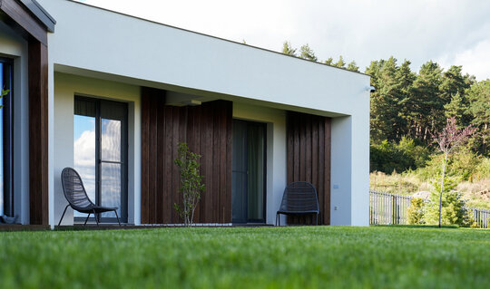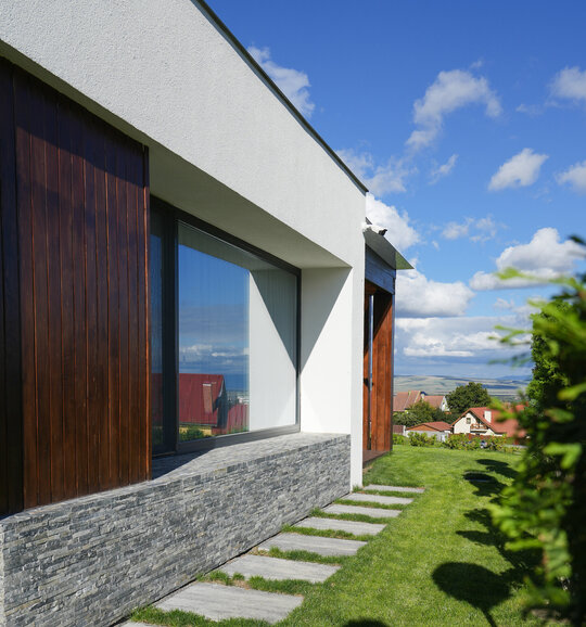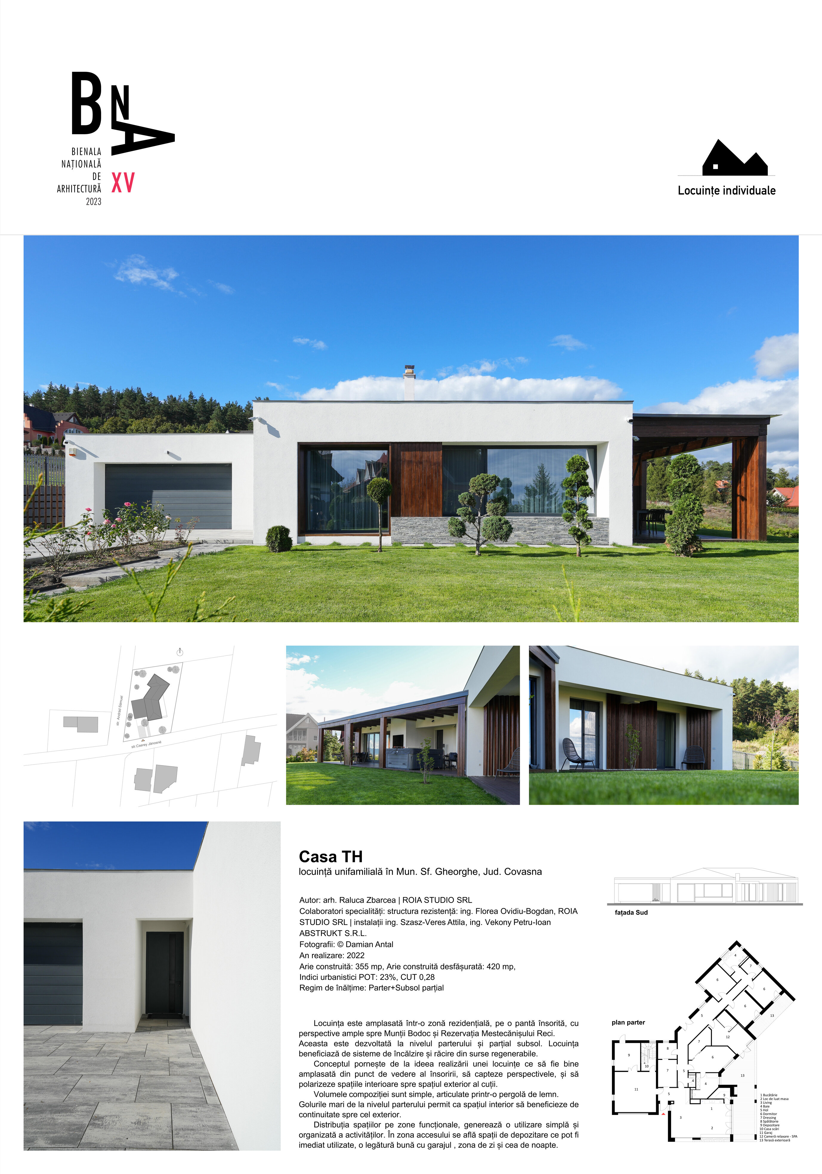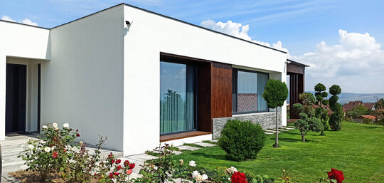 Aceasta este dezvoltată la nivelul parterului și parțial subsol. Locuința beneficiază de sisteme de încălzire și răcire din surse regenerabile.