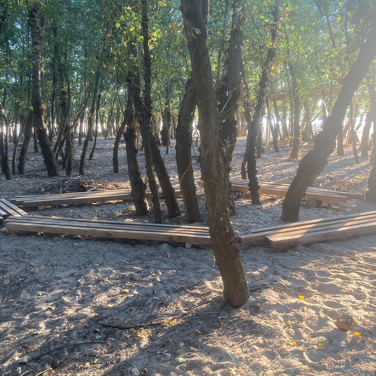 Pe parcursul celor 6 zile de tabără, studenții au executat mici obiecte de mobilier din lemn și instalații precum: bancă pentru zona de așteptare, instalație de acces la ponton, structuri pentru deșeuri și materiale reciclabile, obiect semnal - corabia cu pânze, structură hamac, locuri de stat pentru amfiteatru în aer liber, locuri pentru contemplare, umbrar.