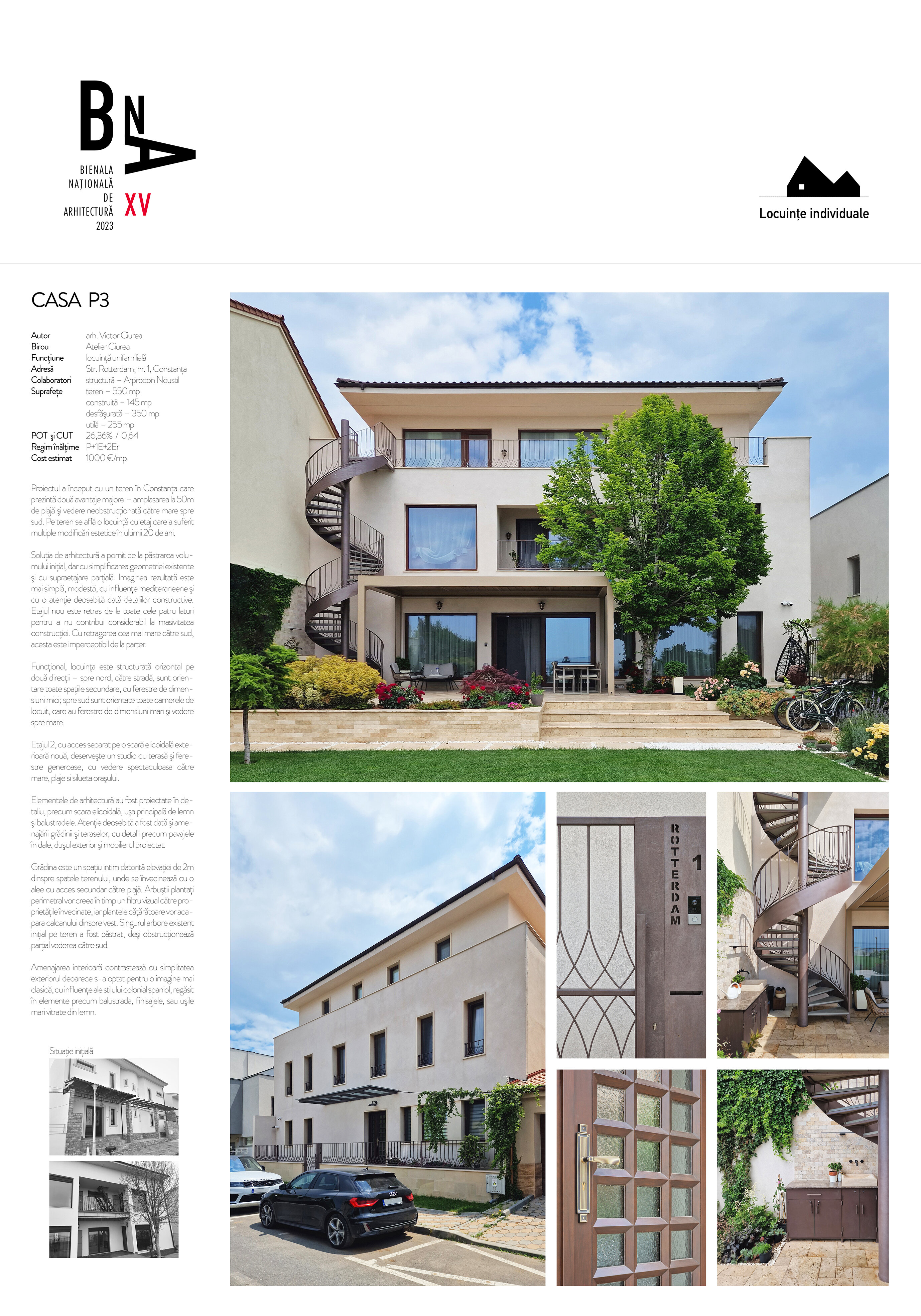 Proiectul a început cu un teren în Constanţa care prezintă două avantaje majore – amplasarea la 50m de plajă şi vedere neobstrucţionată către mare spre sud. Pe teren se află o locuinţă cu etaj care a suferit multiple modificări estetice în ultimii 20 de ani.