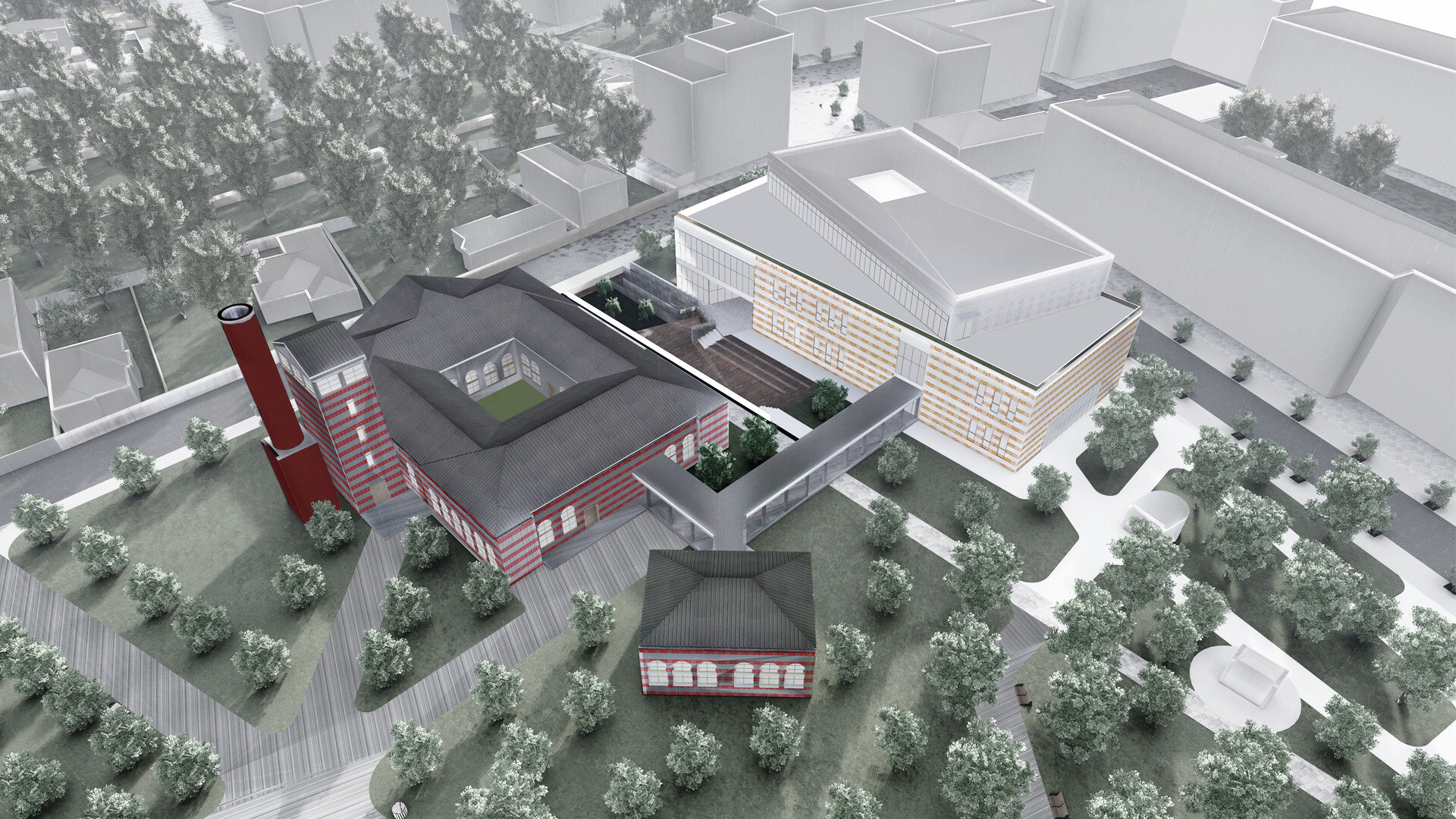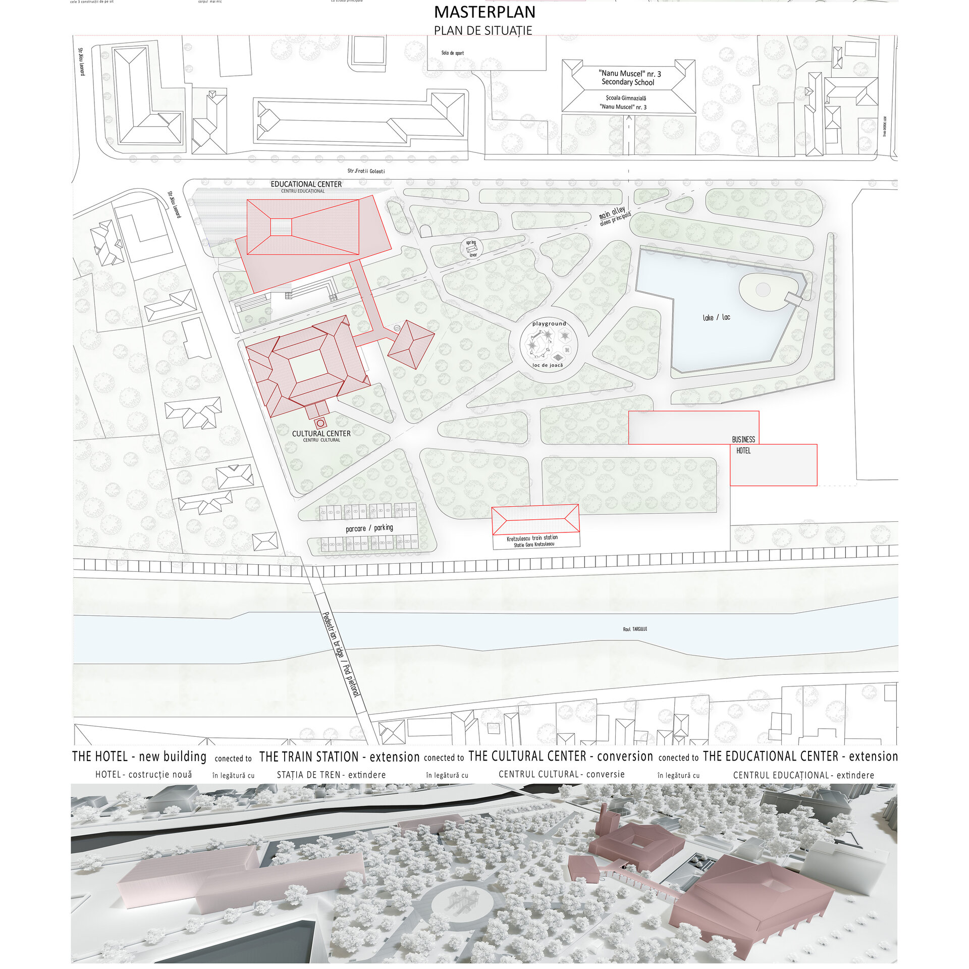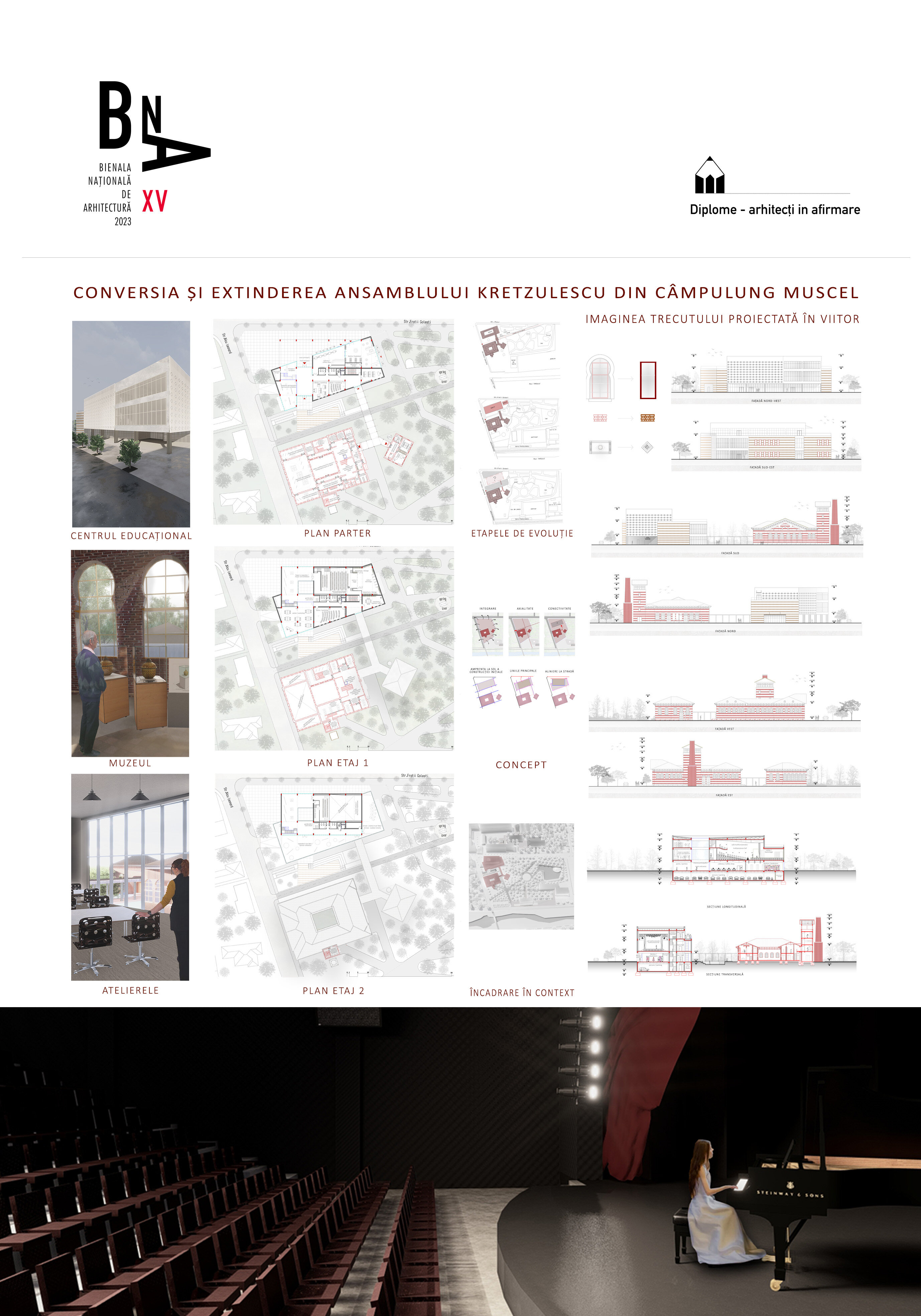 Proiectul de diplomă a pornit de la dorința de a crea un spațiu necesar și util pentru toți locuitorii orașului Câmpulung Muscel, reinterpretând arhitectura clădirilor uitate într-o manieră contemporană și având ca laitmotiv imaginea trecutului proiectată în viitor. Conceptul intervenției s-a bazat pe integrare, axialitate si conectivitate, readucerea la viață a simbolului pierdut al zonei prin regenerarea urbană și crearea unui nou nucleu cultural și educațional al orașului.