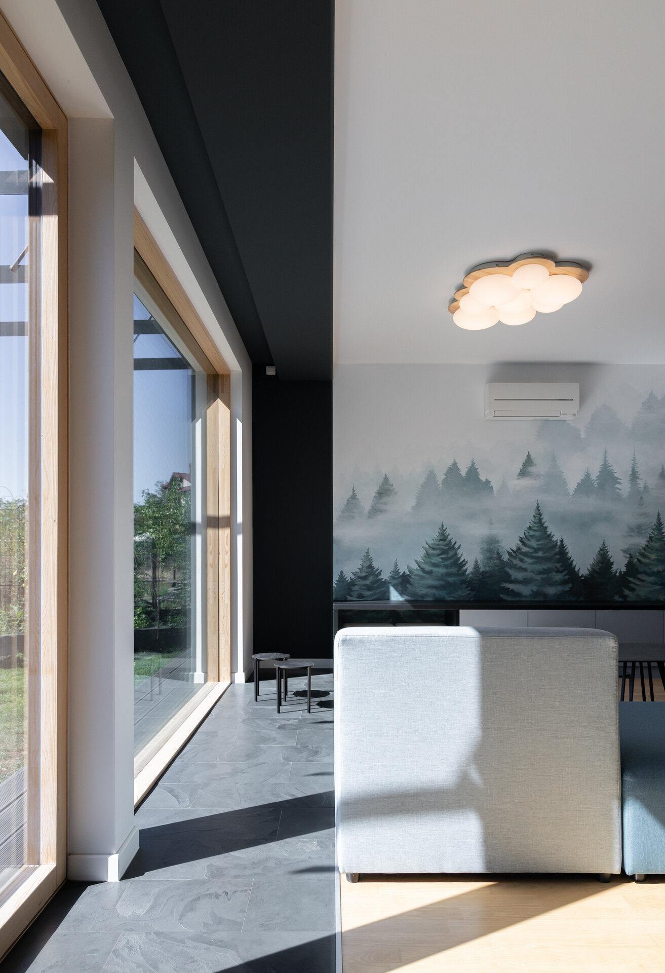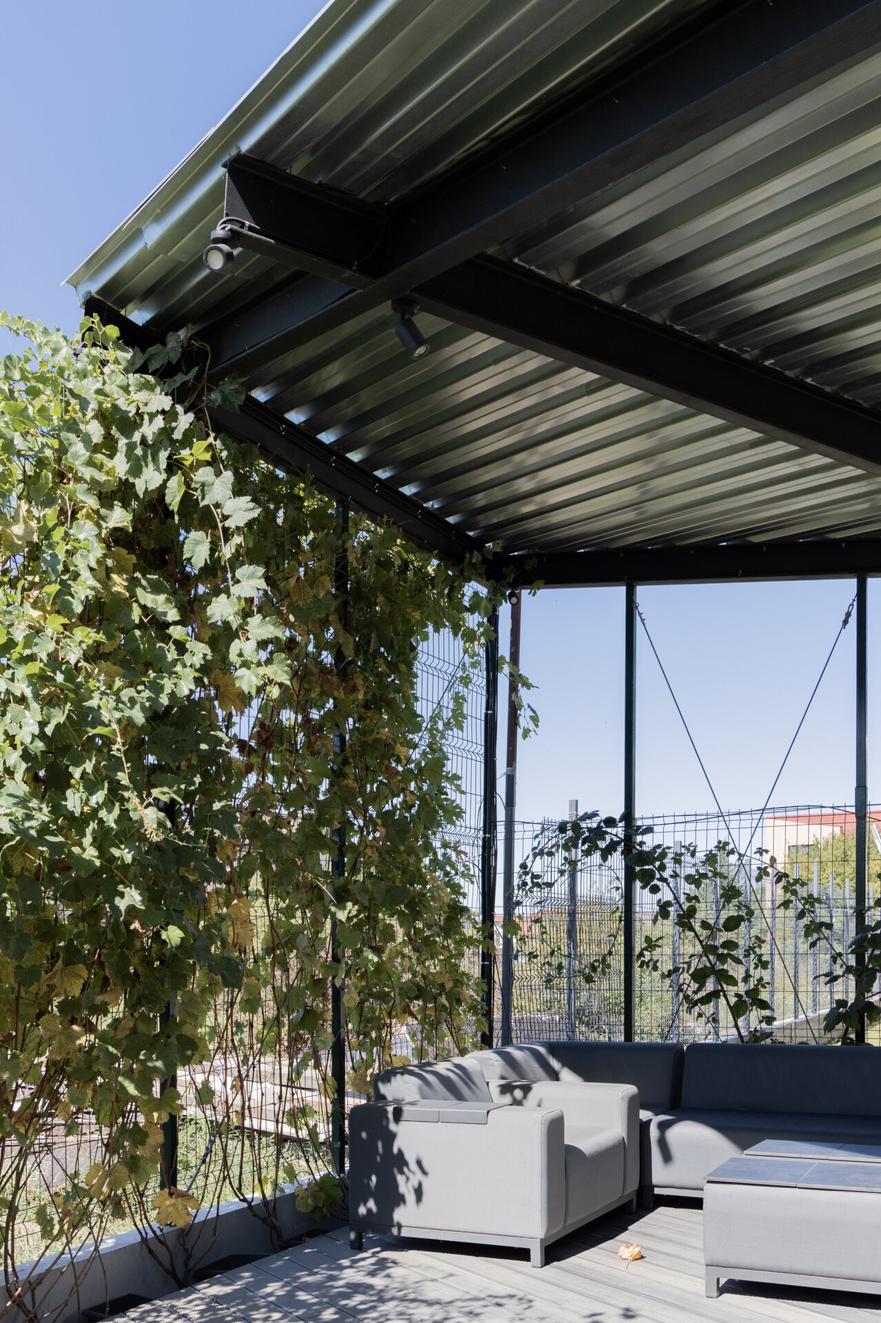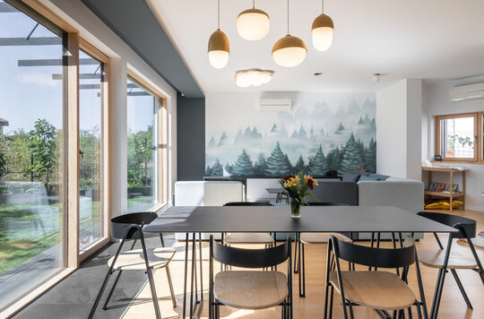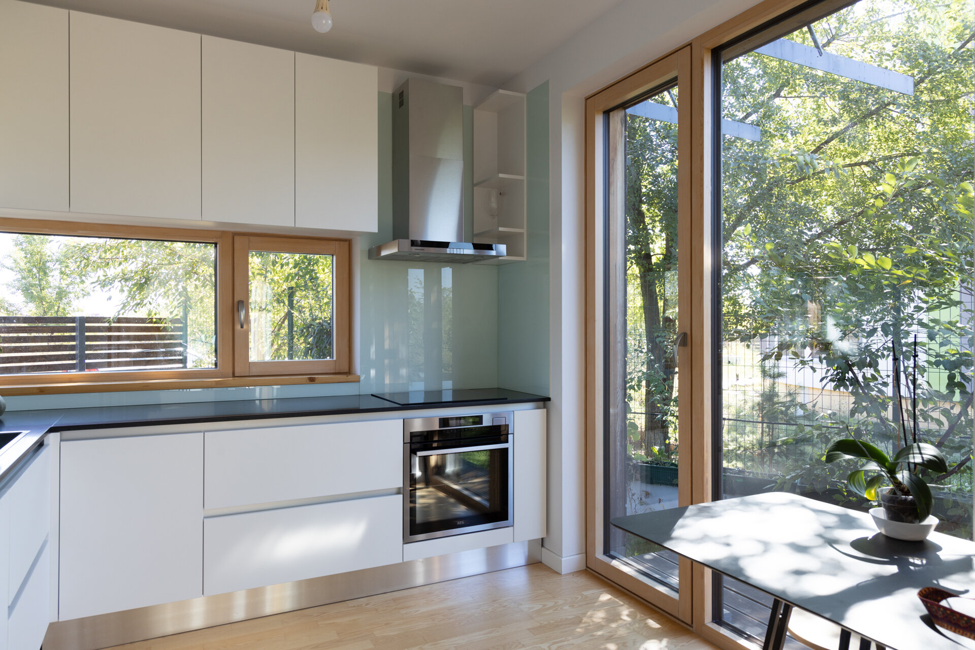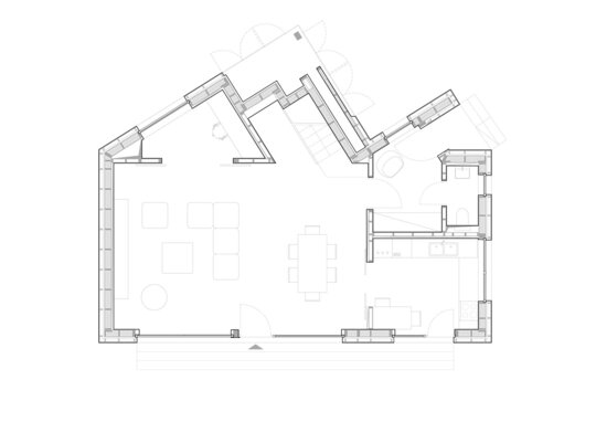isi gaseste menirea ca negociator intre beneficiari si contextul natural, cu accentul pus pe proiectarea bioclimatica, aportul solar si reducerea pierderilor de energie prin mijloace pasive. Volumul principal al casei ocupa spatiul central al curtii ceea ce ii da posibilitatea rotirii, intr-o miscare de orientare ideala spre lumina si caldura solara. Pivotand astfel intre limitele terenului, acesta creeaza ‘camere exterioare’ conectate intim cu cele interioare: catre V, un spatiu de terasa exterioara acoperita; catre S, curtea verde; catre V, spatiul copacilor inalti si umbrosi si catre N, spatiul de acces si parcare.