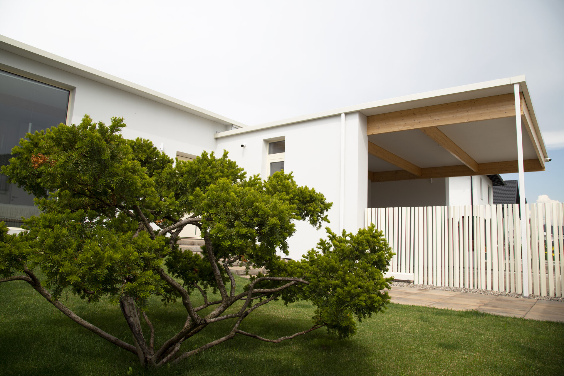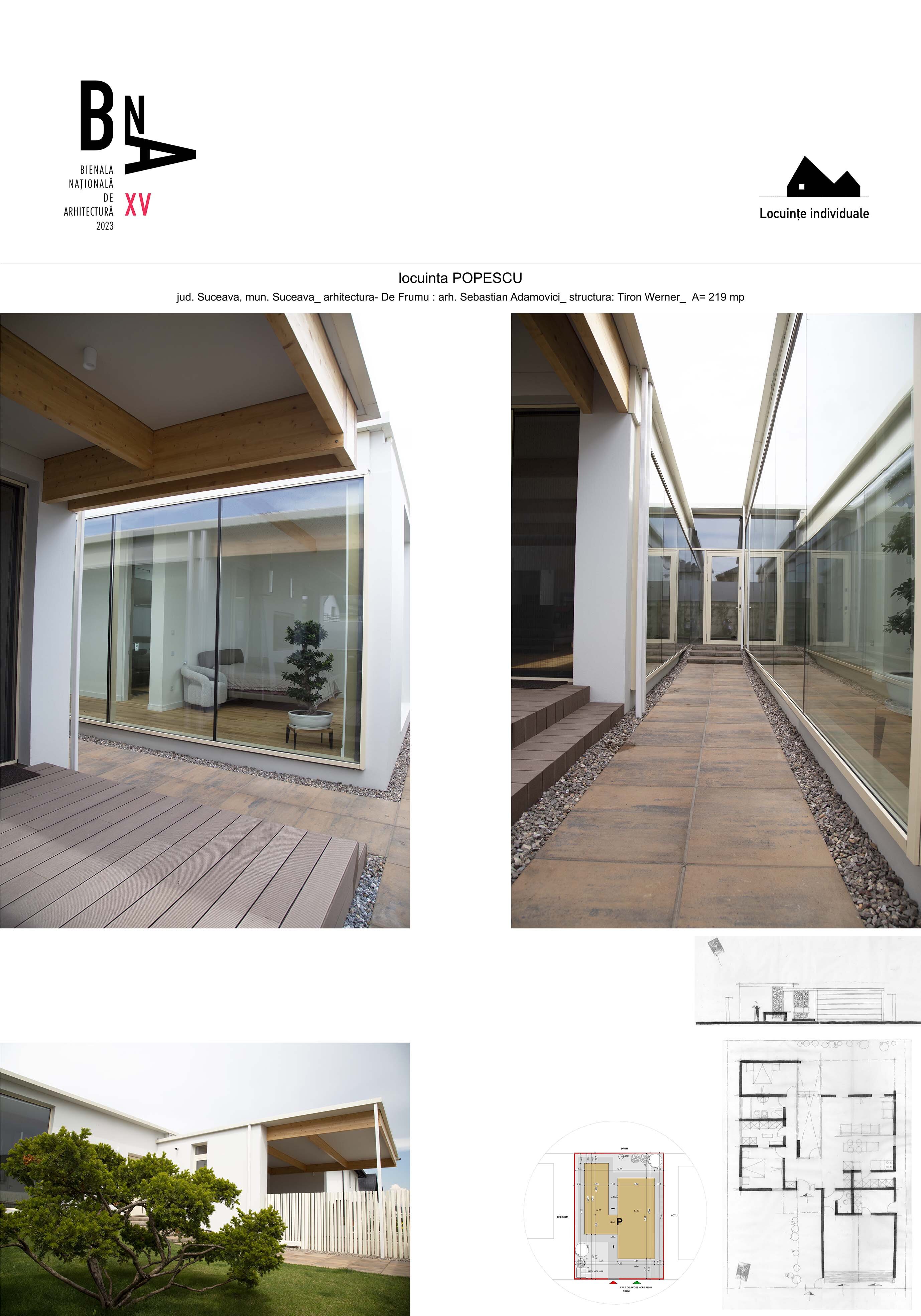Locuinta se lasa deschisa catre exterior si invers. Finisajele simple si armonioase. Elementele principale de arhitectura sunt consolele generoase. Un alt punct forte si curajos abordat sunt spatiile vitrate.