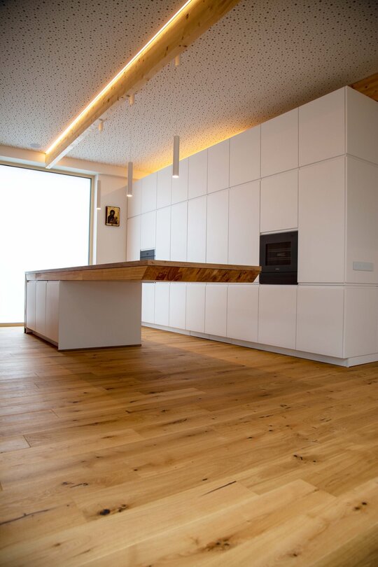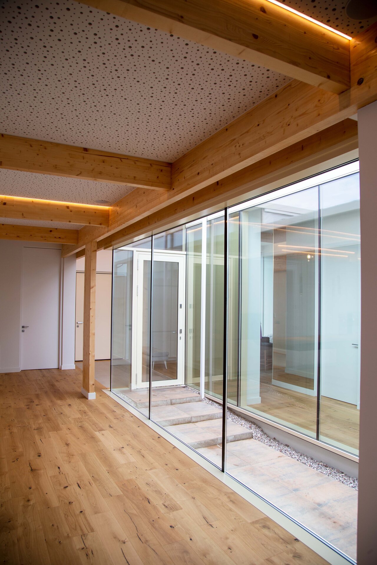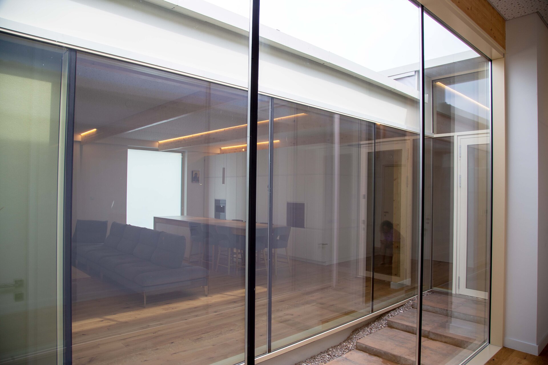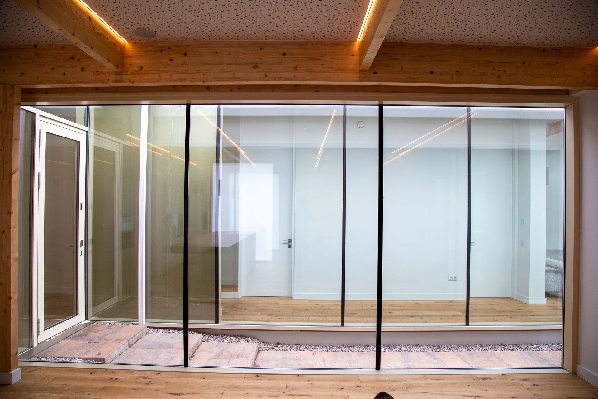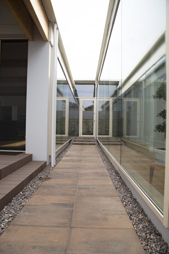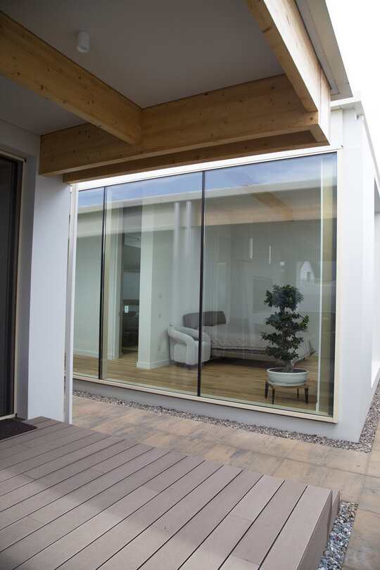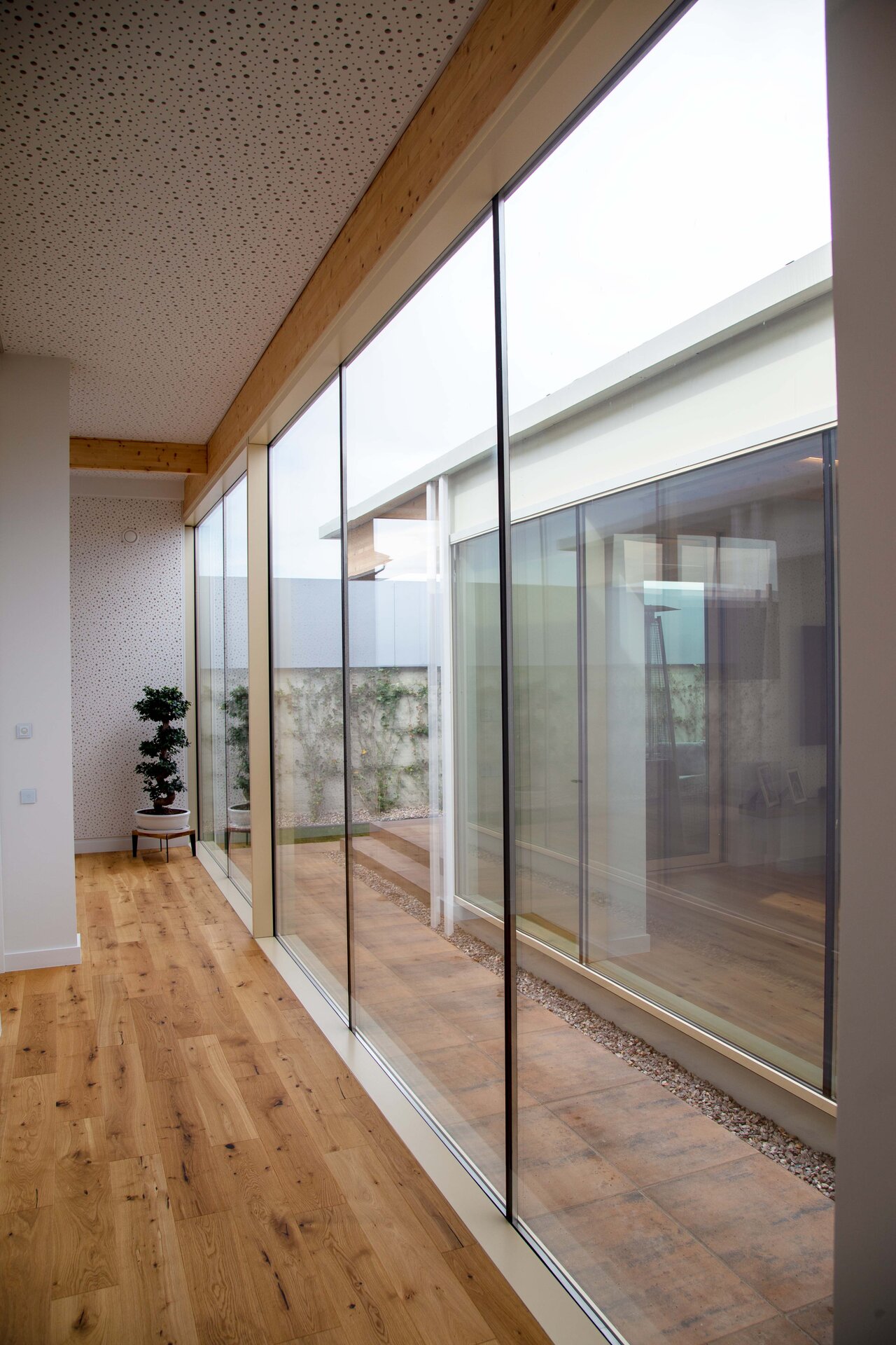 Partea functionala are o functiune interesanta, deoarece sparge zona de zi si zona de noapte prin tunelul de sticla pentru a accesa terasa din spate. Deschiderile mari rezolvate prin grinzile lamelare, manierismul fiind punctul forte al casei.