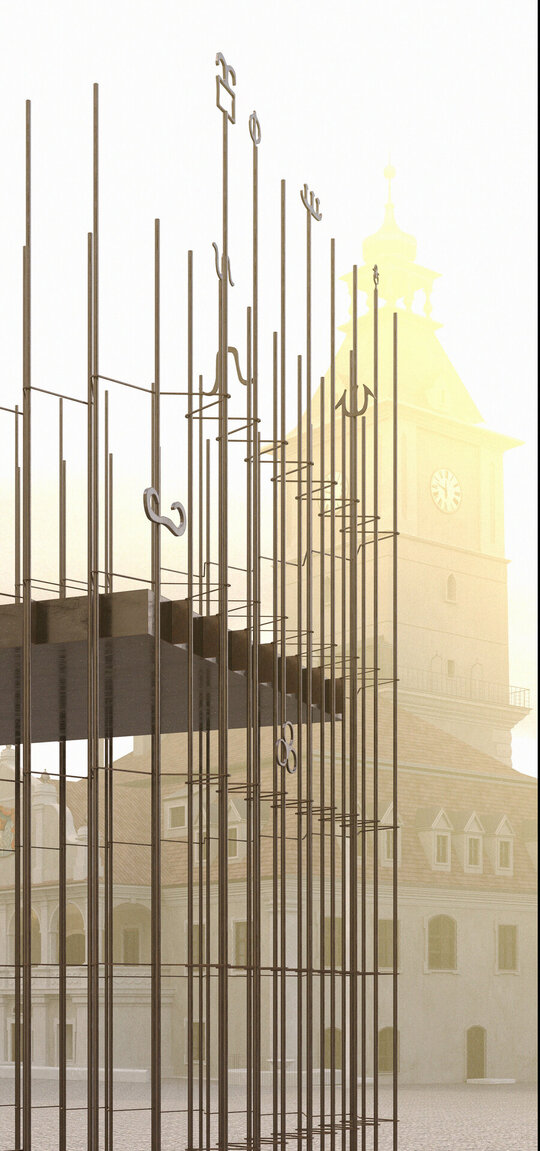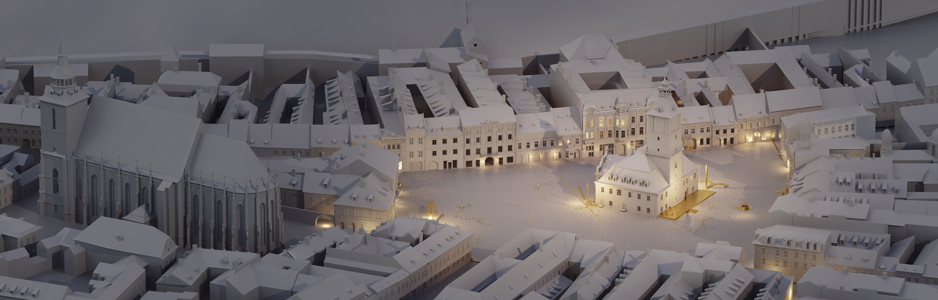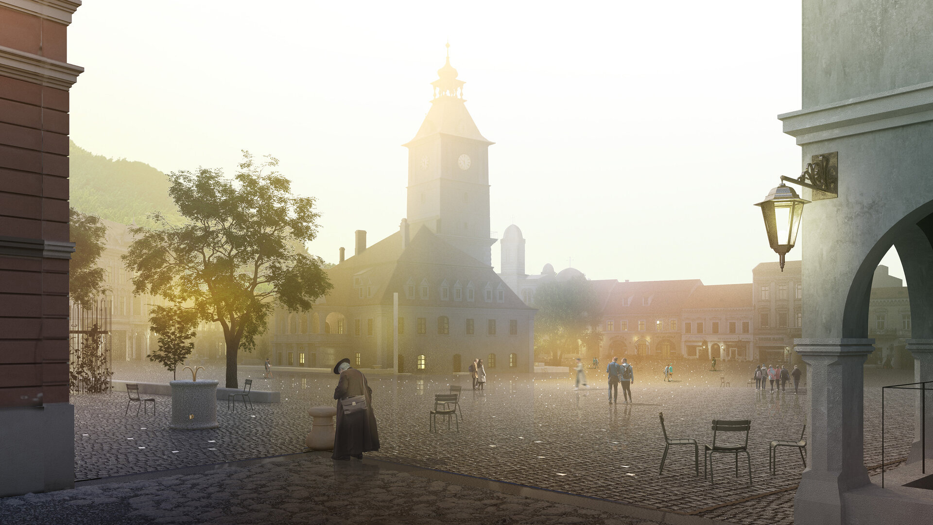 Piața Sfatului din Brașov este atât o prezență fizică, cât și un interval de timp care măsoară acest efort de a fi în aer liber; a fi scos la lumină are de-a face cu acest moment al pieței orașului, dar și cu un impuls fizic, cu impetuozitatea unui fel de arcuire care deformează piața expunându-i deschiderea și făcându-o tot mai prezentă. Orice alte adăugiri sunt predispuse să perturbe acest elan inaugural, prin urmare, proiectul nu ar trebui să fie mai mult decât o ajustare modestă și rezonabilă a greutăților care trag gravitațional în jos și contorsionează Piața Sfatului. Propunerea noastră urmărește să realizeze acest echilibru discret între elementele portante și arcul fin al deschiderii prin gruparea intuitivă a artefactelor. Această distorsiune despre care vorbim nu trebuie să fie ascunsă sub vălul banalului, ci trebuie celebrată discret, împreună cu stranietatea sa. Această celebrare a ieșirii în evidență se realizează, în mod paradoxal, printr-un act de abstractizare paralel și inversat, o constrângere impusă de sine în conformitate cu strategia de distribuire a încărcăturii menționată mai sus, care alterează semnificativ învelișul subțire al pătratului.