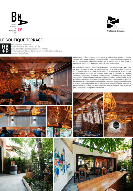 Restaurantul Le Boutique este un loc unde te poți simți ca acasă și unde poți savura o mâncare excepțională în același timp. Pentru acest restaurant amplasat în centrul Bucureștiului s-a dorit un design care să readucă locul la viață și care să optimizeze spațiul, obținându-se o zonă mai mare de luat masa.