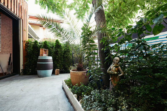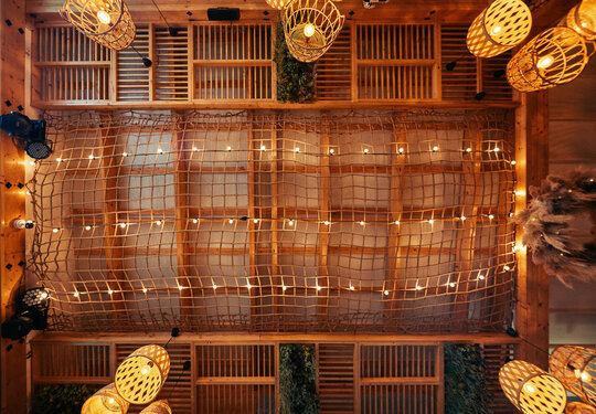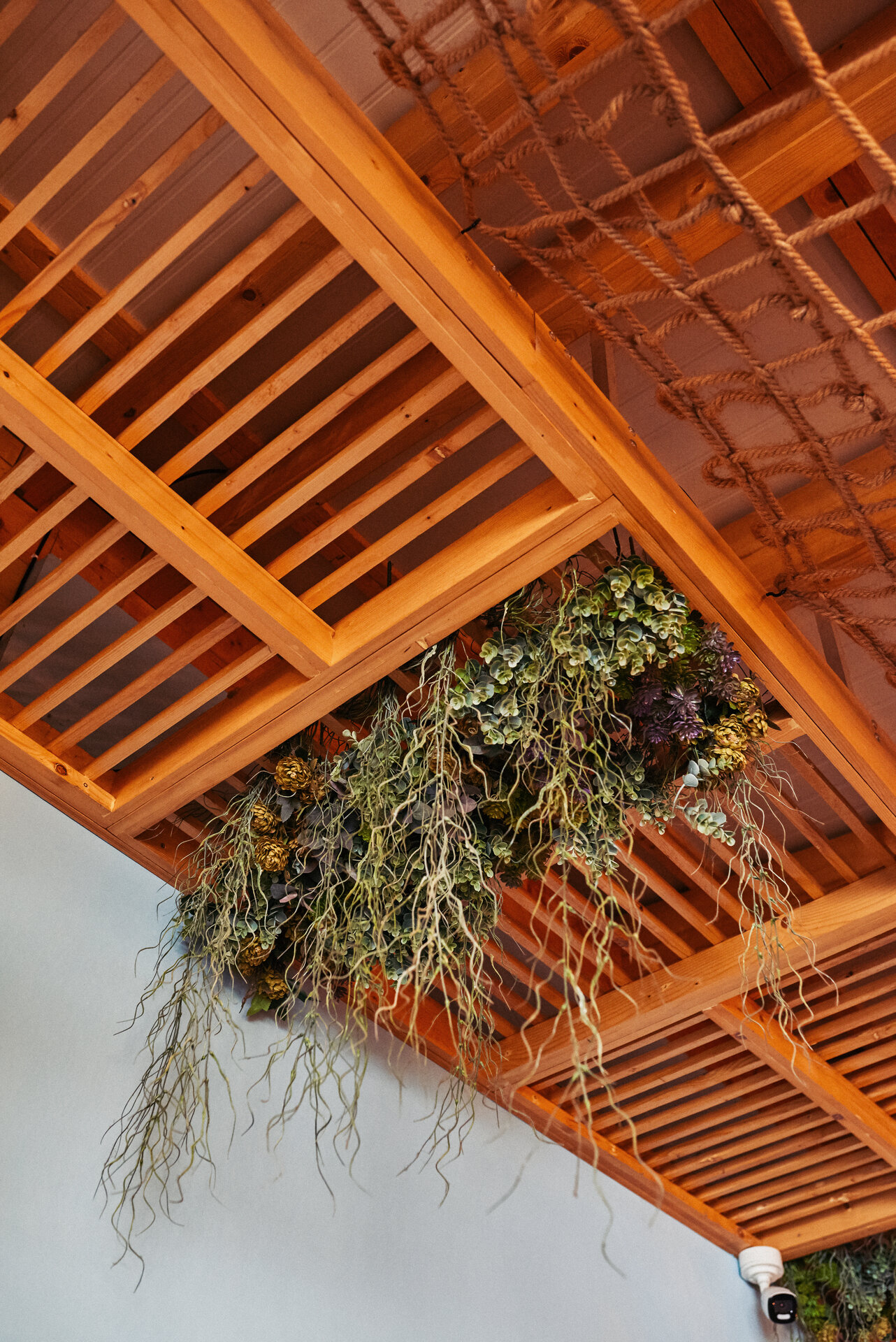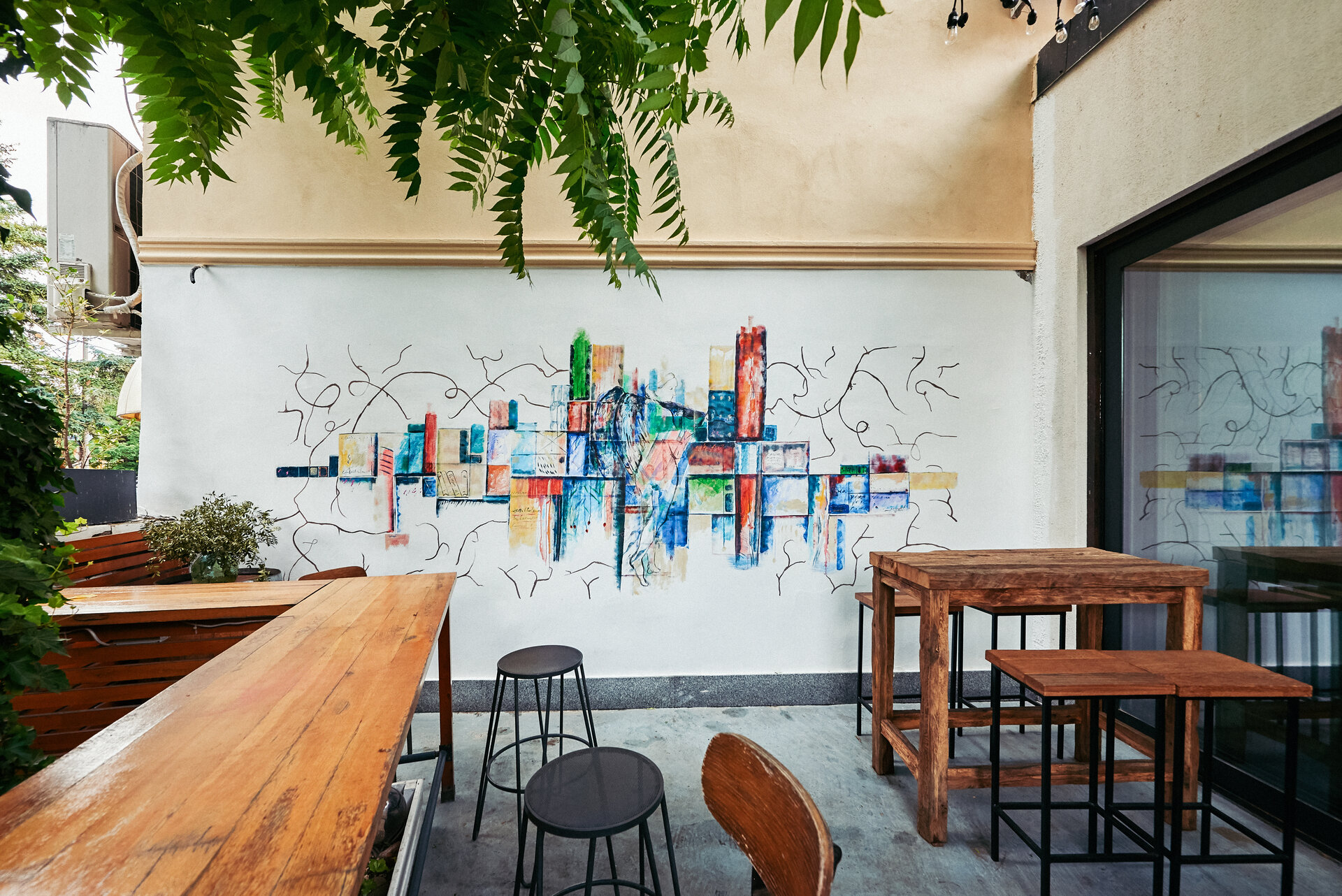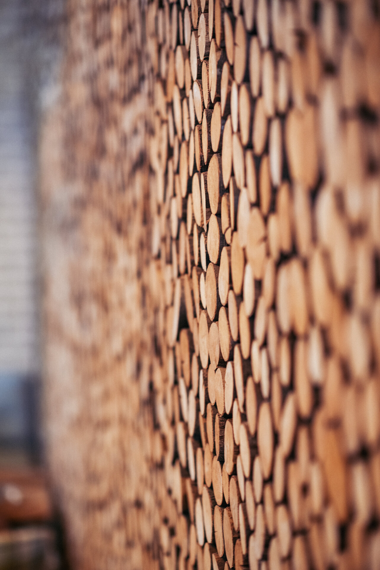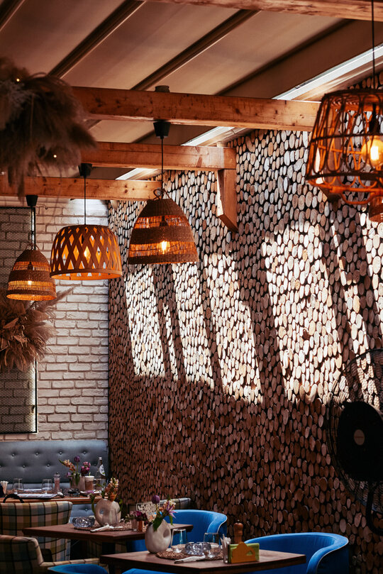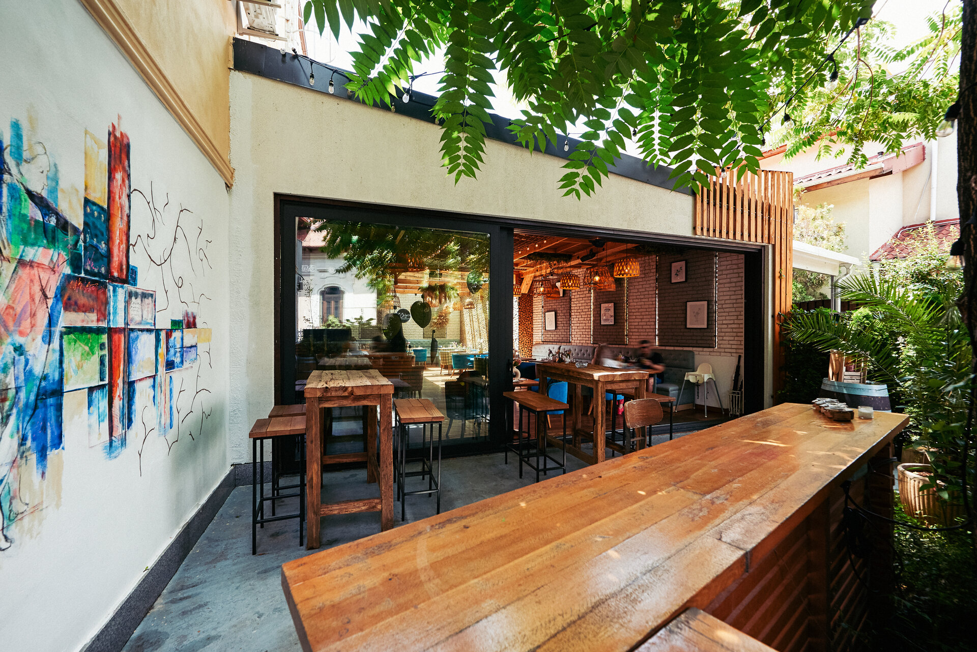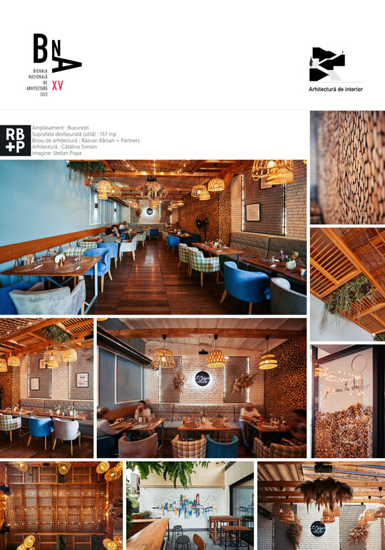 Barul a fost mutat într-o încăpere mai mică care conectează spațiul cu terasa exterioară, devenind prin prezența sa un element de legătură între interior și exterior. Din amenjarea inițială au fost păstrate tavanul din lemn, podeaua și pereții îmbrăcați în bucăți de lemn secționate.