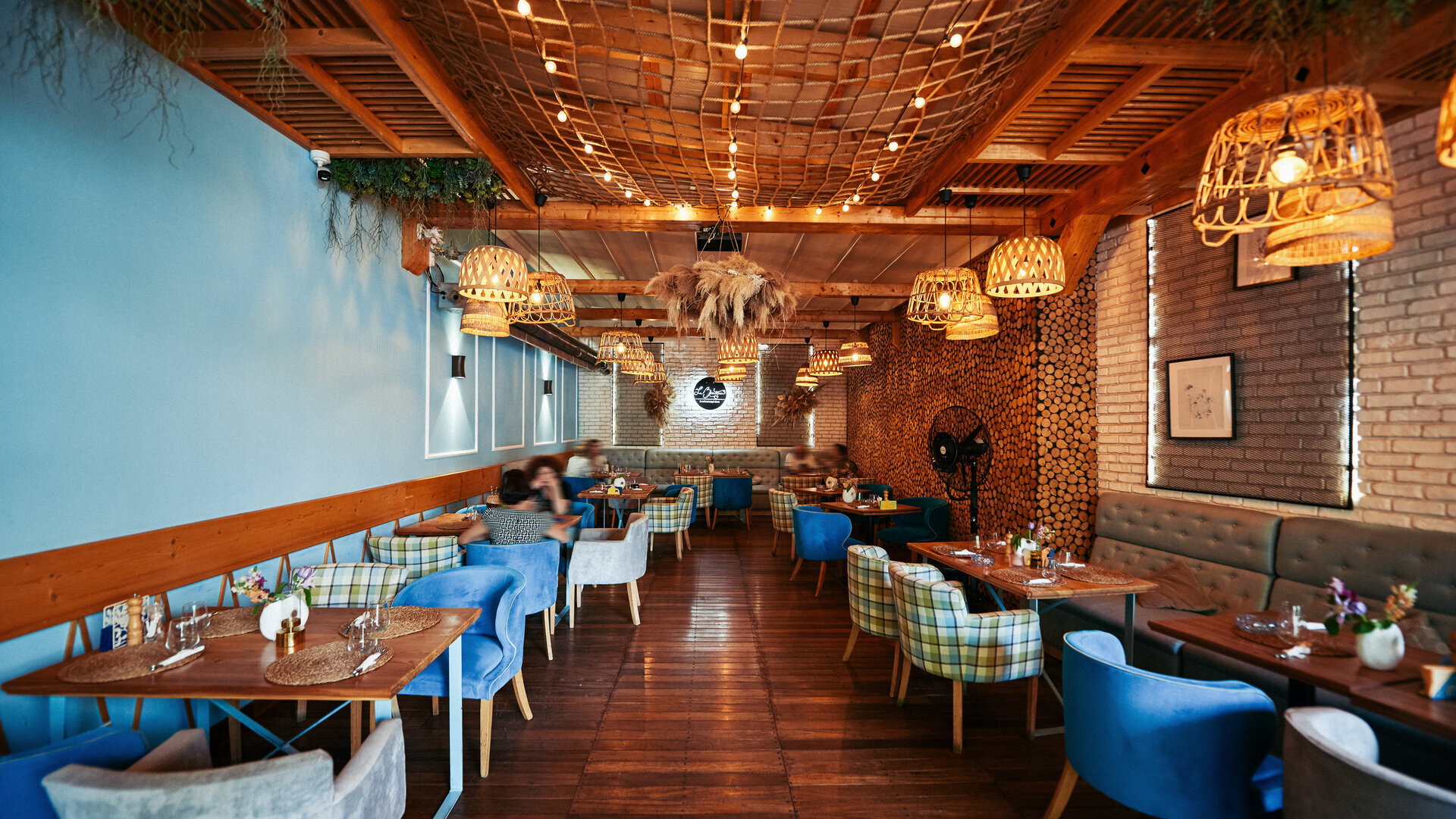 Cu o temă mult mai temperată față de design-ul inițial a fost creată o nouă zonă de acces cu o nouă recepție și o mică garderobă. Din recepție se realizează accesul în zona de mese, acolo unde ambientul a fost schimbat radical.