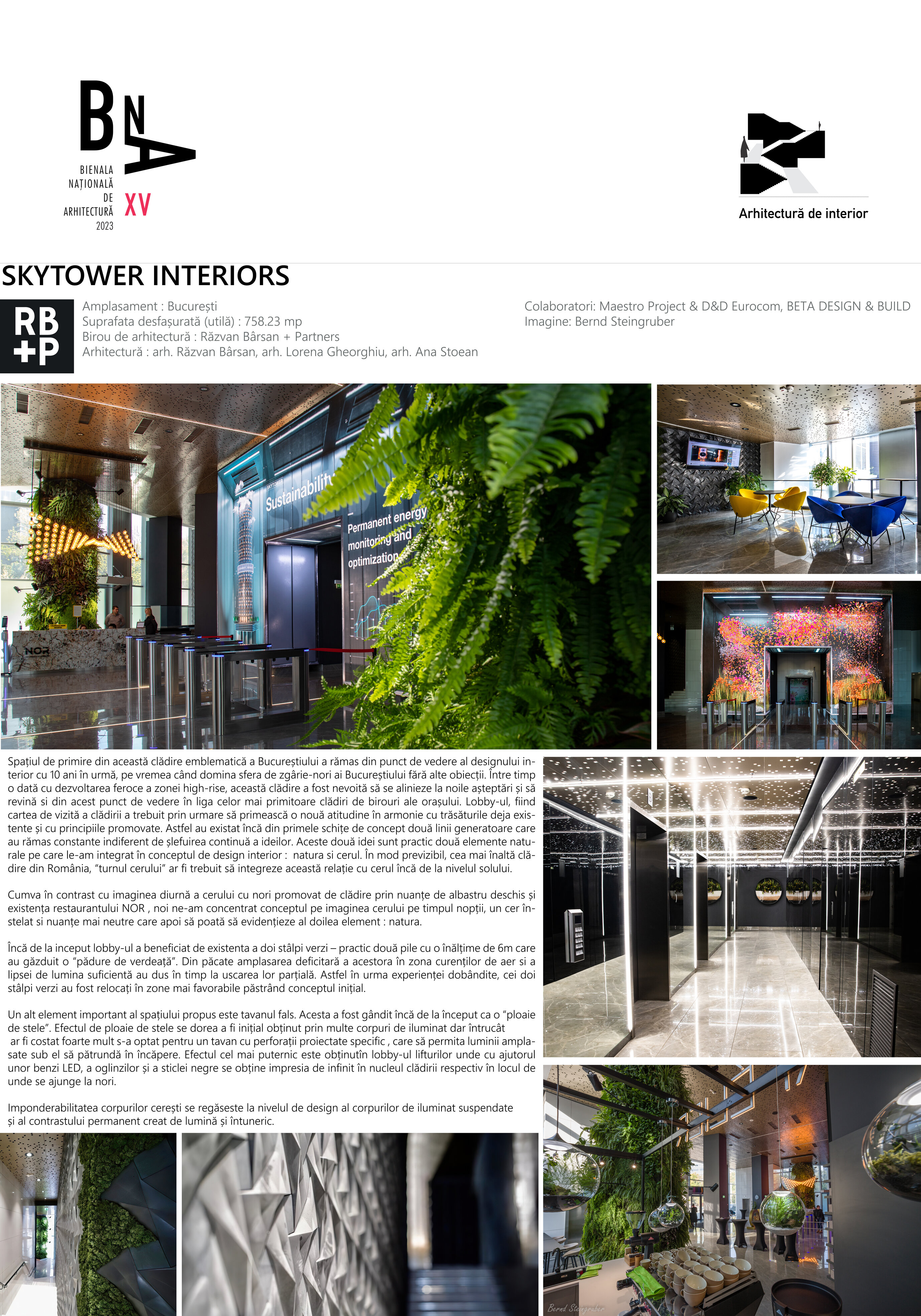 Între timp, odată cu dezvoltarea feroce a zonei high-rise, această clădire a fost nevoită să se alinieze la noile așteptări și să revină și din acest punct de vedere în liga celor mai primitoare clădiri de birouri ale orașului. Lobby-ul, fiind cartea de vizită a clădirii, a trebuit prin urmare să primească o nouă atitudine în armonie cu trăsăturile deja existente și cu principiile promovate. Astfel au existat încă din primele schițe de concept două linii generatoare care au rămas constante indiferent de șlefuirea continuă a ideilor. Aceste două idei sunt practic două elemente naturale pe care le-am integrat în conceptul de design interior: natura și cerul. În mod previzibil, cea mai inaltă clădire din România, "turnul cerului" ar fi trebuit să integreze această relație cu cerul încă de la nivelul solului.