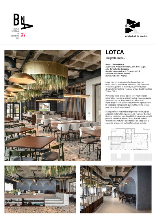 Lotca este un restaurant cherhana situat pe malul lacului. Amenajare interioară face parte din conceptul general al proiectului, arhitectura și designul interior fiind realizate unitar de către echipa Yellow Office.