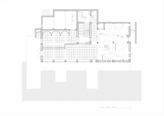 Prima impresie, a unui obiect care relaționează minimal cu exteriorul, dispare odată cu parcurgerea spațiului interior. Acesta devine cadrul unei experiențe în care privirea este condusă gradual de la opac spre transparent, punctul final fiind terasa care plutește deasupra apei.