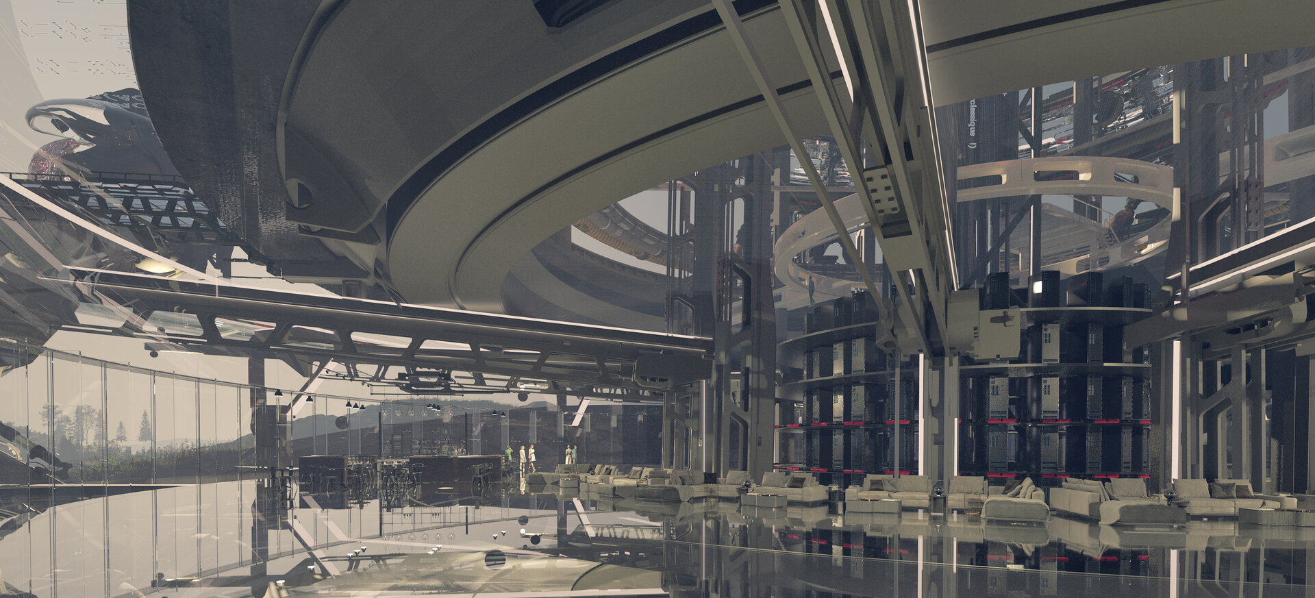 Ideea proiectului este de a folosi sălile serverelor ca punct principal de atracție, de aceea acestea sunt amplasate în spații închise cu sticlă, cu o bună vizibilitate din majoritatea spațiilor exterioare și interioare.