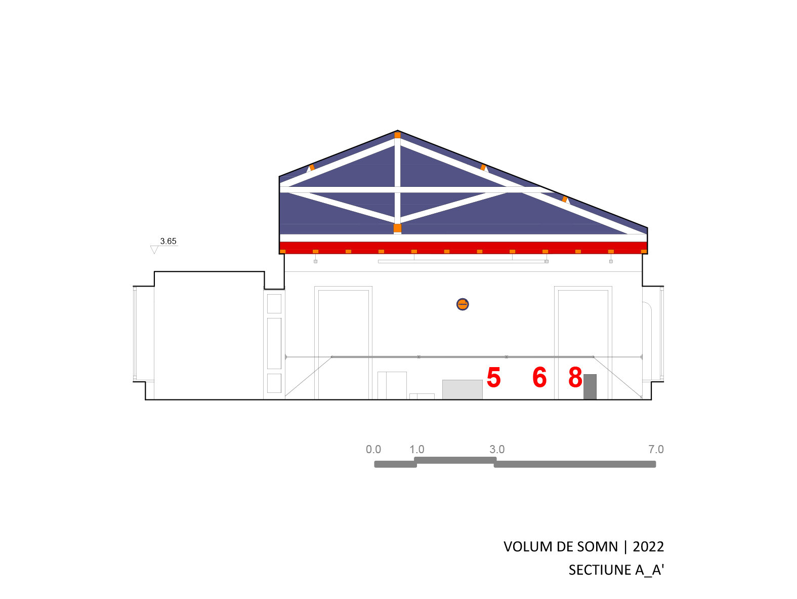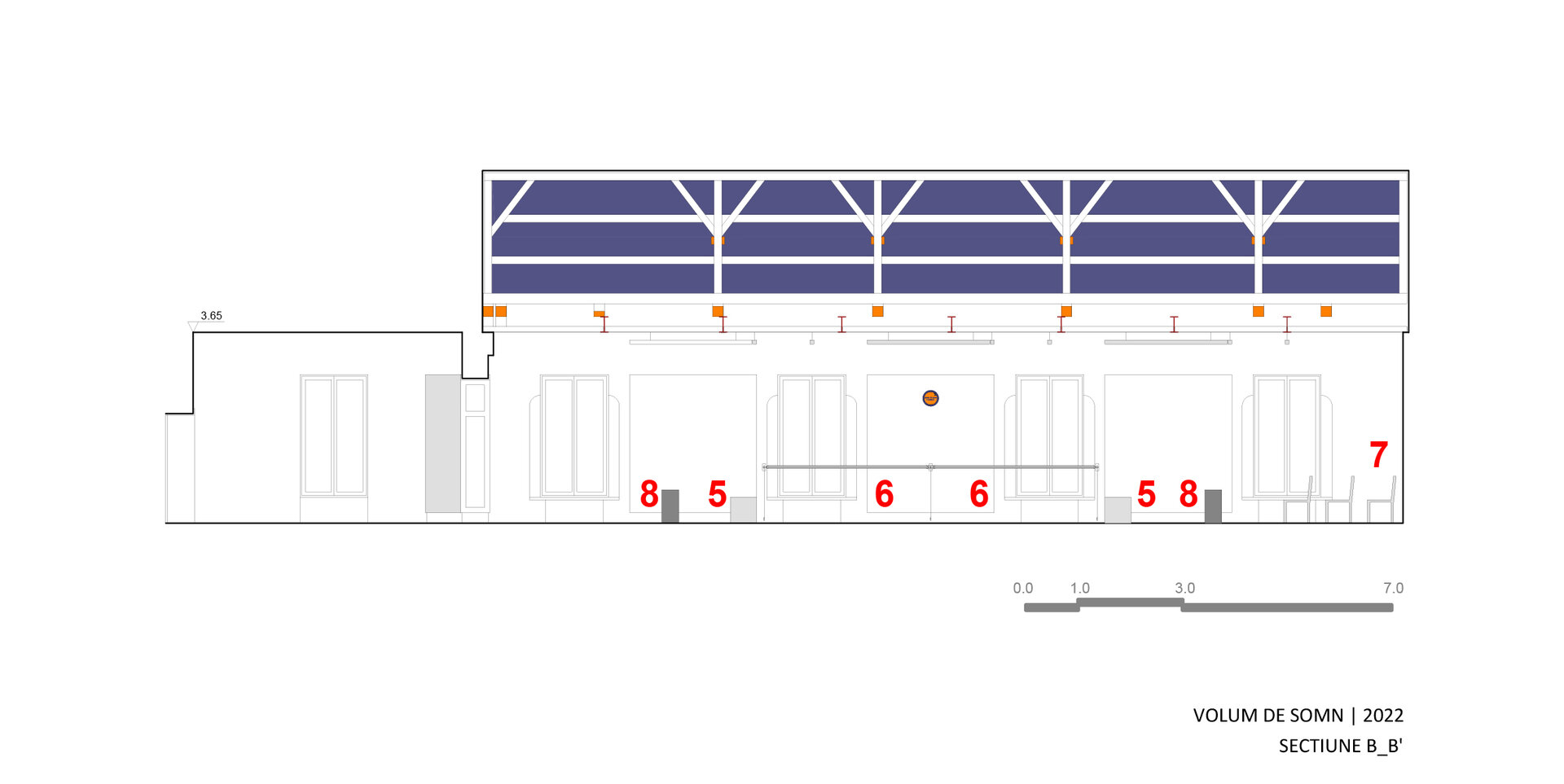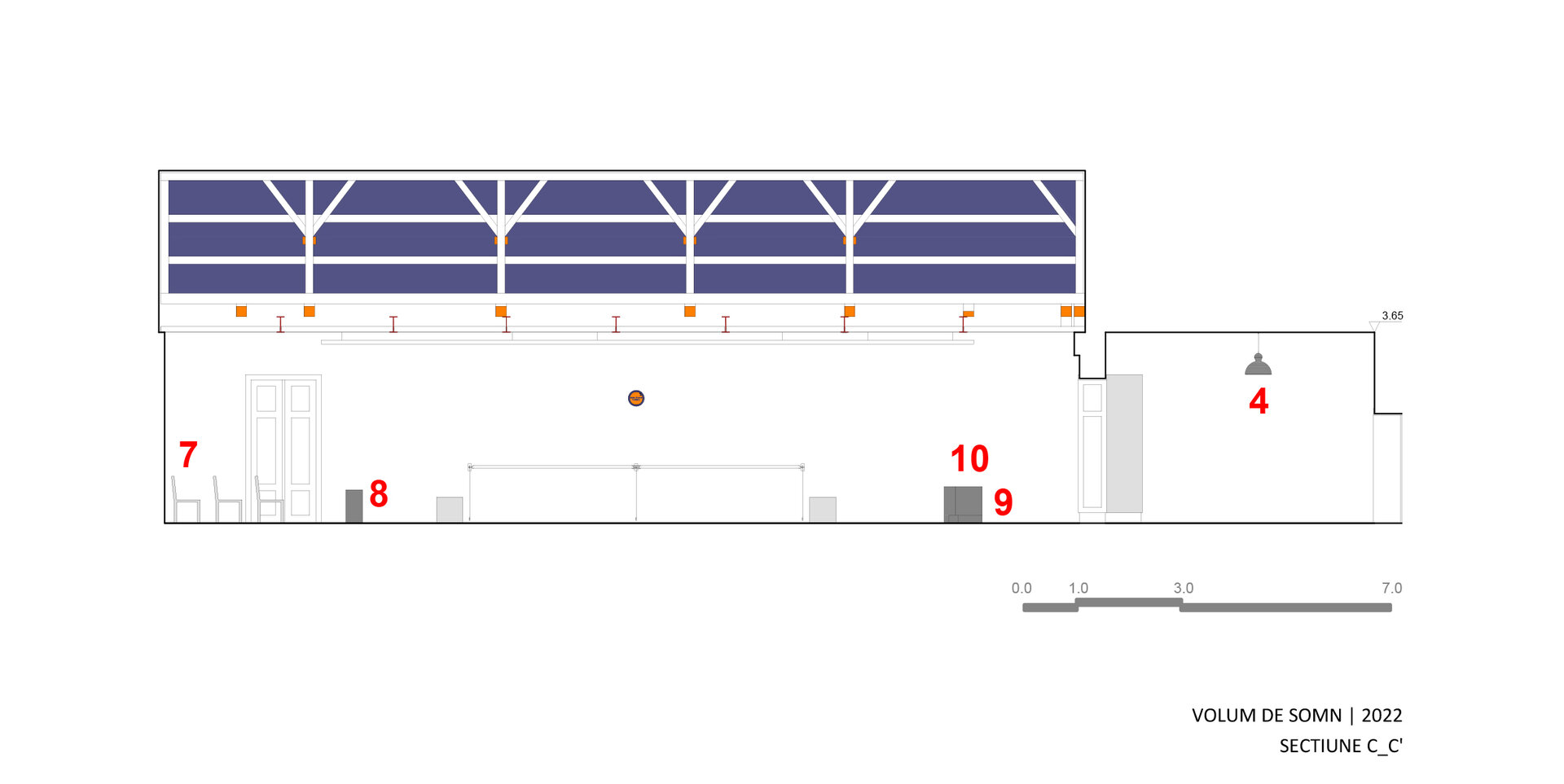 În 2023, transformarea “containerului” și holului pentru expoziția de sculptură a artistului Dumitru Gorzo - “Scufița Magenta” dintr-un spațiu de tip white cube într-unul de tip black box, a fost un pretext pentru experimentarea cu parametri noi de lumină și culoare și introducerea unui filtru din 2 bucăți de material textil (3.65 x 8.00 m), de opacitate similară cu cea a membranei elastice.