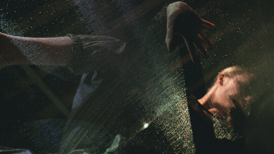 În cadrul spectacolului, performerul este privit din doua perspective: ascendentă (când publicul este sub membrană) și descendentă (când artistul este sub membrană). Percepția spațiului (audio-vizuală și tactilă) se modifică în timp real, concomitent cu deformarea membranei sub greutatea celor cu care interacționează. Instalația a fost montată prima oară în 2022, când spațiul galeriei, în forma sa inițială, era vopsit alb.