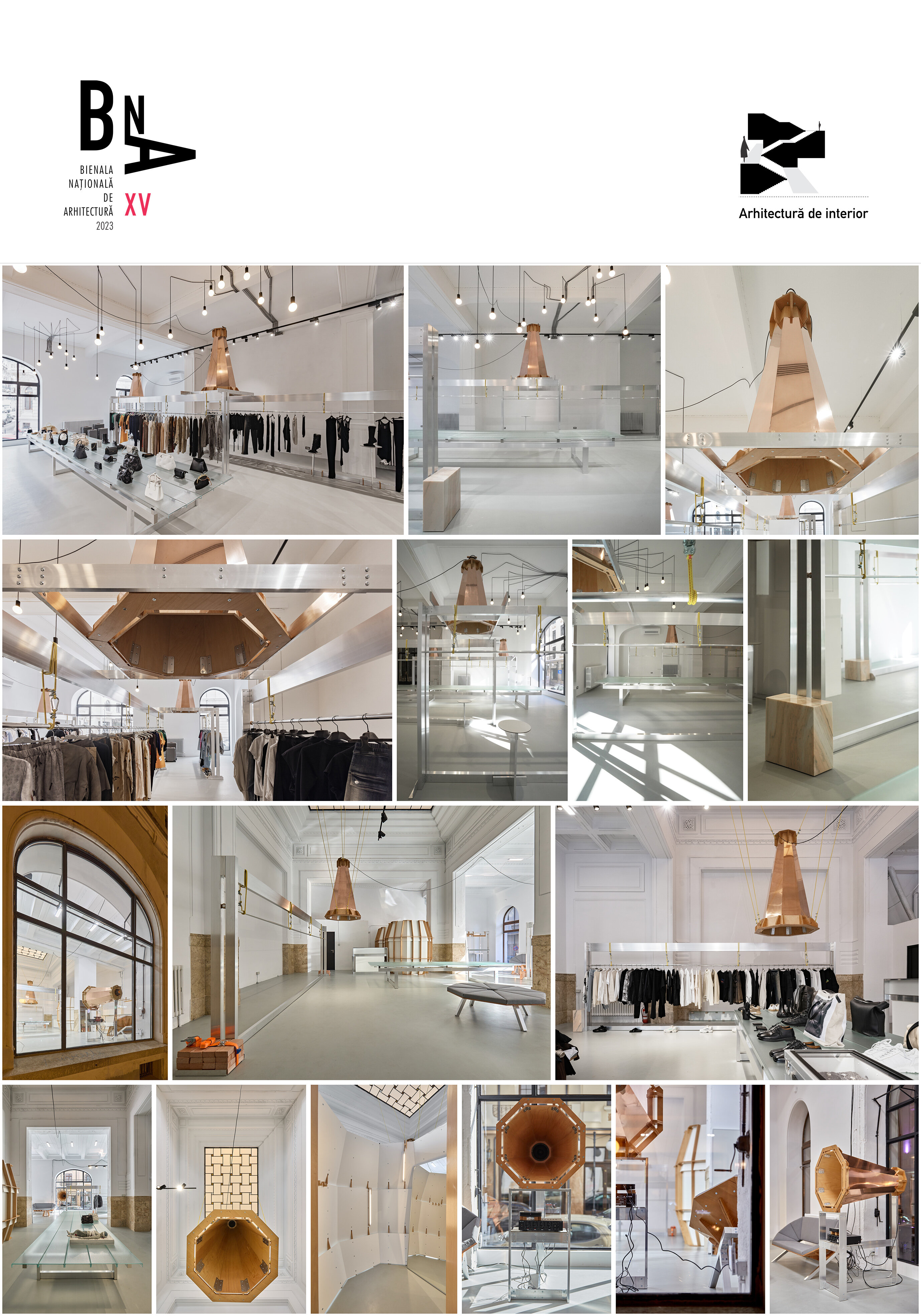 A doua etapa a constat în amplasarea unor obiecte fixe, de sine stătătoare, distanțate de pereții perimetrali, care să genereze prin poziția lor în spațiu trasee lungi pe parcursul cărora vizitatorii pot avea o relație directă cu produsele expuse. Deplasarea fizică în acest parcurs este dublată de o instalație de sunet ce punctează anumite noduri din traseu, accentuând natura multisenzorială a experienței. Obiectele create au funcția de suport pentru produsele magazinului, alcătuirea lor rezultând din asamblarea funcțională a unor profile brute din aluminiu, fixate mecanic între ele, stabilizate în poziție cu blocuri de marmură, sau din confecții din foi de placaj de fag, foi HPL, sau foi de tablă de cupru. În fiecare caz estetica finală este rezultatul răspunsului obiectelor la condițiile funcționale ce le-au făcut necesare. Materialele utilizate au fost alese pentru calitățile lor mecanice și pentru aspectul lor brut ce nu a necesitat alte tratamente ornamentale. De asemena folosirea acestor tipuri de materiale a fost justificat și de capacitatea economiei locale de a le recupera și recicla pentru utilizări viitoare.
