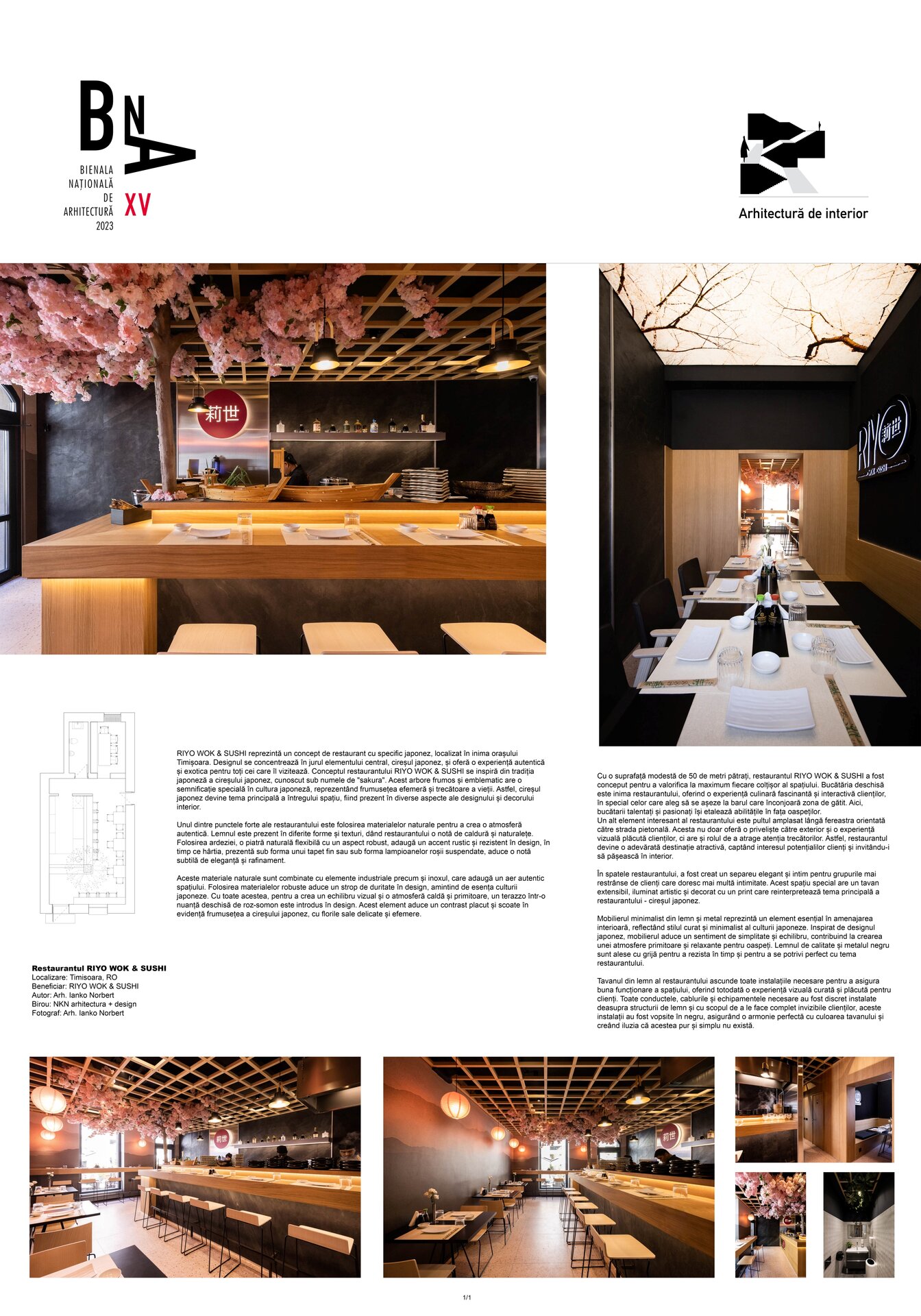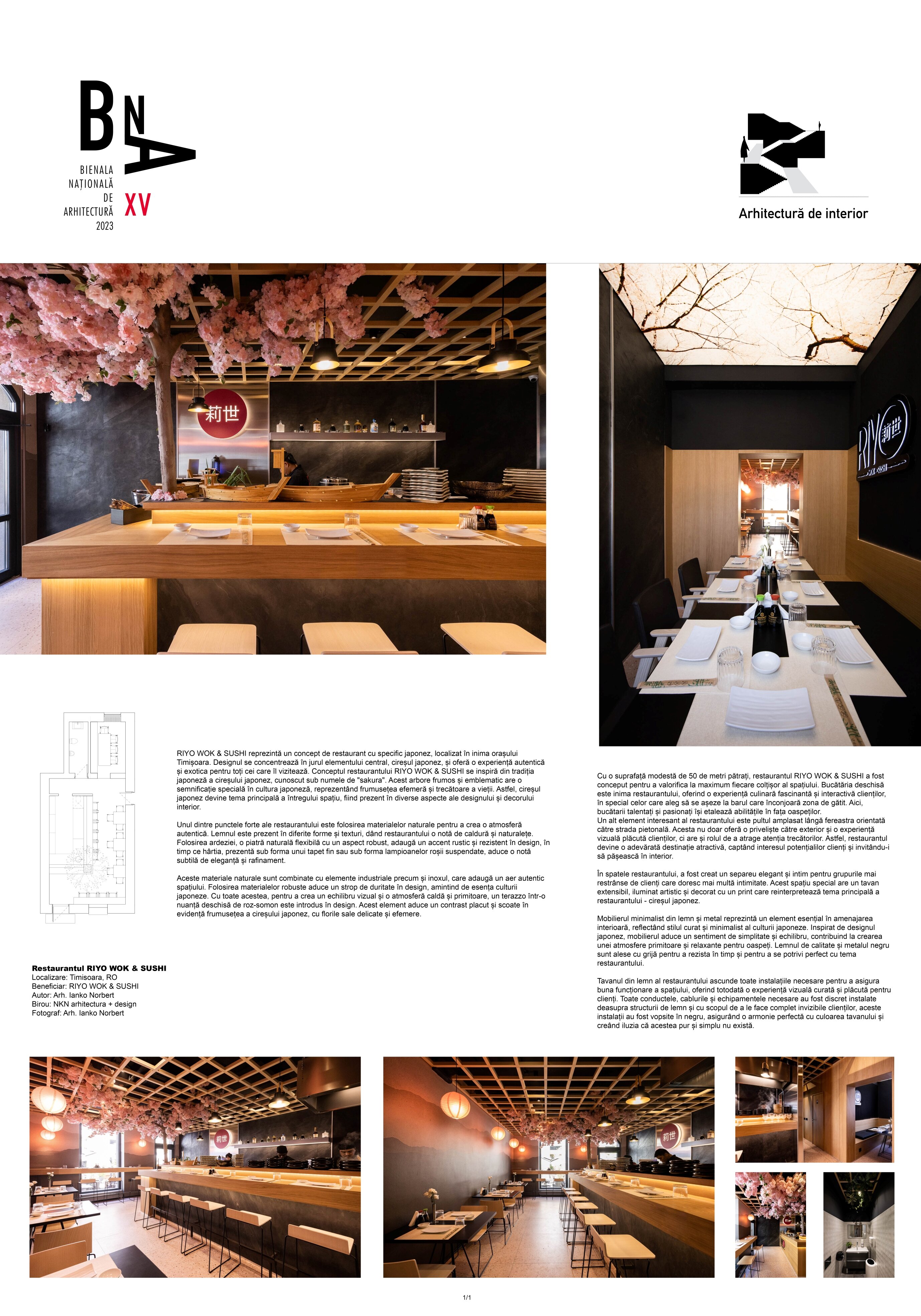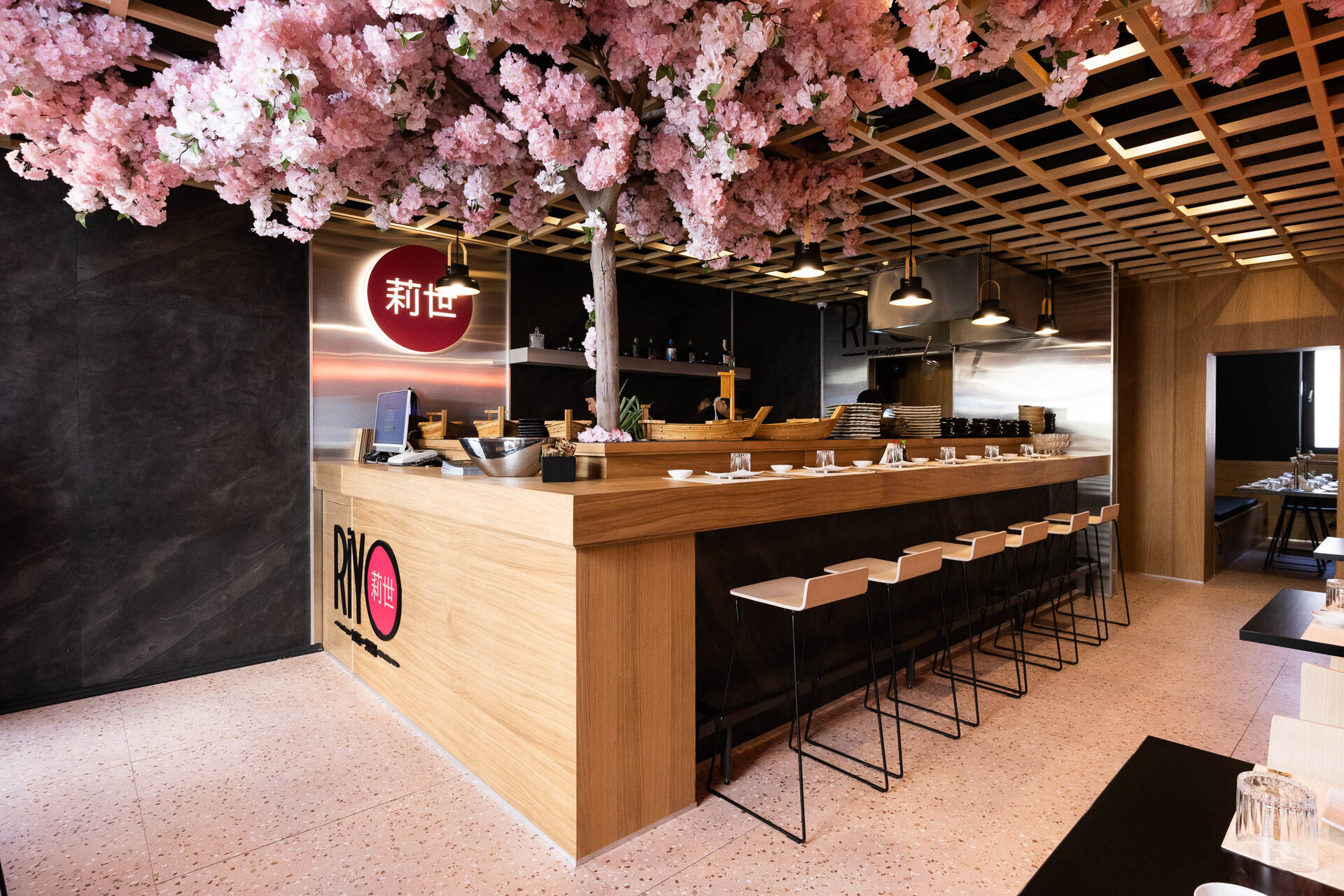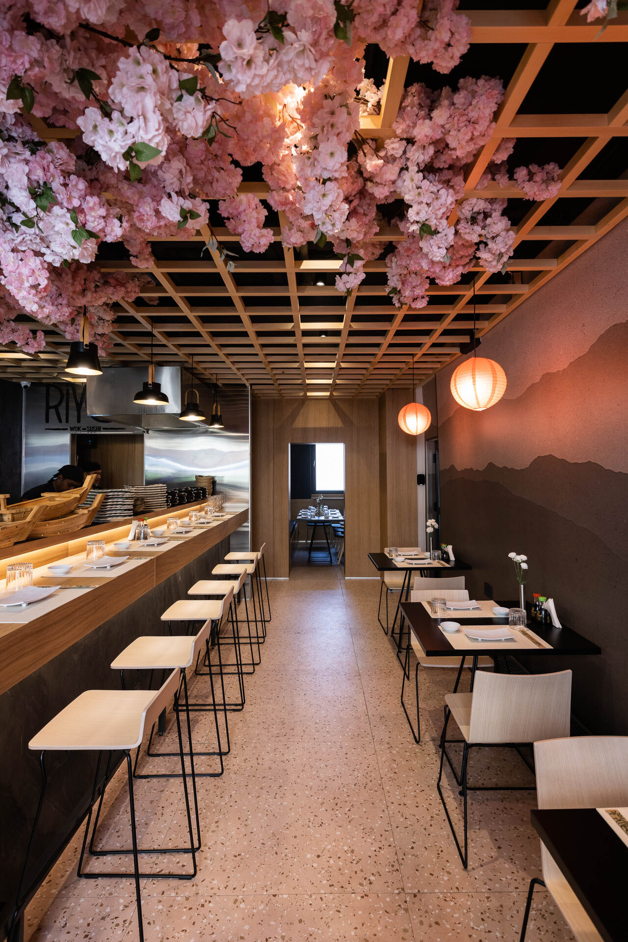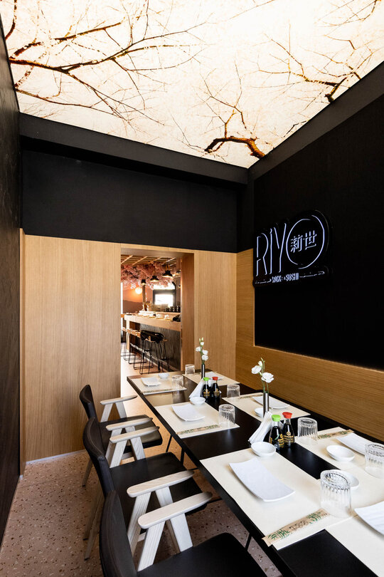 RIYO WOK & SUSHI reprezintă un concept de restaurant cu specific japonez, localizat în inima orașului Timișoara. Designul se concentrează în jurul elementului central, cireșul japonez, și oferă o experiență autentică și exotica pentru toți cei care îl vizitează. Conceptul restaurantului RIYO WOK & SUSHI se inspiră din tradiția japoneză a cireșului japonez, cunoscut sub numele de "sakura". Acest arbore frumos și emblematic are o semnificație specială în cultura japoneză, reprezentând frumusețea efemeră și trecătoare a vieții. Astfel, cireșul japonez devine tema principală a întregului spațiu, fiind prezent în diverse aspecte ale designului și decorului interior.