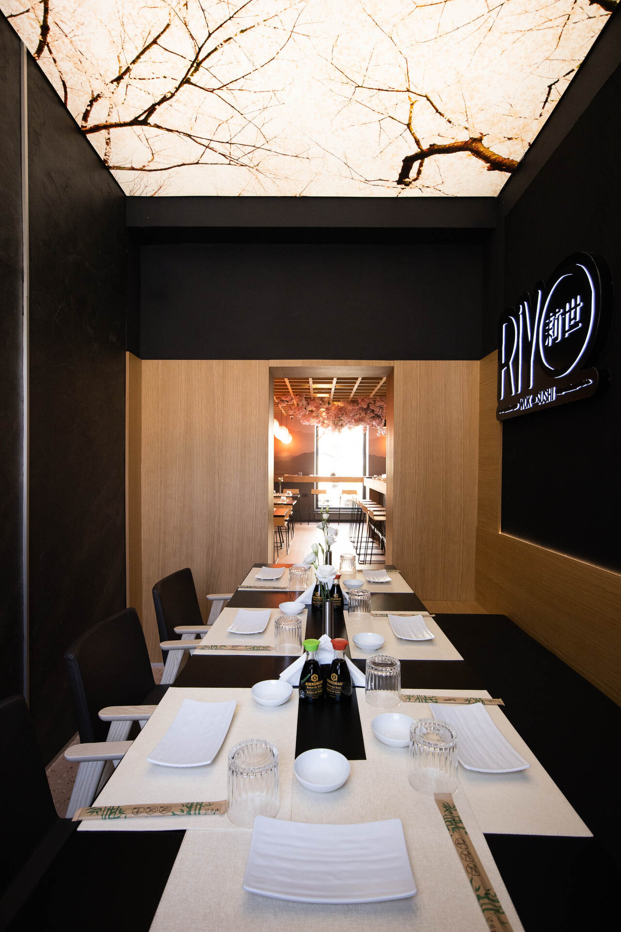 În spatele restaurantului, a fost creat un separeu elegant și intim pentru grupurile mai restrânse de clienți care doresc mai multă intimitate. Acest spațiu special are un tavan extensibil, iluminat artistic și decorat cu un print care reinterpretează tema principală a restaurantului - cireșul japonez.
