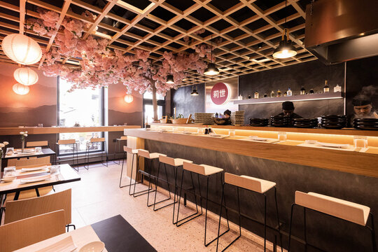 Mobilierul minimalist din lemn și metal reprezintă un element esențial în amenajarea interioară, reflectând stilul curat și minimalist al culturii japoneze. Inspirat de designul japonez, mobilierul aduce un sentiment de simplitate și echilibru, contribuind la crearea unei atmosfere primitoare și relaxante pentru oaspeți. Lemnul de calitate și metalul negru sunt alese cu grijă pentru a rezista în timp și pentru a se potrivi perfect cu tema restaurantului.
