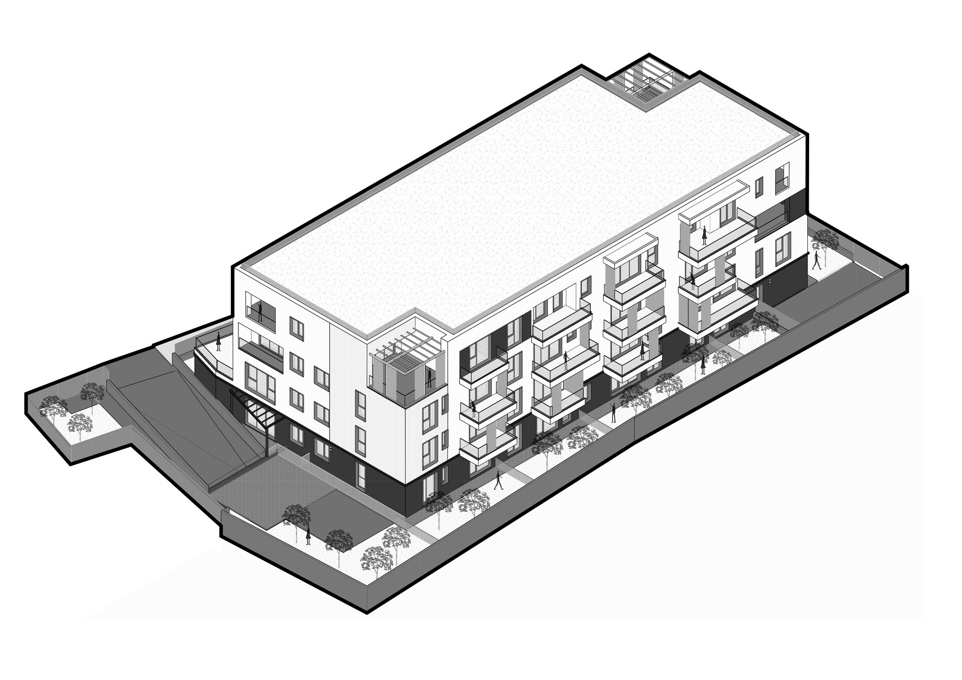 Imobilul cu regim de înălțime S+P+2ETAJE +3 RETRAS, adăpostește o comunitate de 29 de apartamente.