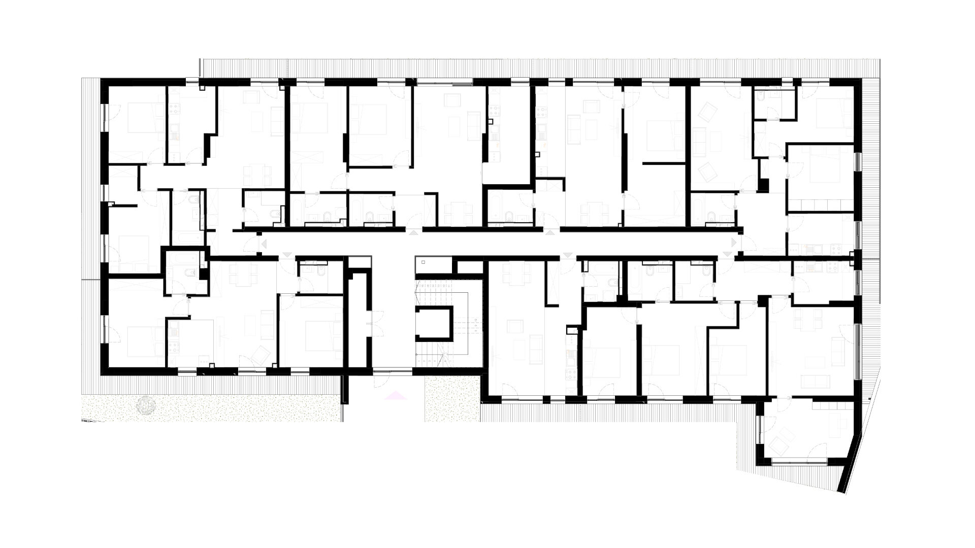 În rezolvarea proiectului s-a optat pentru diversitate din punct de vedere al soluțiilor de compartimentare. Fiecare apartament dispune de o terasă cu formă diferită parțial acoperită .