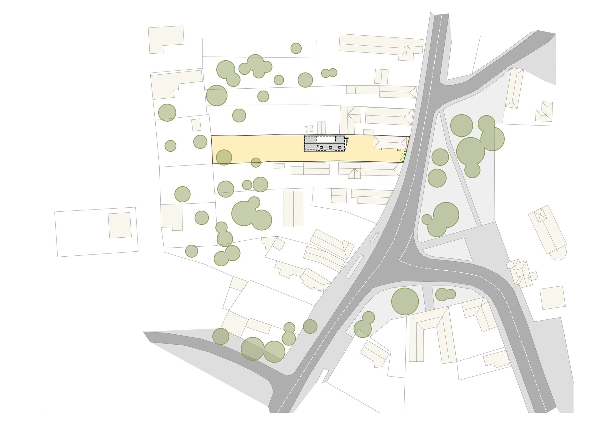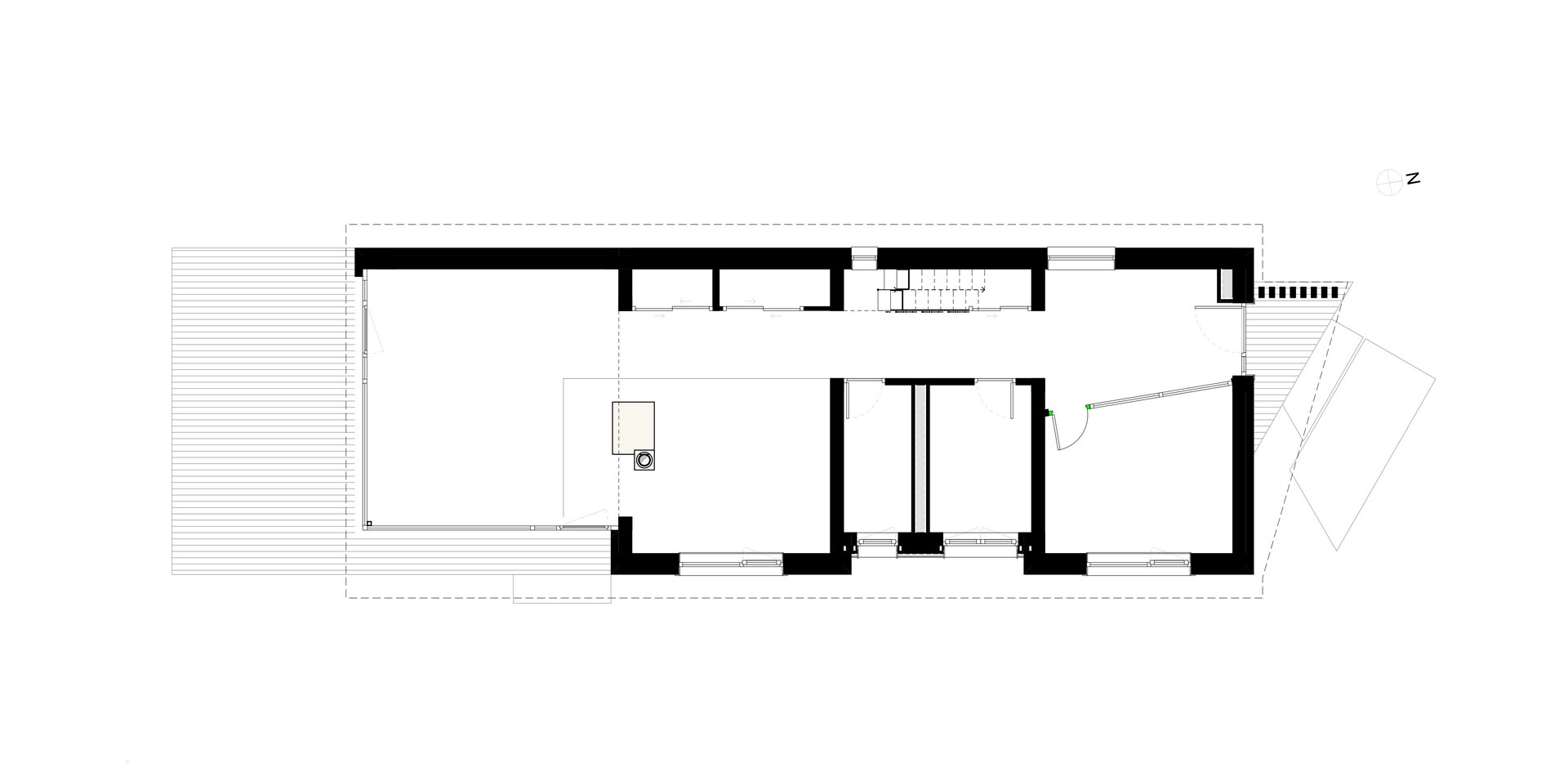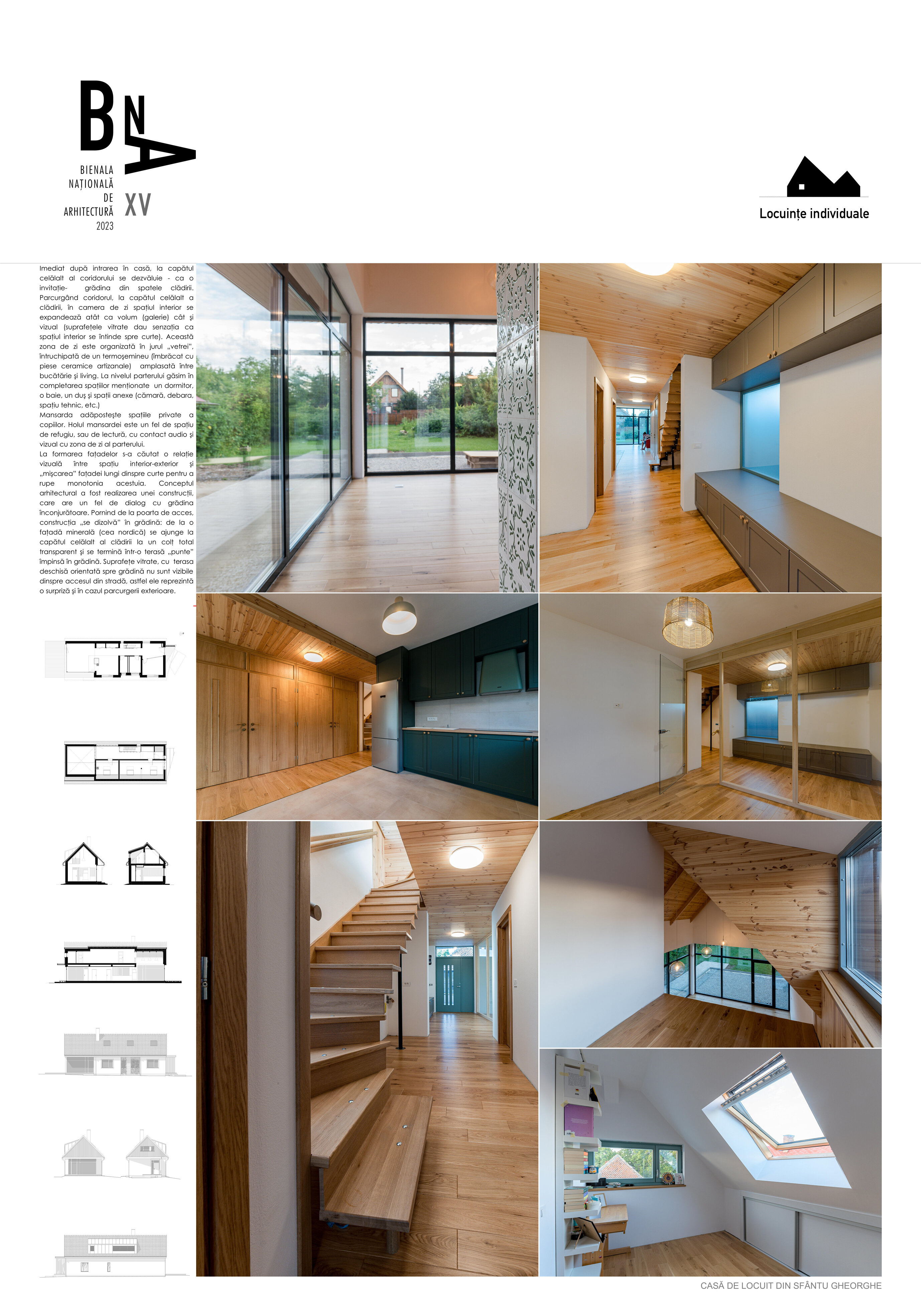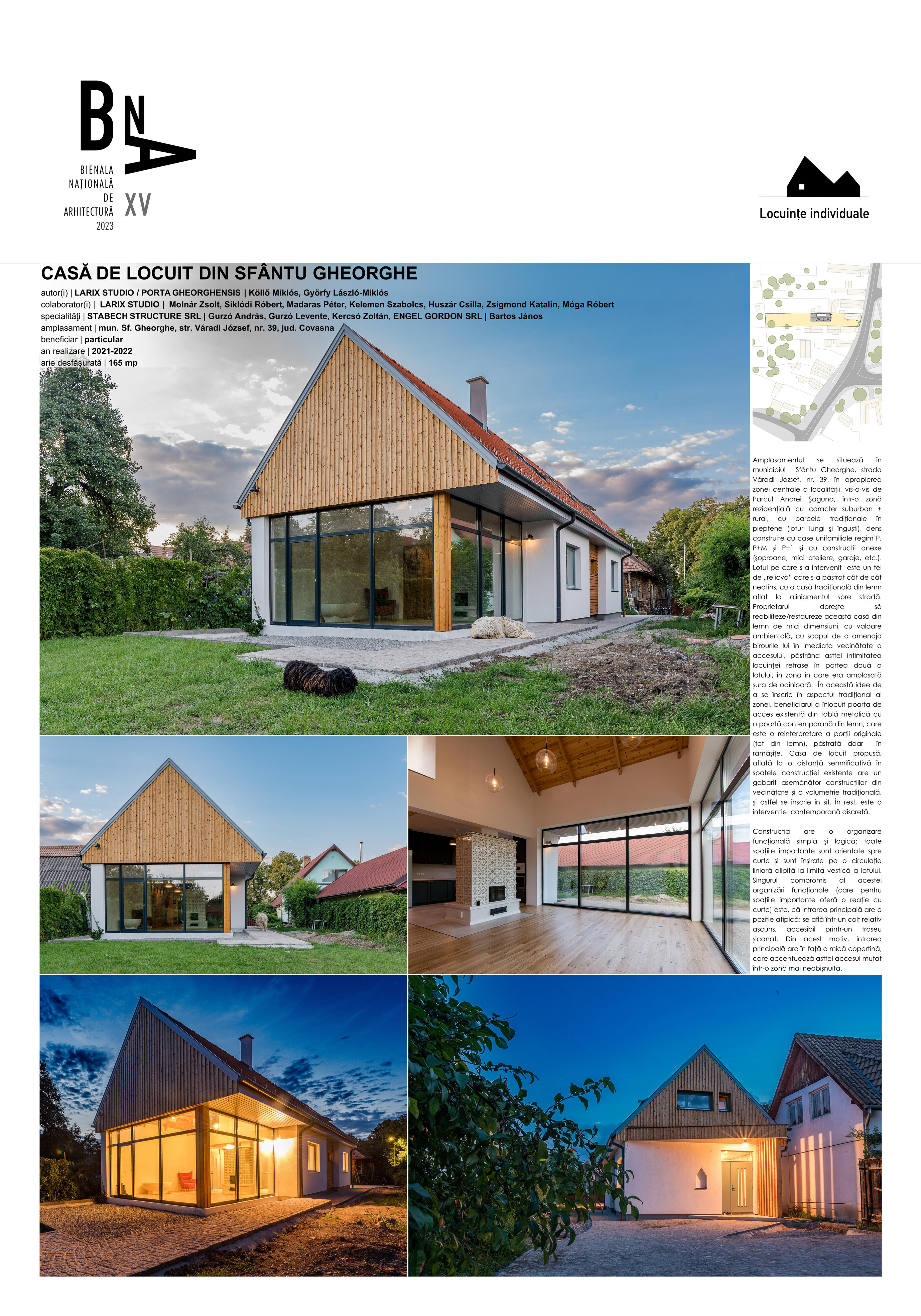 Lotul pe care s-a intervenit este un fel de „relicvă” care s-a păstrat cât de cât neatinsă, cu o casă tradiţională din lemn aflată la aliniamentul spre stradă. Dimensiunile reduse a acestei case tradiţionale nu permit dezvoltarea casei ca locuinţă după necesităţile beneficiarului fără modificarea caracterului construţiei existente, însă –având în vedere că beneficiarul este un liber profesionist- el doreşte să reabiliteze/restaureze această casă din lemn de mici dimensiuni, cu valoare ambientală, cu scopul de a amenaja birourile lui în imediata vecinătate a accesului, păstrând astfel intimitatea locuinţei retrase în partea două a lotului, în zona în care era amplasată şura de odinioară. Printr-o analiză de context, s-a încercat înscrierea propunerii în sit astfel ca ea este aprope inobservabilă din spaţiul public, totuşi respectă morfologia tradiţională din zonă. Ceea ce se vede din stradă, în fundalul casei existente, este un timpan finisat cu scânduri din lem, asemănător practicii utilizate în cadrul şurelor.