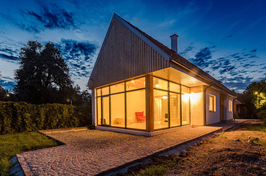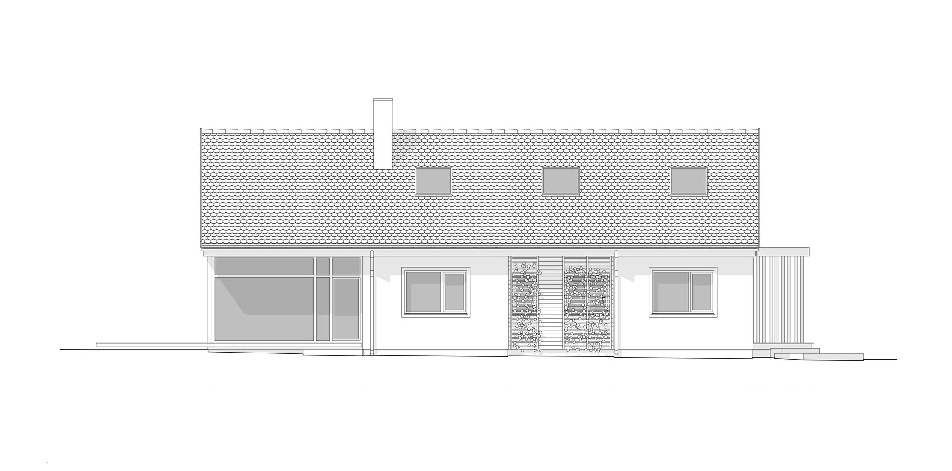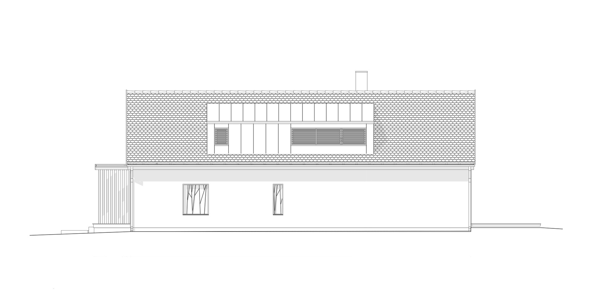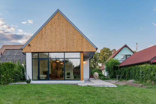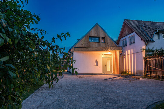 Casa de locuit propusă, aflată la o distanţă semnificativă în spatele construcţiei existente, în zone fostei şure, are un gabarit asemănător şurelor din vecinătate şi o volumetrie tradiţională (comparabilă ca dimensiune cu cel al şurelor din zonă), şi astfel se înscrie în sit. În rest, este o intervenţie contemporană discretă.