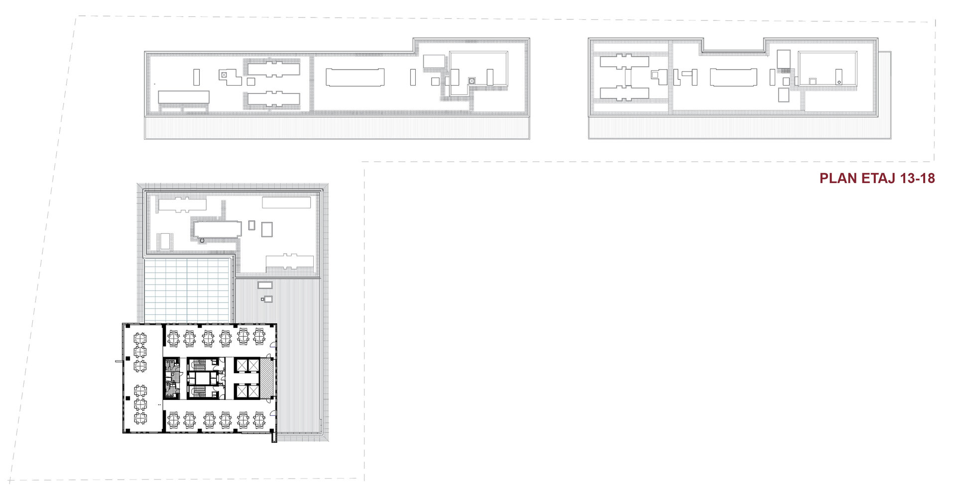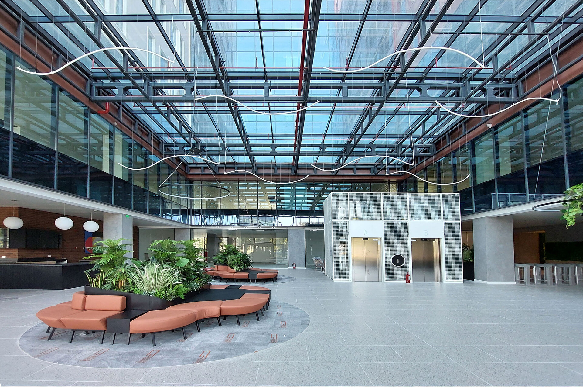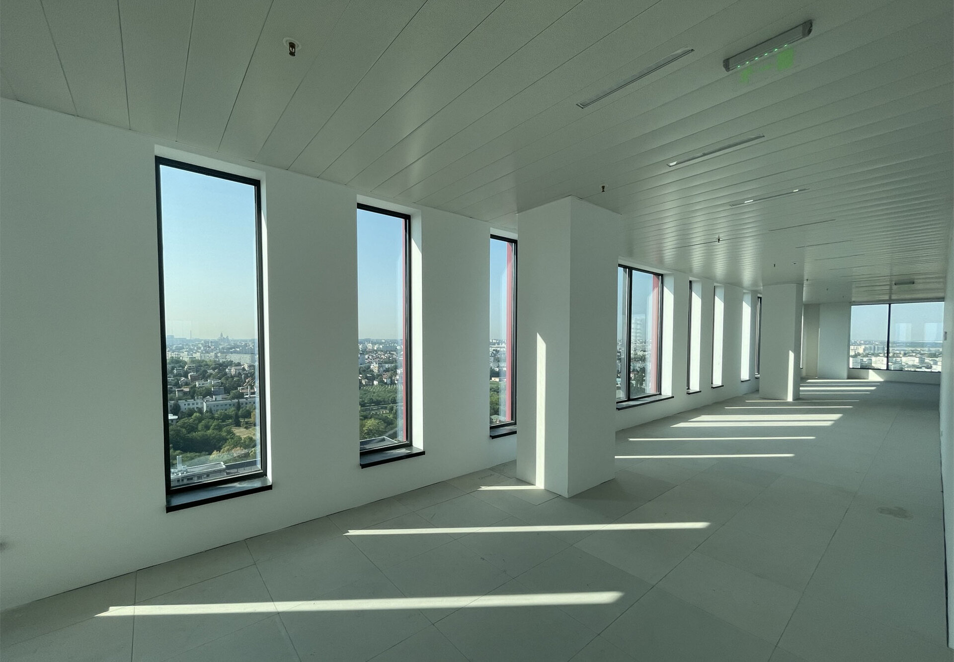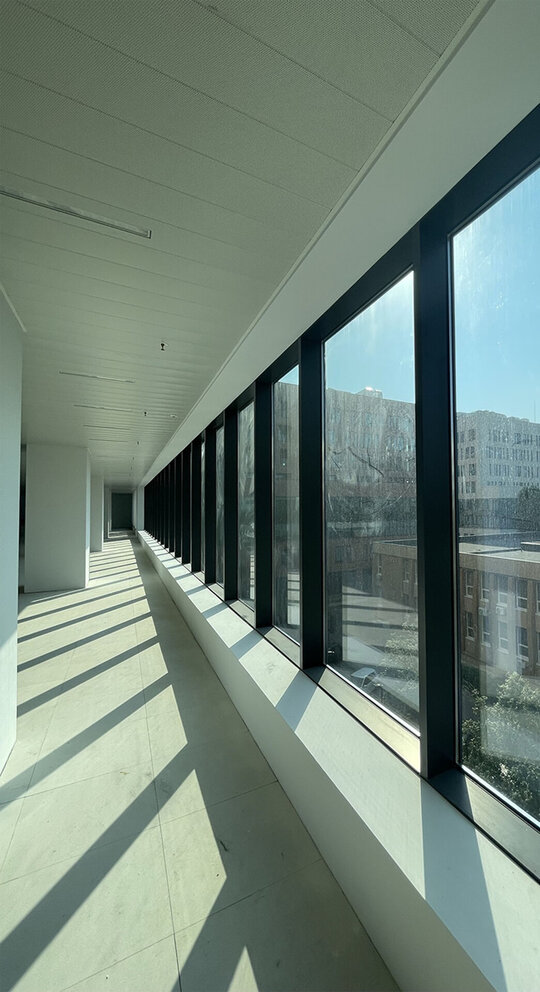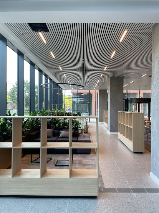 - Încălzirea și răcirea spațiilor de birouri se realizează cu plafoane radiante, concepute pentru a fi eficiente din punct de vedere energetic, aducând rapid toate spațiile la temperatura dorită.