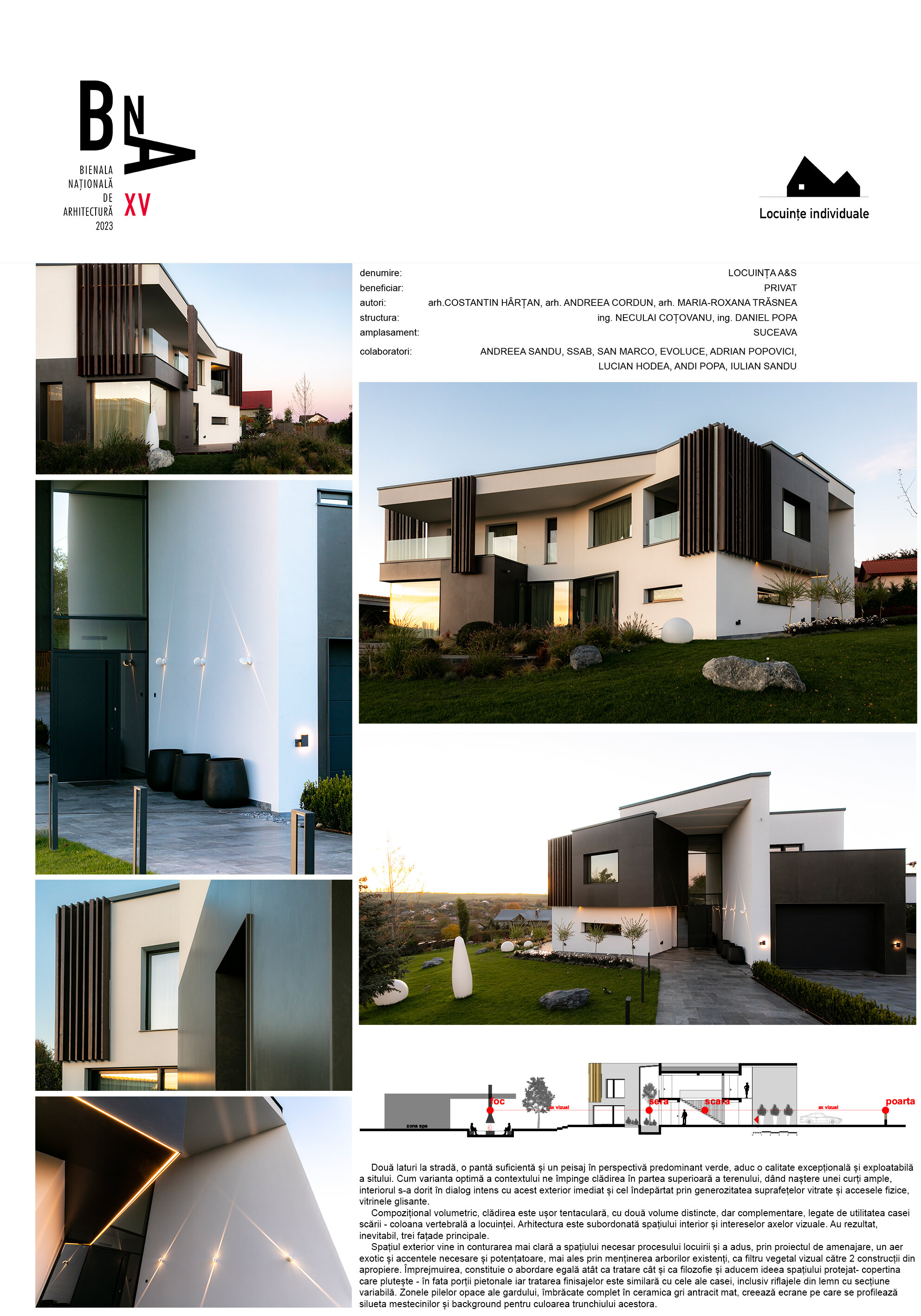 Două laturi la stradă, o pantă suficientă și un peisaj în perspectivă predominant verde, aduc o calitate excepțională și exploatabilă a sitului. Cum varianta optimă a contextului ne împinge clădirea în partea superioară a terenului, dând naștere unei curți ample,