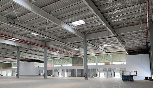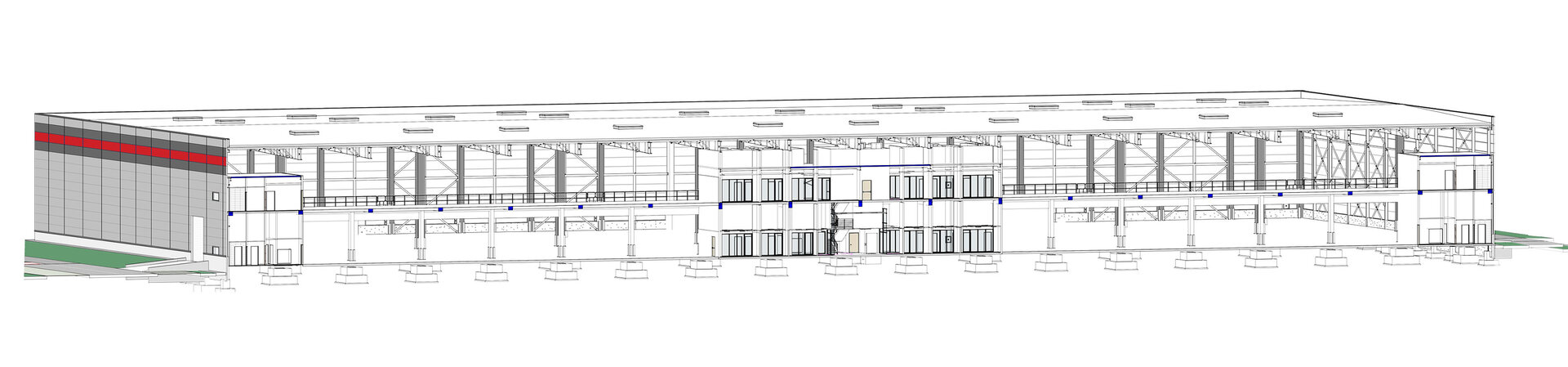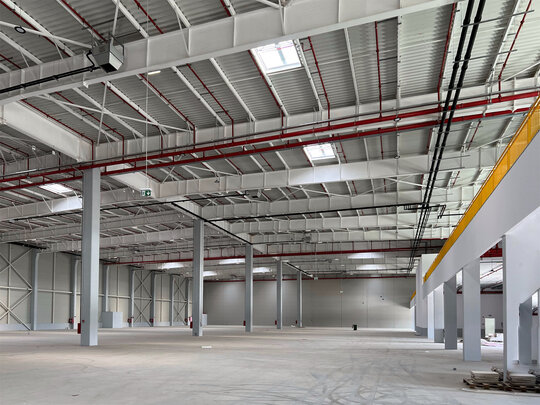 Una dintre cele mai impresionante realizări de inginerie, proiectare și coordonare este modul în care am reușit să maximizăm înălțimea clădirii. Toate conductele și capetele de aspersoare sunt amplasate deasupra grinzilor principale, în spațiul dintre grinzi. Aceasta este o caracteristică unică pe piața clădirilor logistice din România și permite utilizatorului clădirii să maximizeze spațiul de depozitare pe axa verticală.